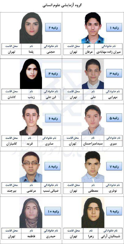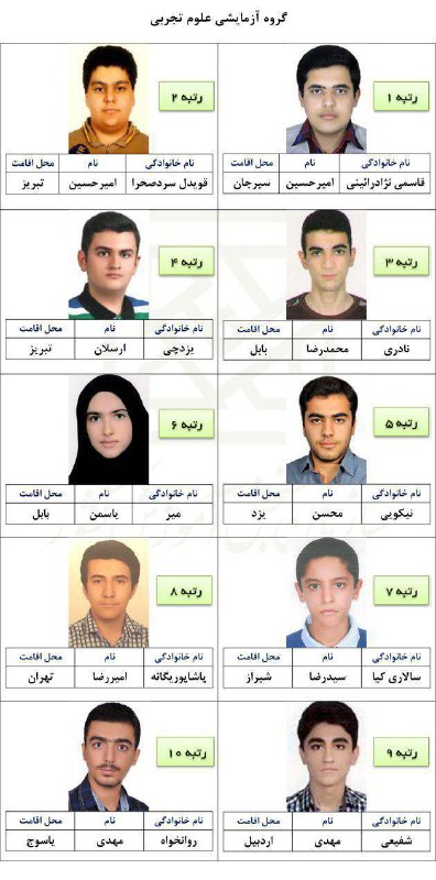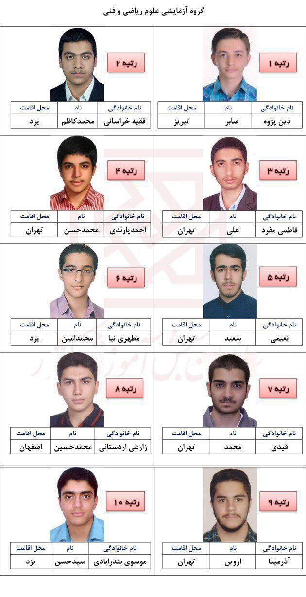 اسامی نفرات برتر کنکور سراسری سال ۹۶ به شرح زیر است: