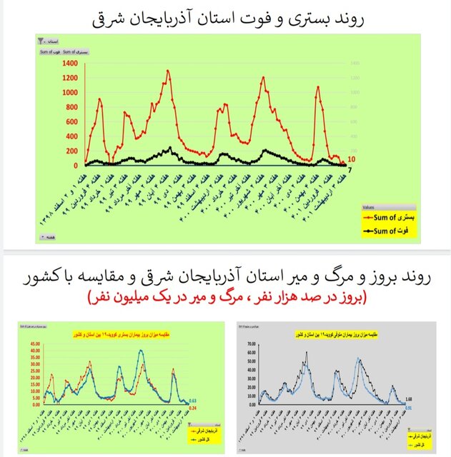 بررسی هفتگی وضعیت موجود کرونا در آذربایجان شرقی در هفته سوم اردیبهشت ماه نشان میدهد بستری کاهش یافته و فوت استان ایستا بوده است.