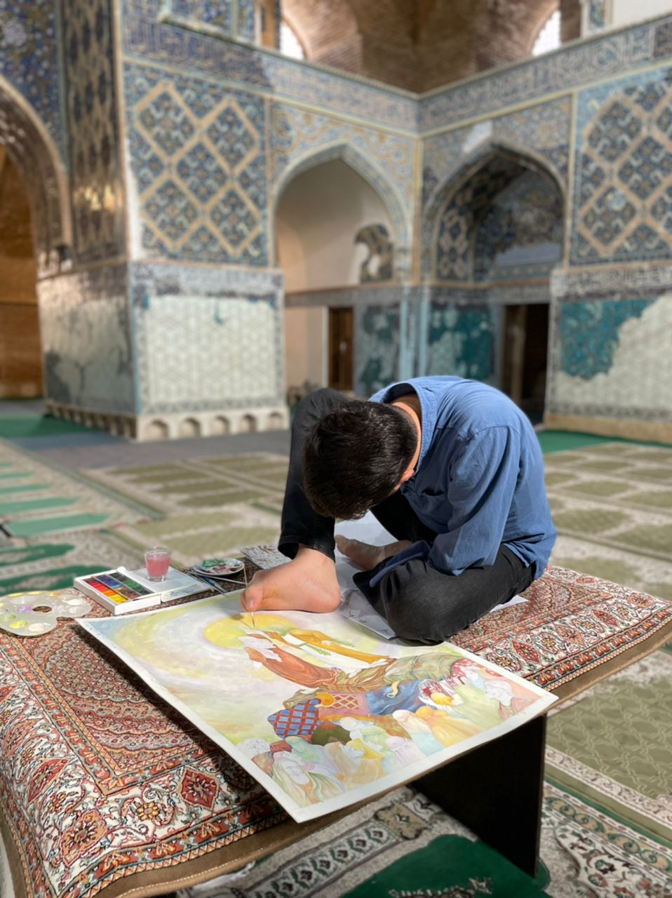 عظیمی در بخش دیگری از سخنان خود در رابطه با زمان شروع و اتمام این اثر ابراز داشت: تقریبا یک هفته ای بر روی این اثر وقت گذاشته ام و نیاز است بیشتر از این هم برایش وقت بگذارم چراکه نگار گری جز هنرهایی است که ریزکار بیشتری دارد و نیازمند زمان بیشتر است.