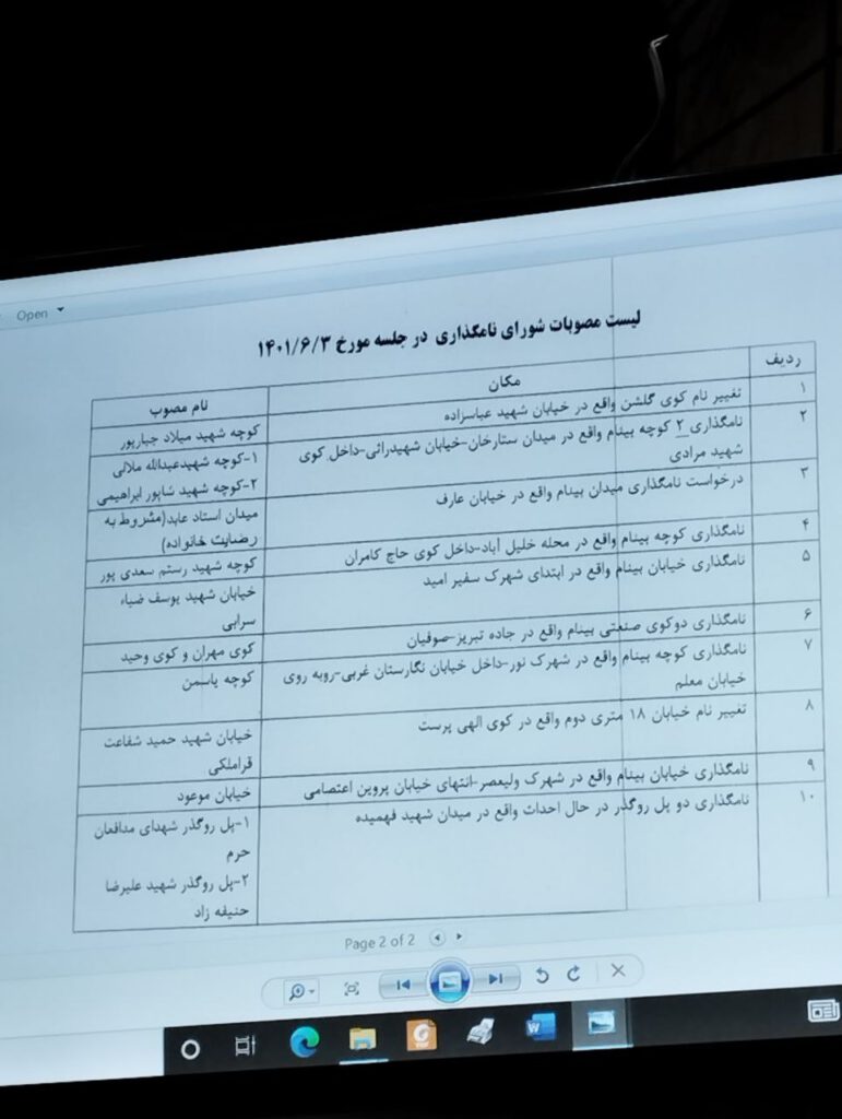 دستور دوم جلسه شورا به بررسی مصوبات کمیته نامگذاری اماکن و معابر عمومی شهر تبریز پرداخت.