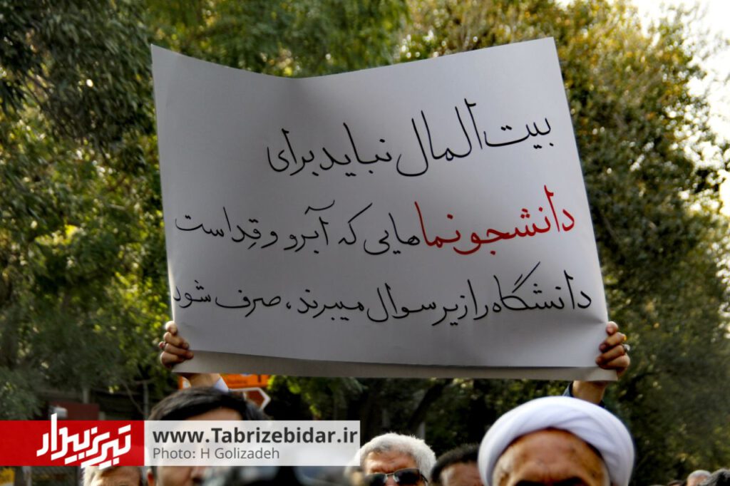 نمازگزاران تبریزی با شعارهای «مرگ بر آمریکا، مرگ بر انگلیس، مرگ بر اسراییل، مرگ بر ضد ولایت فقیه»، «بسیجی لر جان وِیر ـ ولایته قان ویر» و «بیزاؤلماغا حاضیروخ، خامنهای سربازیوخ» و « آذربایجان اویاخدی انقلابا دایاخدی» ضمن محکوم کردن جنایت خونین مردم بیگناه در حرم شاهچراغ بار دیگر با نظام جمهوری اسلامی ایران عهدی دوباره بستند و برای دفاع از ولایت و خاک پاک وطن اعلام آمادگی کردند.