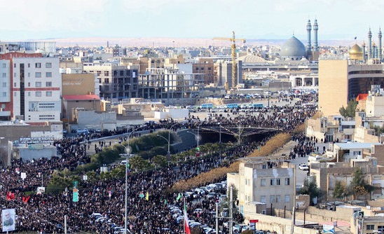 او آن روز پرصلابت را برایمان چنین روایت می کند: «آن روزها عجیب همه مردم در ماتم فرو رفته بودند. هر گوشه و کناری که می رفتی صحبت از جنایت آمریکا و ترور سردارمان بود. خبر تشییع با شکوه مردم در عراق و شهر های ایران هم لحظه به لحظه مخابره می شد. در سفر قم بودم که خبر رسید پیکر شهدا برای طواف حرم کریمه اهل بیت(ع) به قم می آید. روز تشییع را ۱۶دی ساعت ۲ بعد از ظهر اعلام کردند. برای اینکه به شلوغی جمعیت نخوریم ساعت ۱۲ ظهر به سوی حرم برای تشییع حرکت کردیم. کل خیابان ها مملو از جمعیت بود، زن، مرد، کودک، پیر و جوان همه آمده بودند. در حدی که درهای حرم را بسته بودند. قرار بود پیکرهای مطهر بعد از طواف حرم از بلوار پیامبر اعظم(ص) تا مسجد جمکران تشییع شود. ناچار به طرف ابتدای بلوار پیامبر اعظم(ص) حرکت کردیم که در کمال تعجب ازدحام شدید در بلوار را دیدیم در حدی که ازدحام تا خود جمکران هم رفته بود. مردم در گوشه و کنار روی زمین نشسته و ایستاده منتظر پیکرهای اربا اربا بودند. هنوز ۲ساعتی تا زمان اعلامی برای تشییع مانده بود. یک چشم به ساعت و یک چشم به آسمان که پیکر سردار از تهران به قم منتقل شود. موکب های مردمی هم به راه بودند و به دلیل از دحام جمعیت در مراسم تشییع تهران، پیکرهای شهدا به جای ساعت ۲ ساعت ۵ به قم رسید و برای طواف و نماز به حرم رفتند. تا ساعت ۶ عصر خبری نشد. ازدحام جمعیت دقیقه به دقیقه تشدید می شد. مردم بدون ذره ای خستگی همچنان منتظر بودند. ساعت ۷ عصر بود که پیکرها با ماشین به بلوار رسیدند و همه تقلا می کردند تا خود را به خودروی حامل ابدان مطهر برسانند و کسی به فشار جمعیت اهمیتی نمی داند. تراکم و فشردگی جمعیت به حدی بالا بود که چند نفر از زائرین حاج قاسم را با کمک دوستان تبریزی و با هزار زحمت از زیر دست و پا بیرون کشیده و امداد رسانی کردیم و به اورژانس تحویل دادیم. همه چشم ها بدون استثنا خیس بود، هر کس چشمش به پیکرها می افتاد مثل طفل مادر مرده ای گریه می کرد و با بغض شعار می دادند. آنقدر خیابان شلوغ بود که اصلا ماشین حامل پیکرها حرکت نمی کرد تا به جمکران برای وداع برسد. هر چقدر هم از مردم خواهش می کردند راه را باز کنند افاقه نمی کرد، انگار مردم یک دقیقه را هم برای بیشتر بودن با سردار غنیمت می شمردند. ساعت ۹ و نیم شب شده بود که پیکرها به مسجد جمکران رسید. بعد از مراسم مختصری جسم مطهر حاج قاسم به مقصد کرمان از قم خارج شد ولی مردم همچنان در خیابان ها با بغض فروخورده ایستاده بودند و کسی دلش نمی آمد به خانه برگردد.»