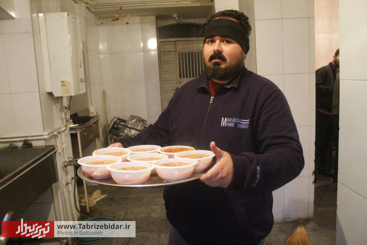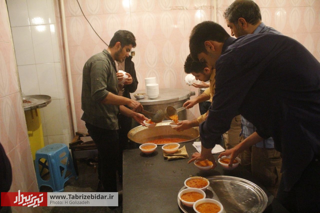 اینجاست که جمعی از جوانان تبریزی زیر پرچم حضرت فاطمه الزهرا(س) با دستان سخاوتمند وارد میدان شده و برای گسترده شدن سفره های اطعام نیازمندان آستین بالا زده اند و سنت حسنه اطعام فقرا را اجرا می کنند.