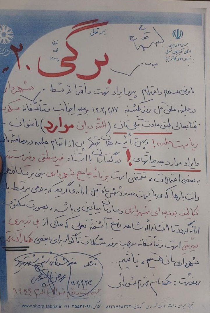 در ابتدای جلسه محمدحسن اسوتچی از نامه خود خطاب به رئیس شورای شهر رونمایی کرد.