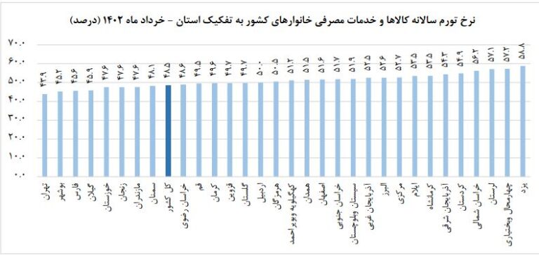 سرویس اقتصادی تبریزبیدار/ در حالی نرخ تورم کشوری در خرداد ماه ۴۸.۵ درصد اعلام شده که نرخ تورم در آذربایجان شرقی بیش از ۵ درصد بالاتر از میانگین کشوری شده است.