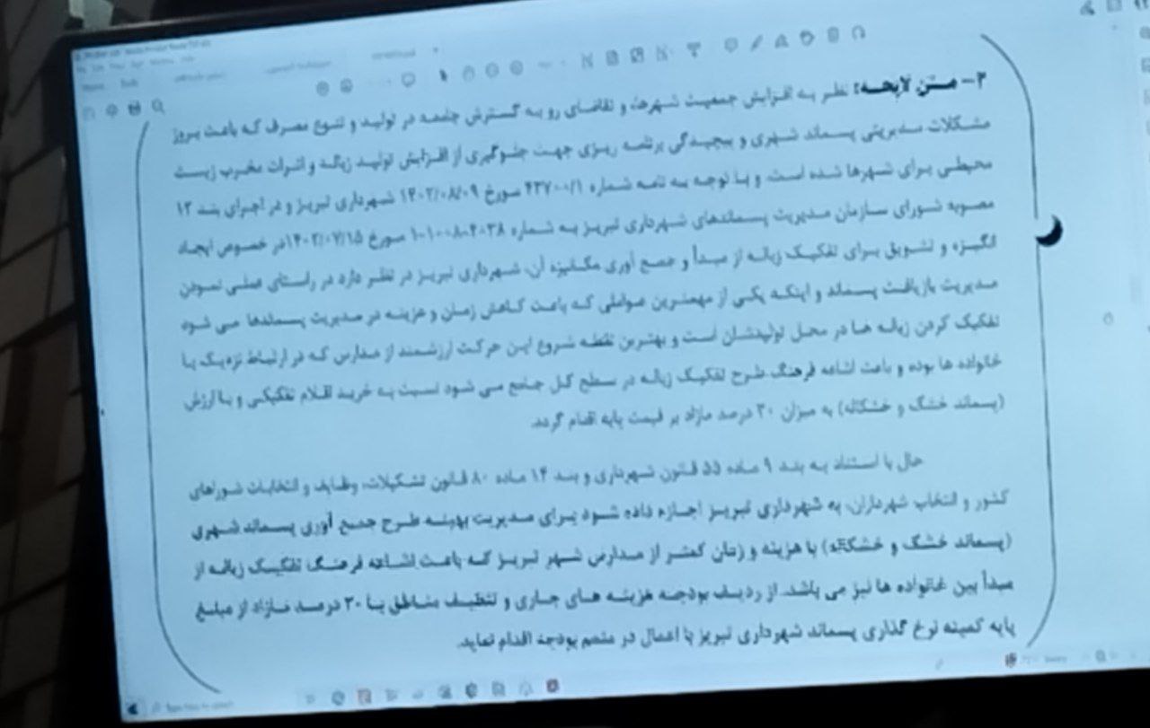 دستور سوم جلسه امروز شورا در رابطه با گزارش فرماندار شهرستان تبریز در خصوص اجرای دستور عمل ساماندهی دستفروشان و وانت بارها ابلاغی وزارت کشور بود.