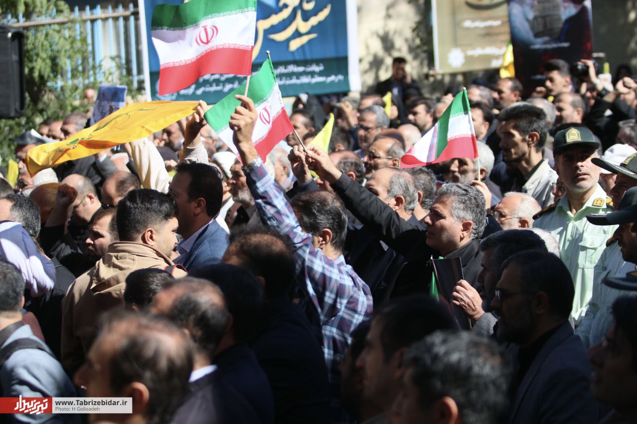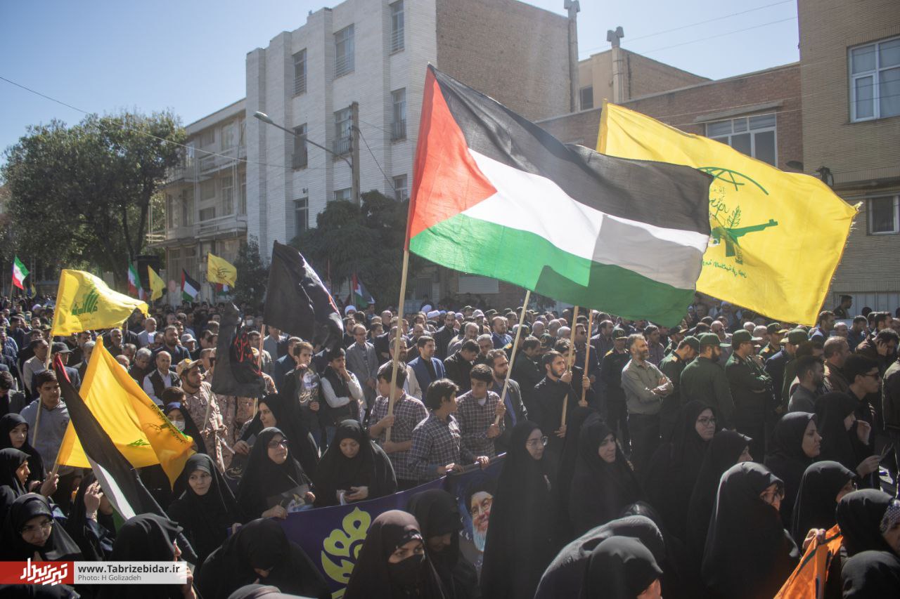مردم تبریز با بیان اینکه شهادت دبیرکل حزب الله لبنان خللی در خط مقاومت ایجاد نمی‌کند تاکید کردند تا نابودی نهایی اسرائیل غاصب سلاح خود را زمین نمی‌گذاریم.
