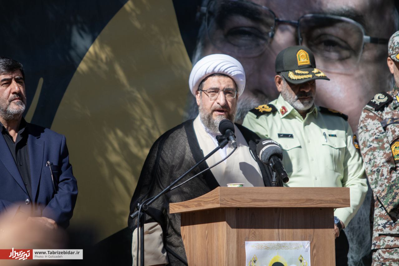نماینده ولی فقیه در آذربایجان شرقی در جمع تجمع کنندگان گفت: پشت جبهه مقاومت به سید عزیز شهید نصرالله گرم بود اما این خون‌ها به مردم این امید را می‌دهد که پیروزی نزدیک است. با رفتن این سید عزیز مقاومت شکست نمی‌خورد بلکه صهیونیست خواهند دید که مقاومت همچون شهاب بر سر آنها فرود خواهد آمد و از این اقدام خود پشیمان خواهند شد.