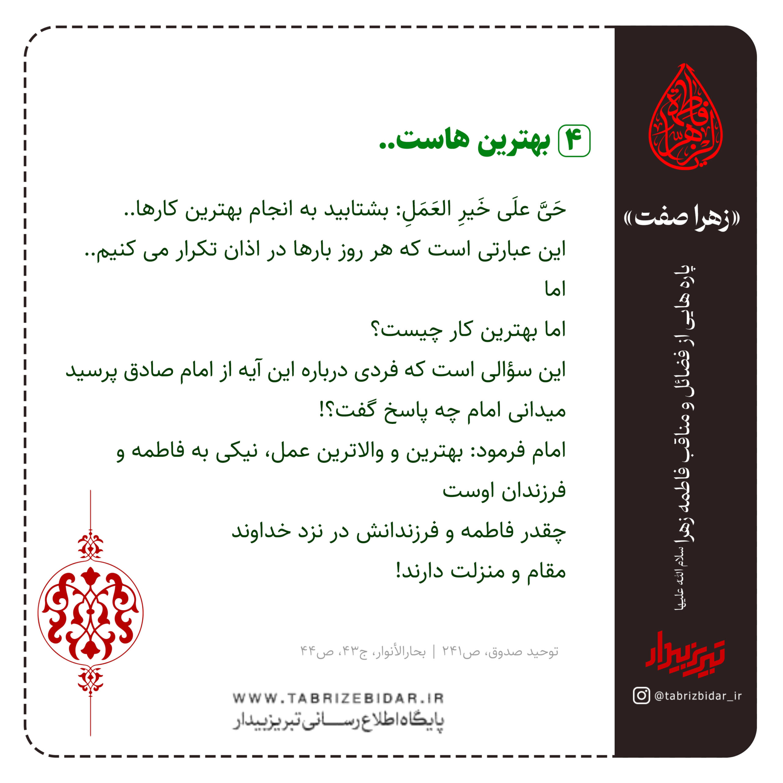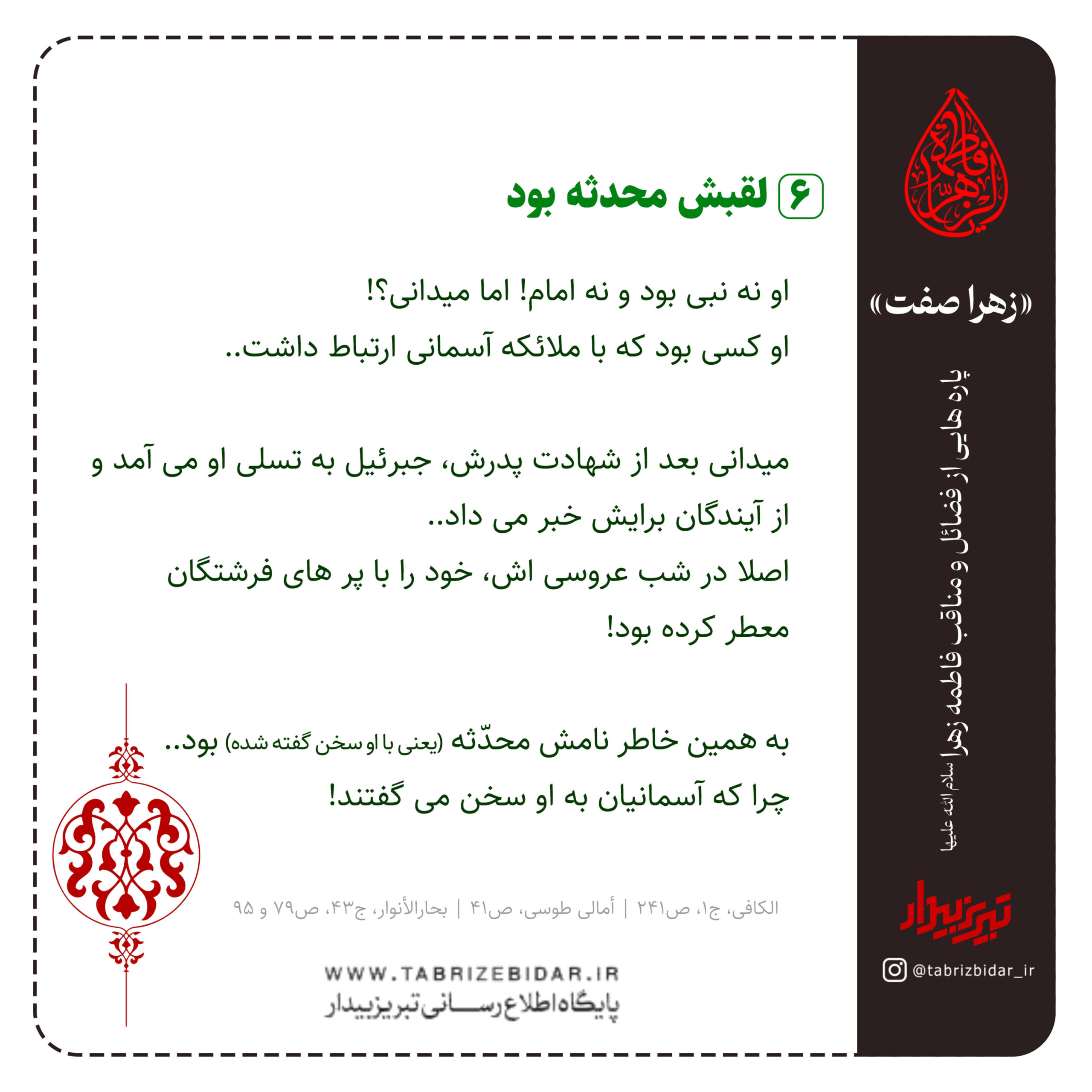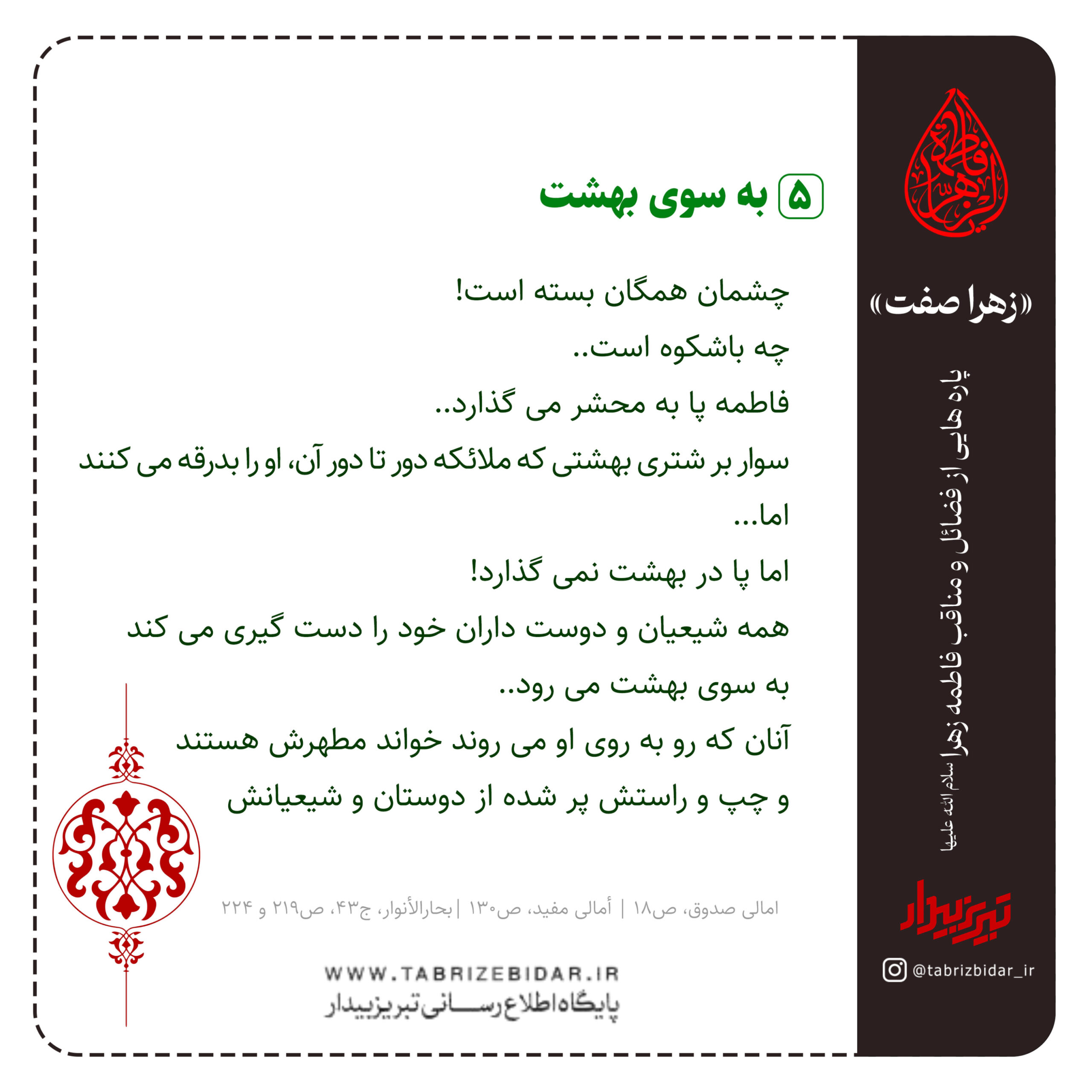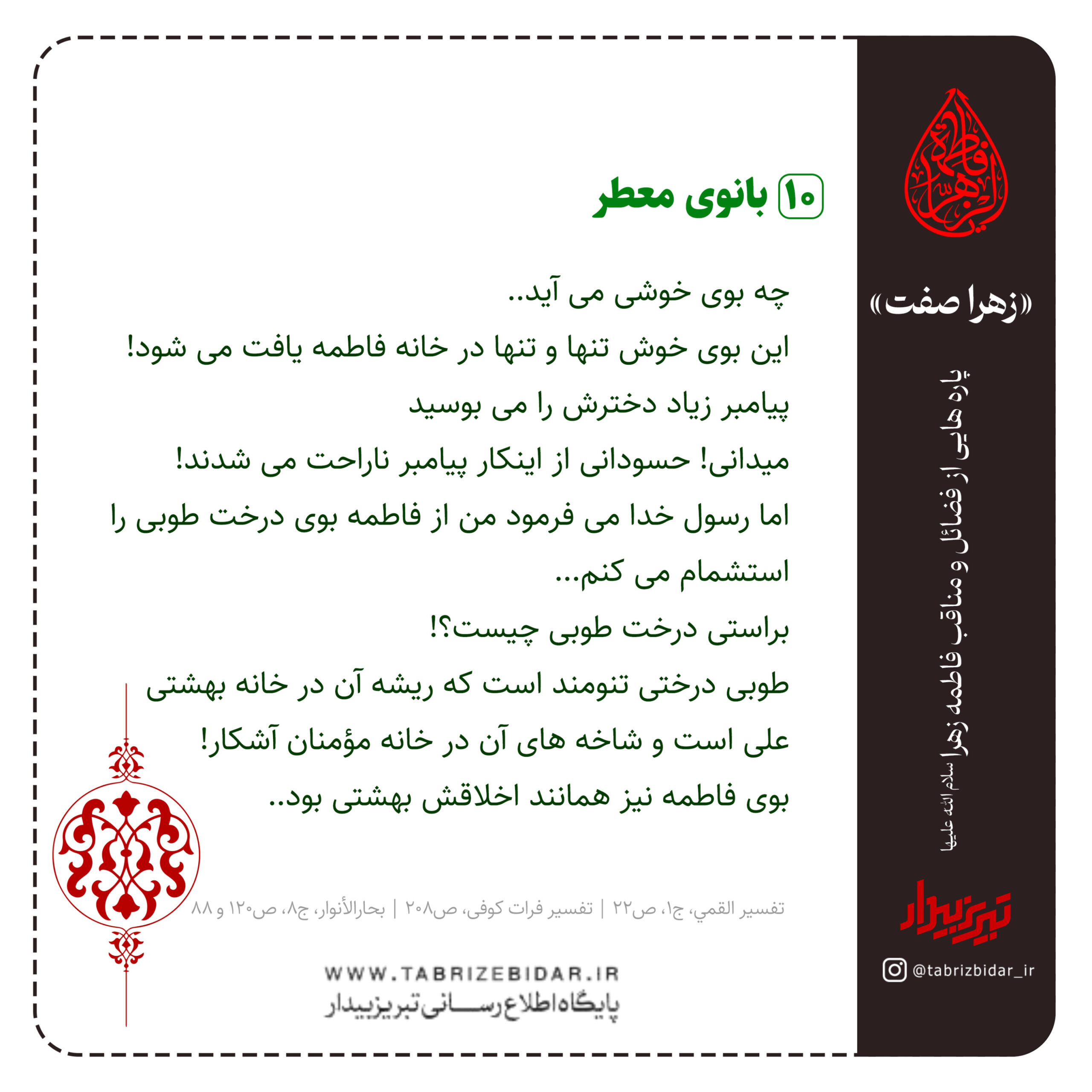 سرویس فرهنگی تبریزبیدار / به مناسبت ایام فاطمیه اول و شهادت حضرت زهرا(س)، مجموعه روایت هایی در قالب پوستر از فضایل و مناقب های این بانوی بزرگ دو عالم با عنوان «زهرا صفت»، تقدیم مخاطبان می شود.