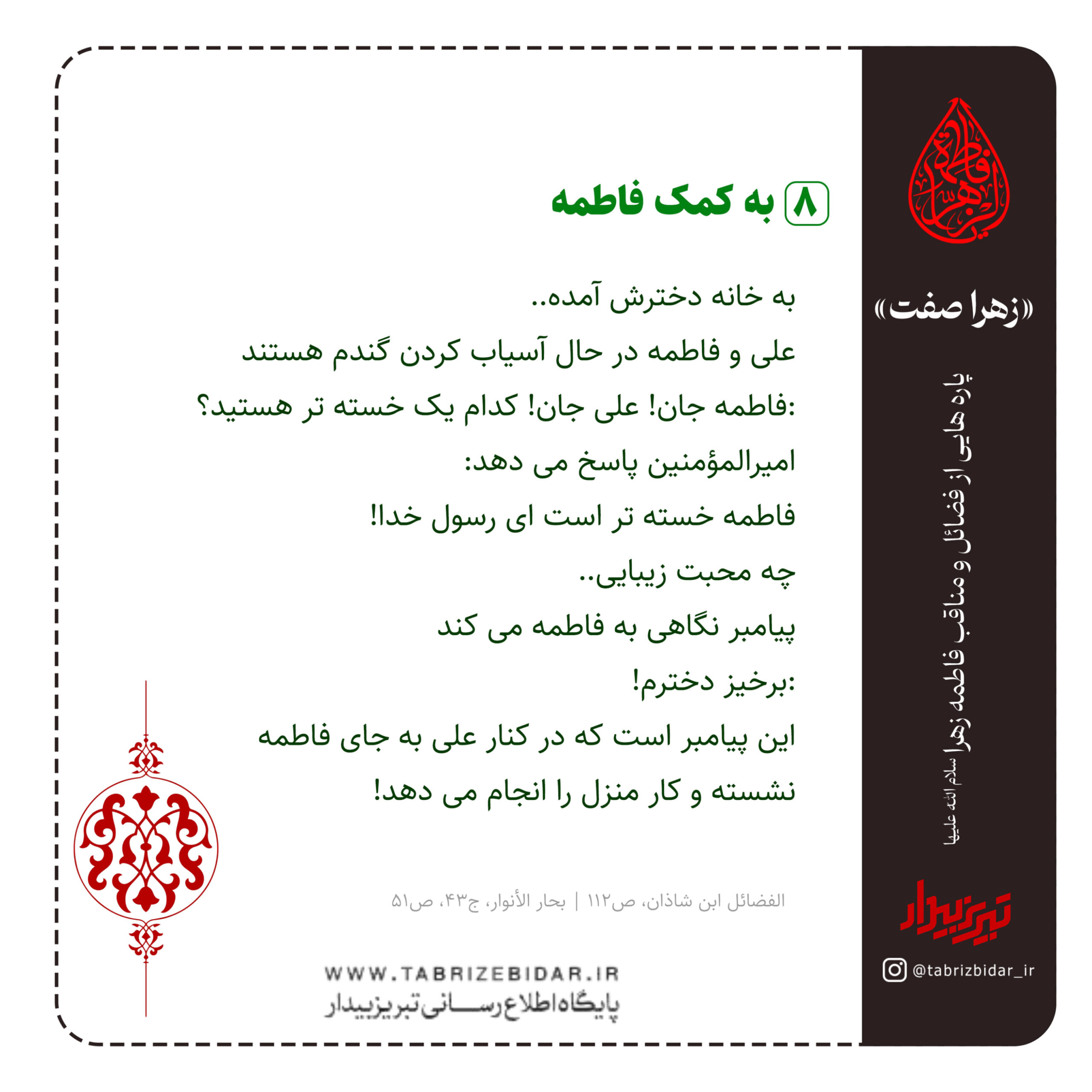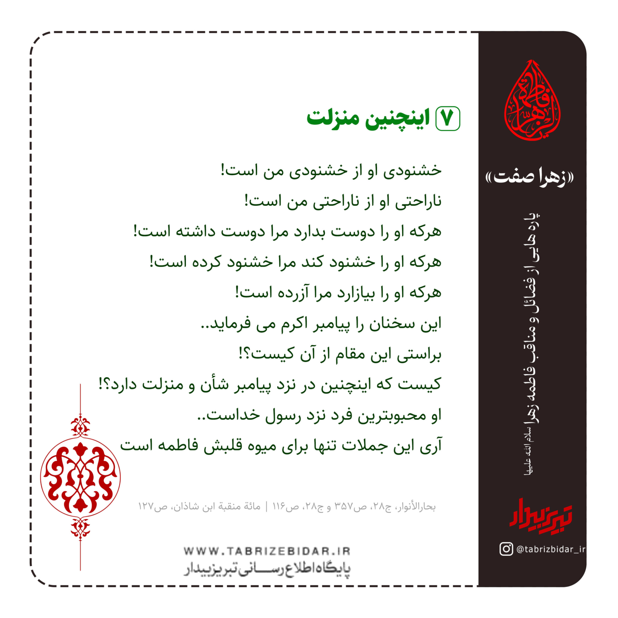 به مناسبت ایام فاطمیه اول و شهادت حضرت زهرا(س)، مجموعه روایت هایی در قالب پوستر از فضایل و مناقب های این بانوی بزرگ دو عالم، تقدیم مخاطبان می شود.