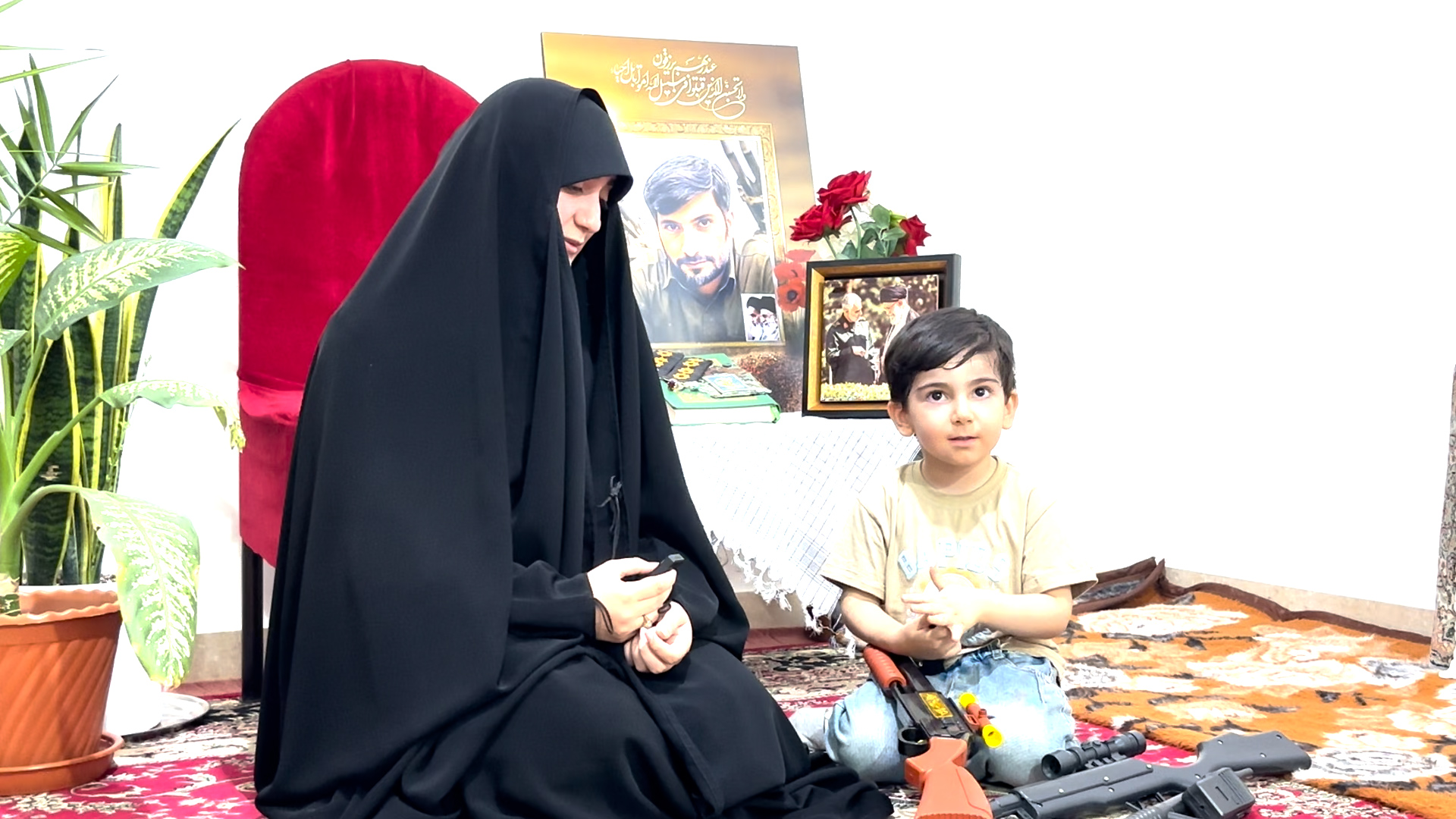 همسر شهید، با آرامشی که از جنس کوه بود، دعوتم کرد به نشستن. چادر مشکیاش را کمی مرتب کرد و لبخندی زد که بیشتر از اینکه شاد باشد، پر از غصههای عزیز و شیرین بود. گفت: «من مریمم… مریم رزاقپور. همسر احمد. اسفند ۹۸ با هم عقد کردیم، آذر ماه عروسی گرفتیم. پنج سال با هم زندگی کردیم. یه پسر داریم به اسم امیر مرتضی… سه سالشه.»