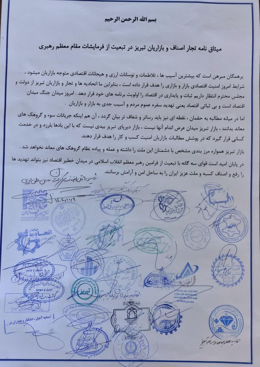 به گزارش تبریزبیدار،در بیانیه تجار و بازاریان تبریز در واکنش به نوسانات اقتصادی و آمده است: