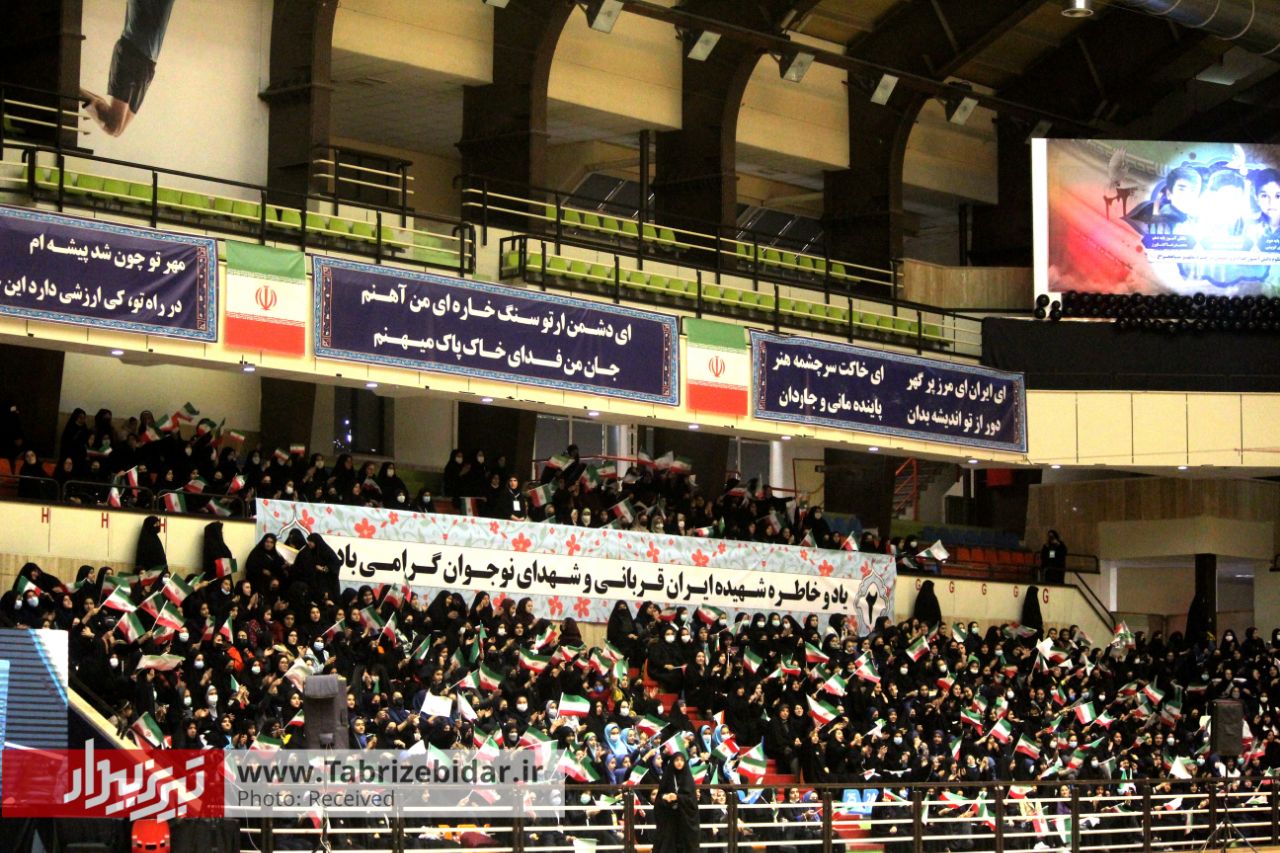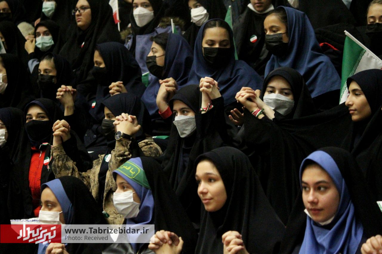 اجتماع ۷ هزار نفری دختران دهه هشتادی تبریز بمناسبت روز بسیج دانش آموزی در سالن ورزشی شهید پورشریفی تبریز برگزار شد.