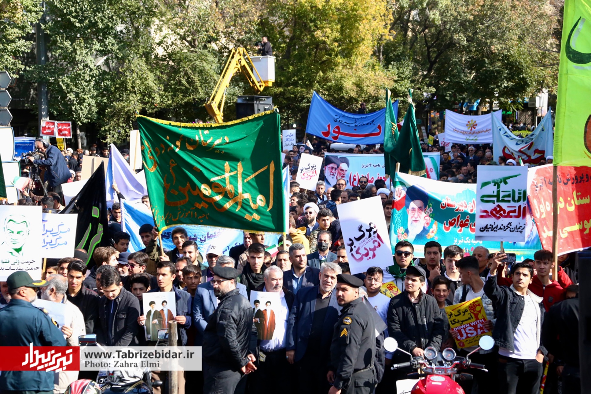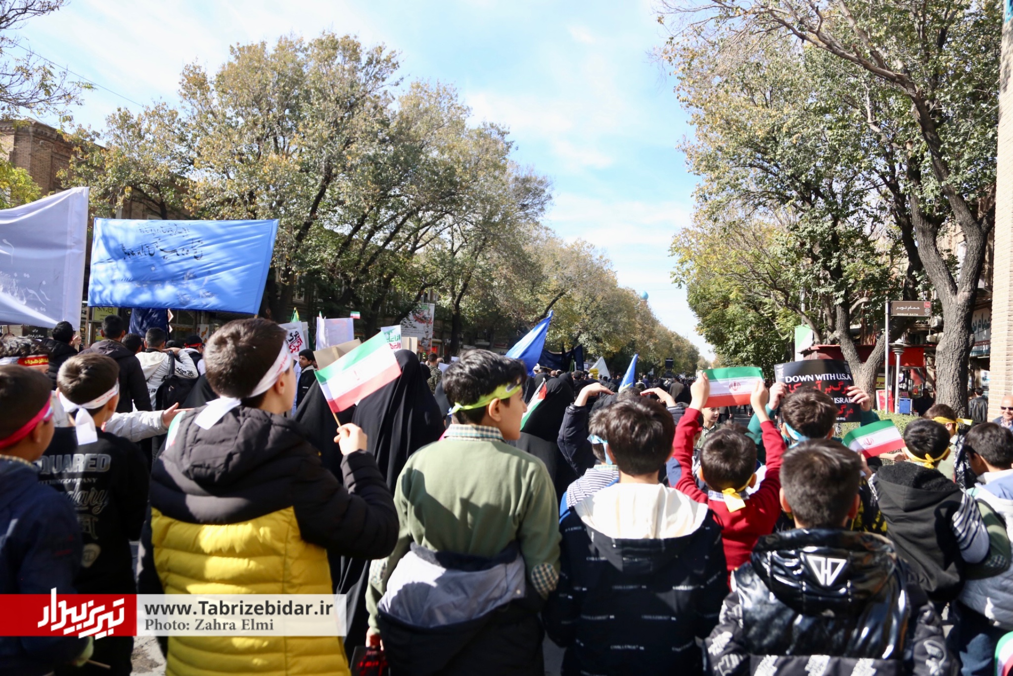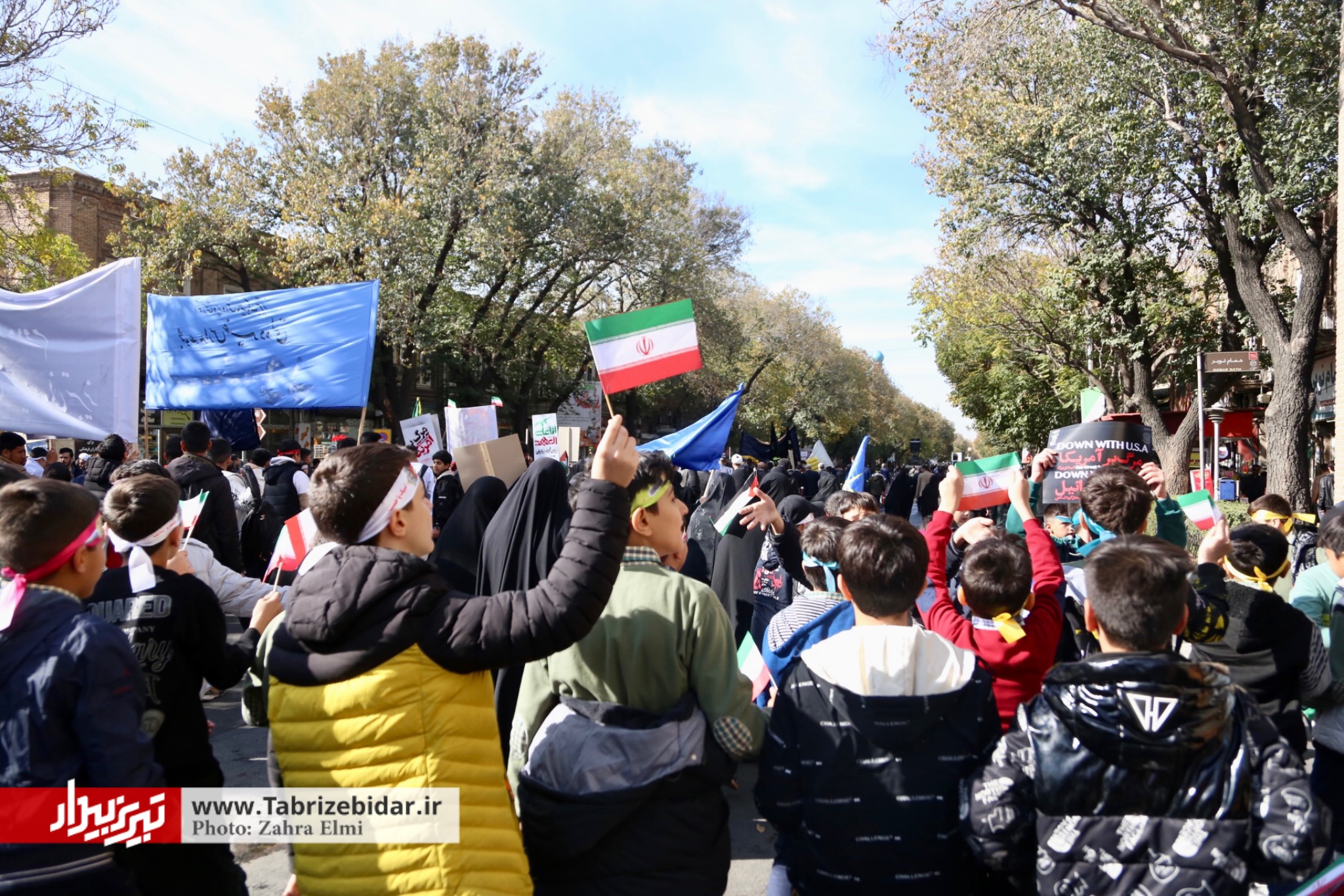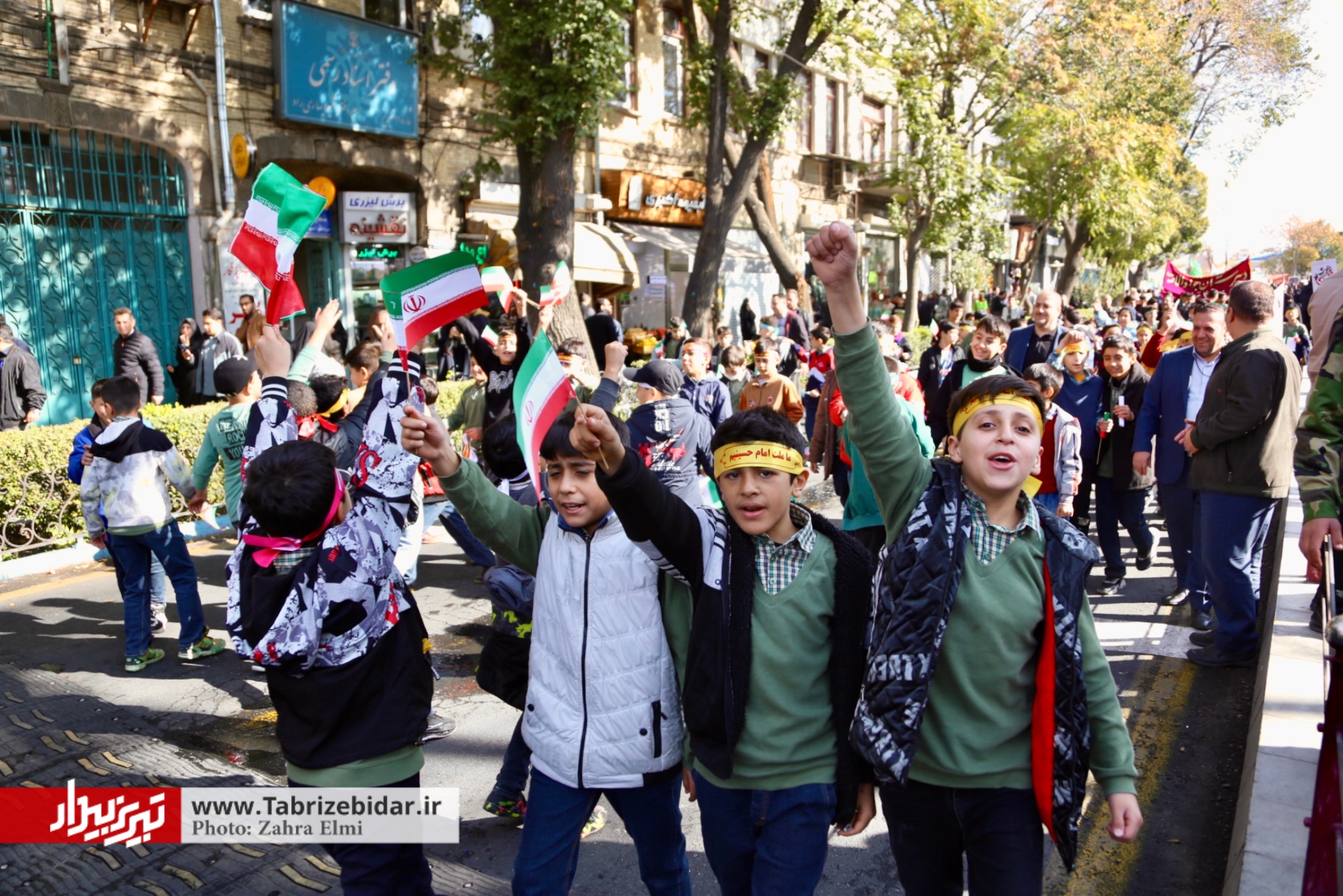 مردم و دانش‌آموزان تبریز همزمان با سراسر کشور در راهپیمایی ۱۳ آبان حضور یافتند و با شعارهای ضد استکباری، یاد شهدای دانش‌آموز جنگ ۱۲ روزه را زنده کردند.