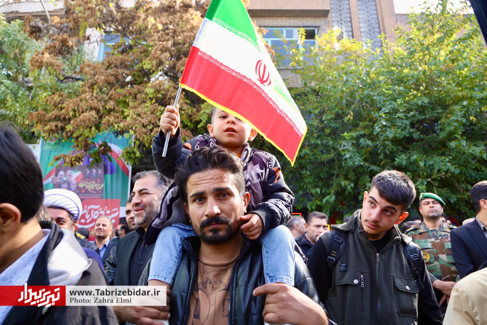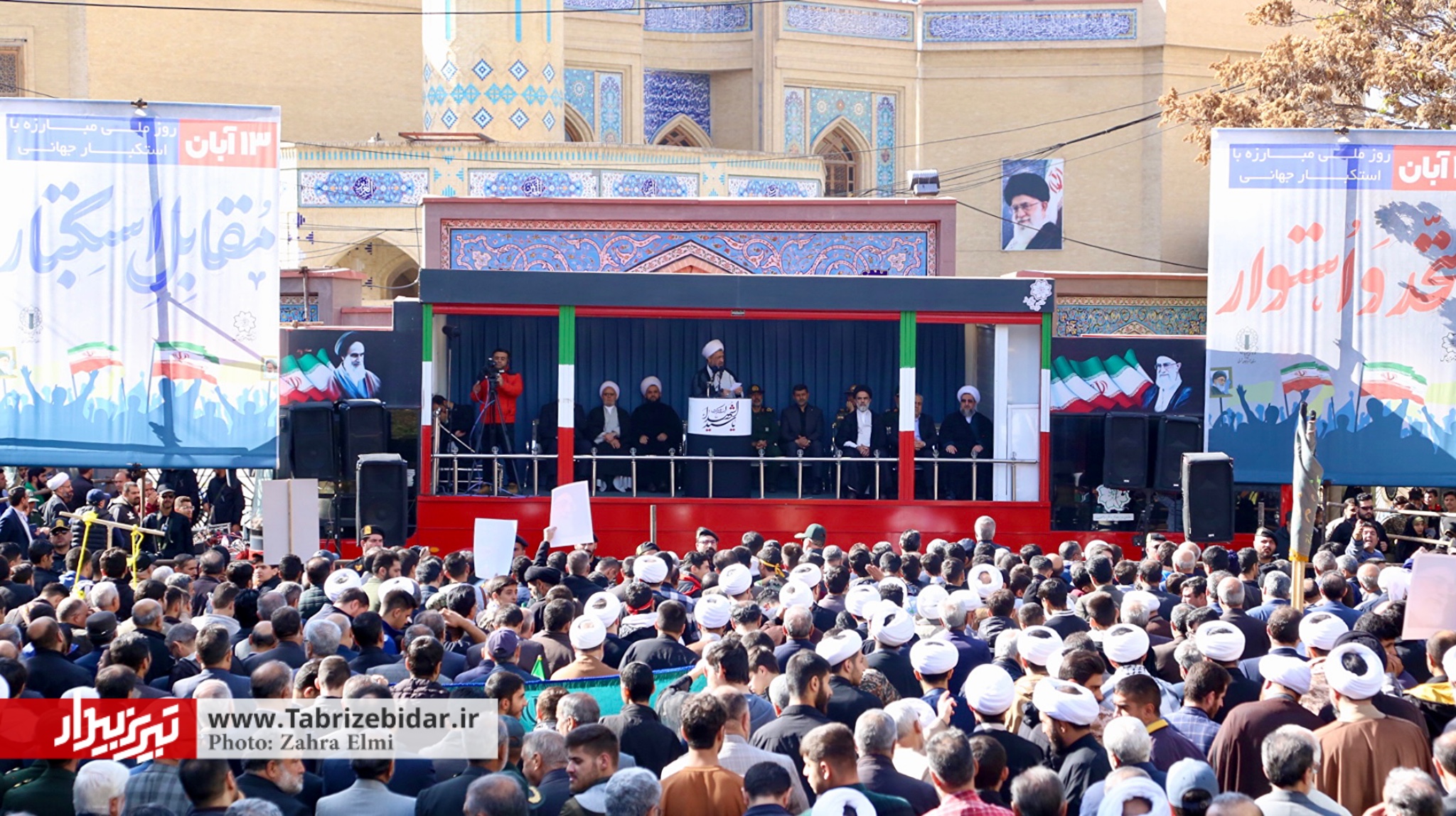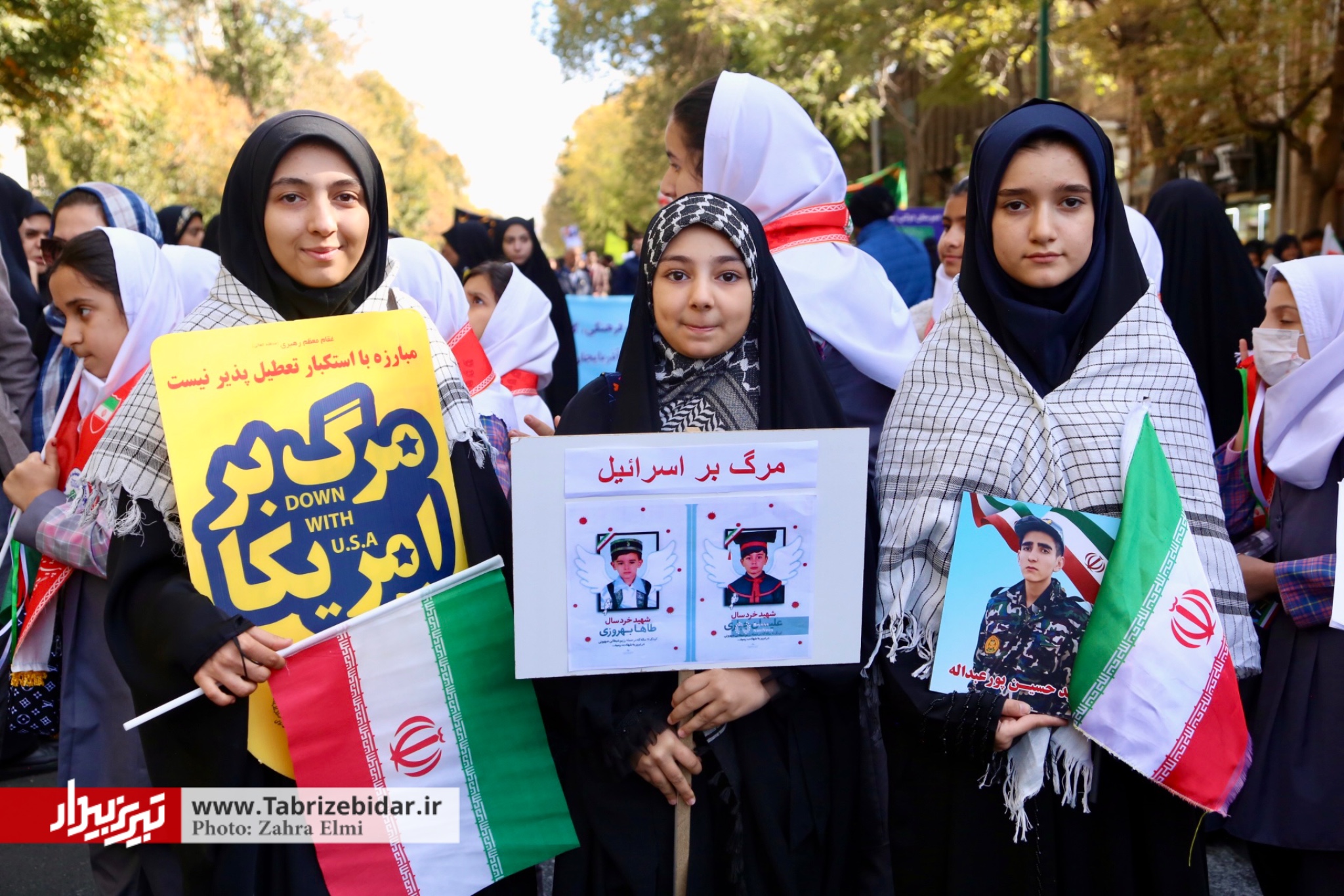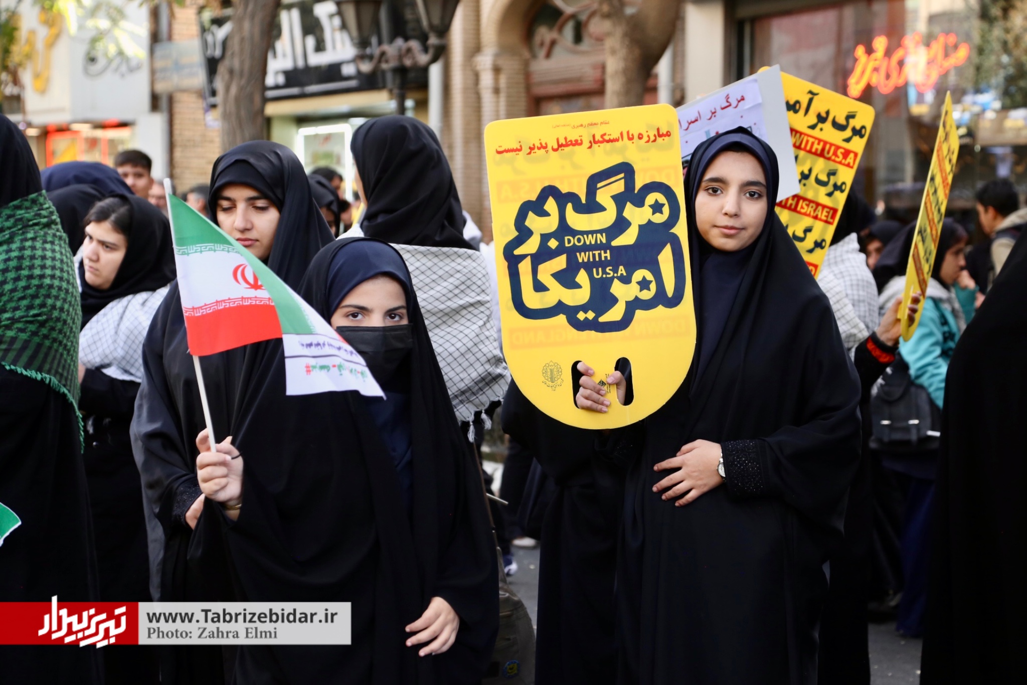 مردم و دانش‌آموزان تبریز همزمان با سراسر کشور در راهپیمایی ۱۳ آبان حضور یافتند و با شعارهای ضد استکباری، یاد شهدای دانش‌آموز جنگ ۱۲ روزه را زنده کردند.