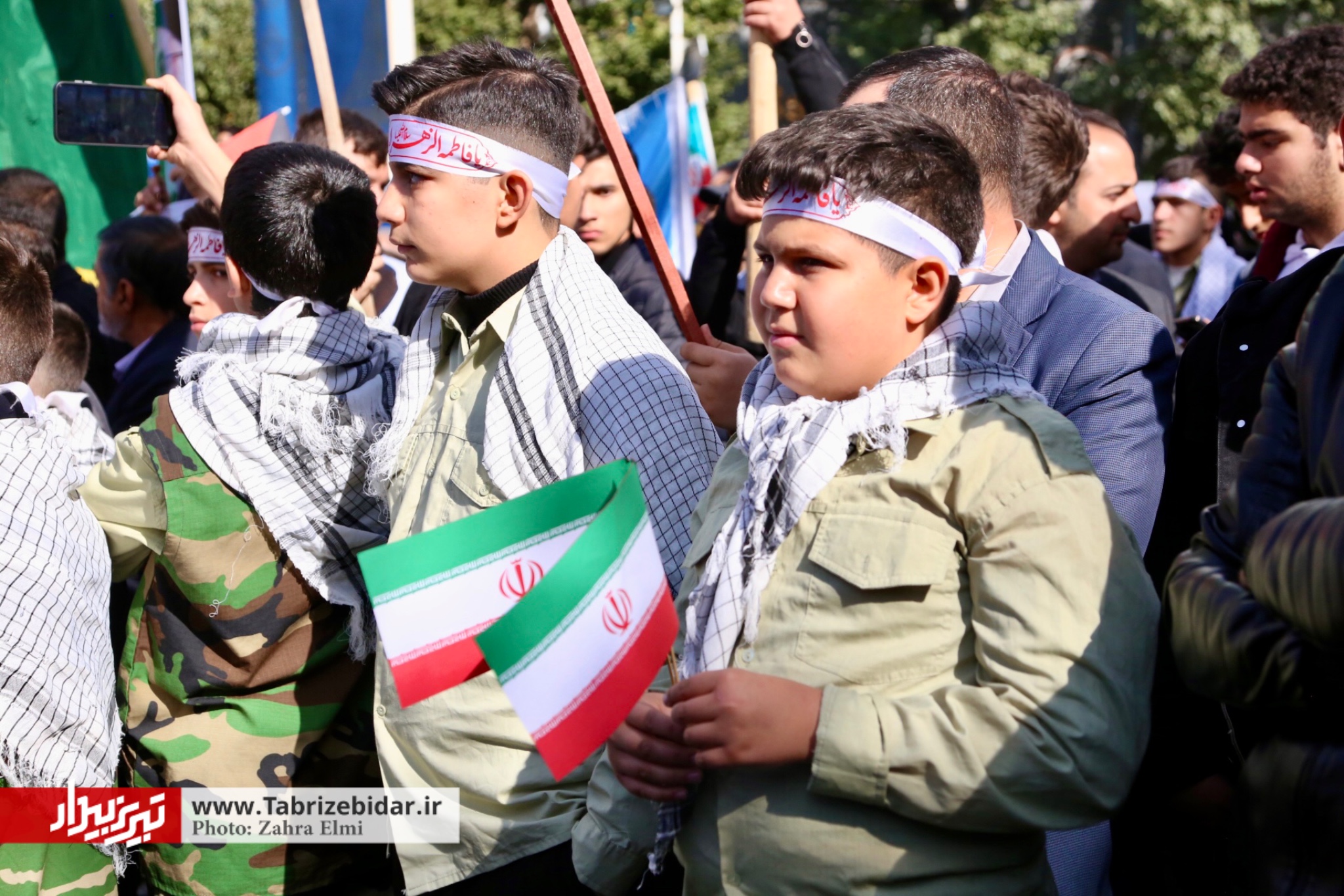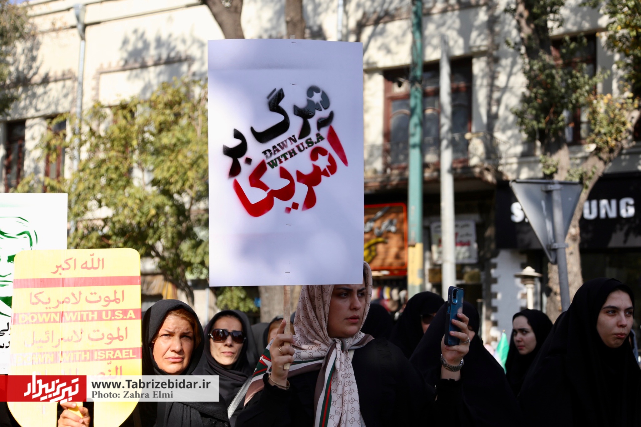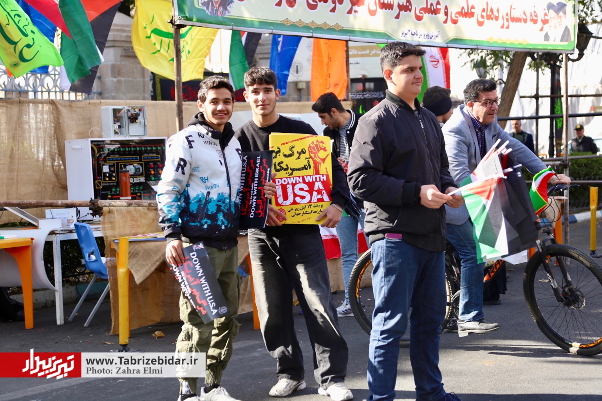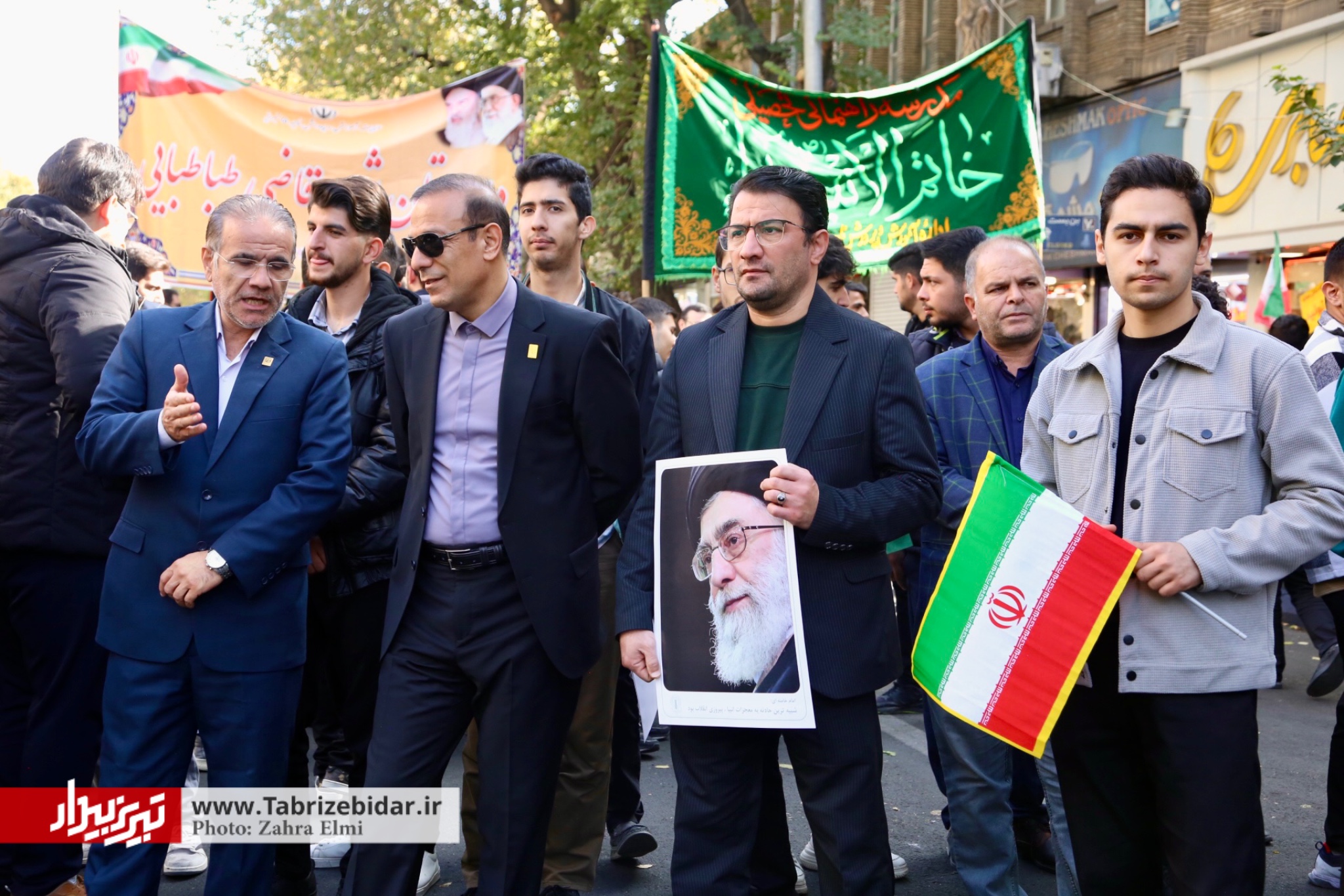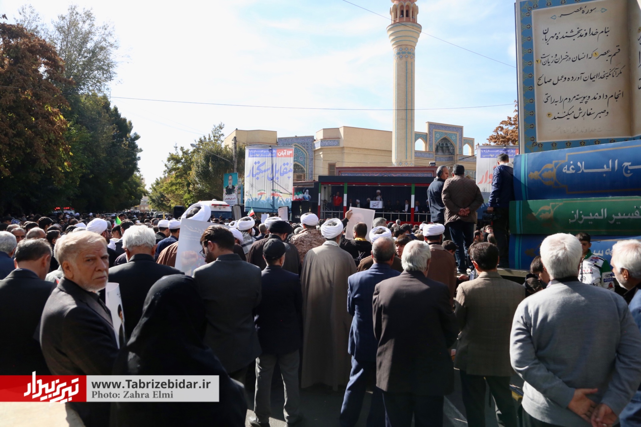 مردم و دانش‌آموزان تبریز همزمان با سراسر کشور در راهپیمایی ۱۳ آبان حضور یافتند و با شعارهای ضد استکباری، یاد شهدای دانش‌آموز جنگ ۱۲ روزه را زنده کردند.