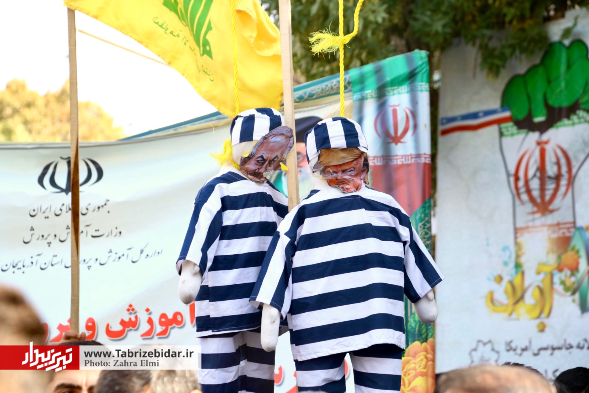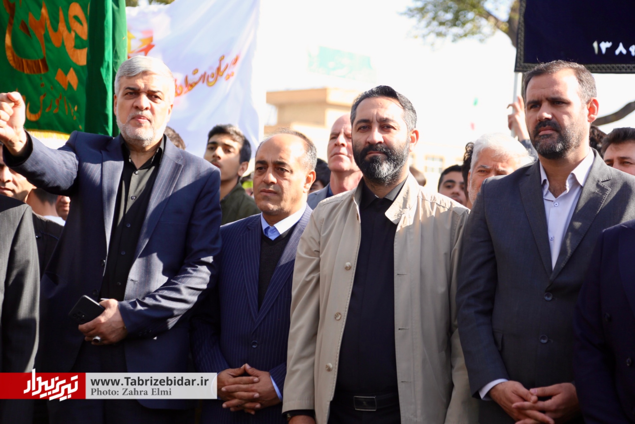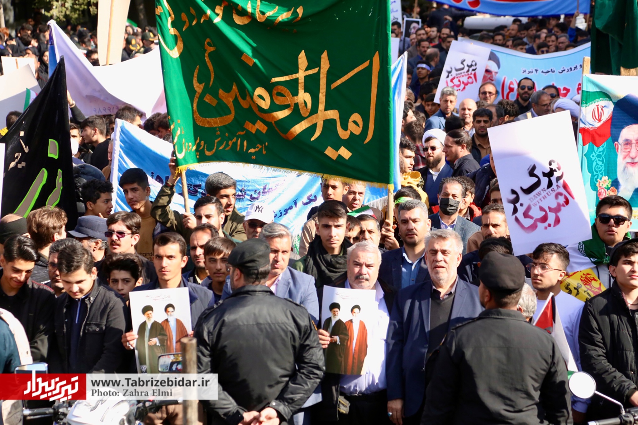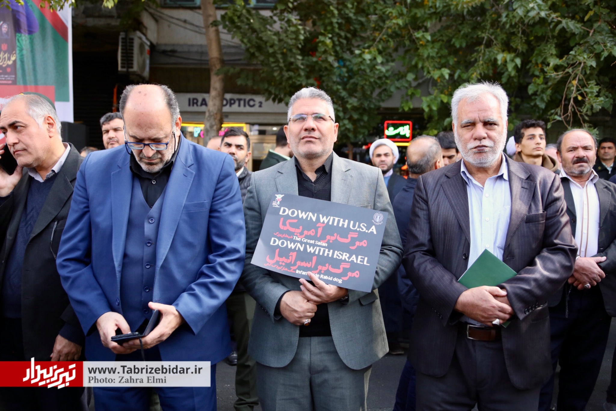 مردم و دانش‌آموزان تبریز همزمان با سراسر کشور در راهپیمایی ۱۳ آبان حضور یافتند و با شعارهای ضد استکباری، یاد شهدای دانش‌آموز جنگ ۱۲ روزه را زنده کردند.