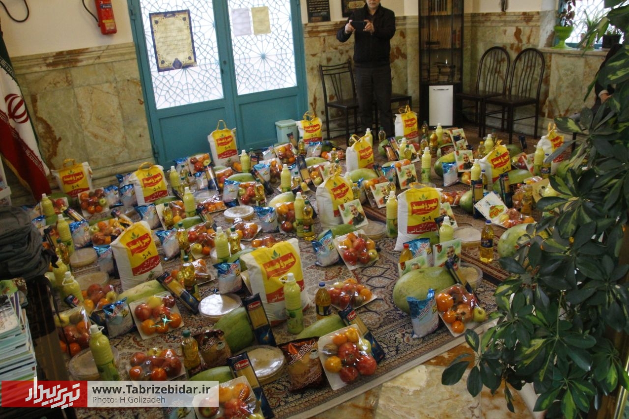 ۳۰۰ بسته یلدایی در مقبره جناب حمال تبریزی با همکاری اداره کل اوقاف و امور خیریه و مراکز نیکوکاری تبریز بین نیازمندان این شهر توزیع شد.