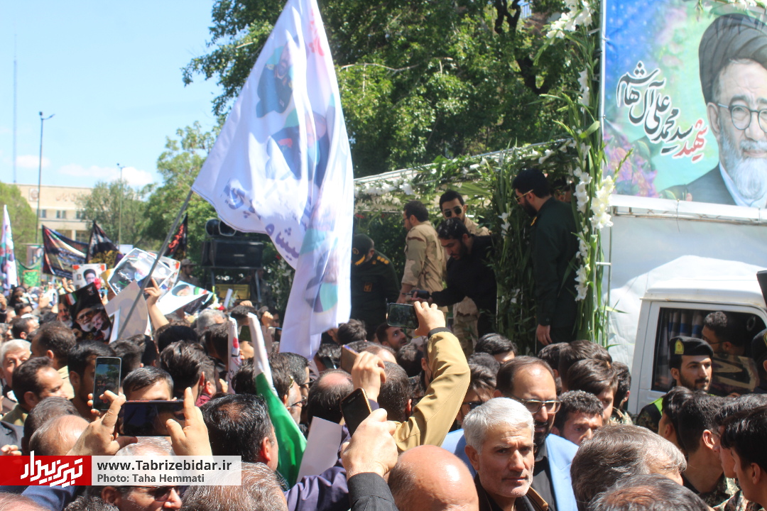 پیکر شهید آیت الله سید محمدعلی آل هاشم، با حضور مردم قدرشناس مردم تبریز و آذربایجان به سوی خانه ابدی در گلزار شهدای وادی رحمت تبریز بدرقه شد.