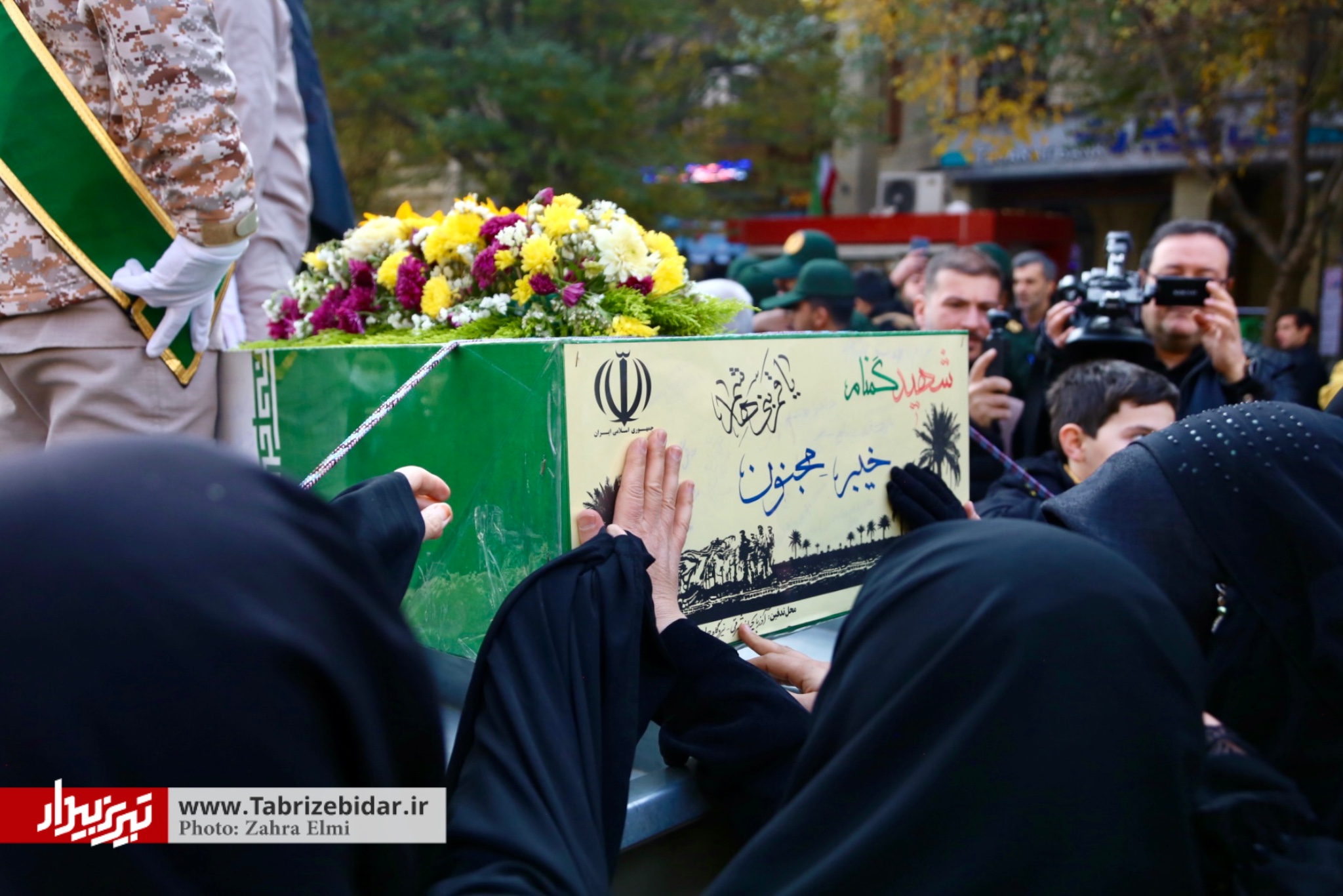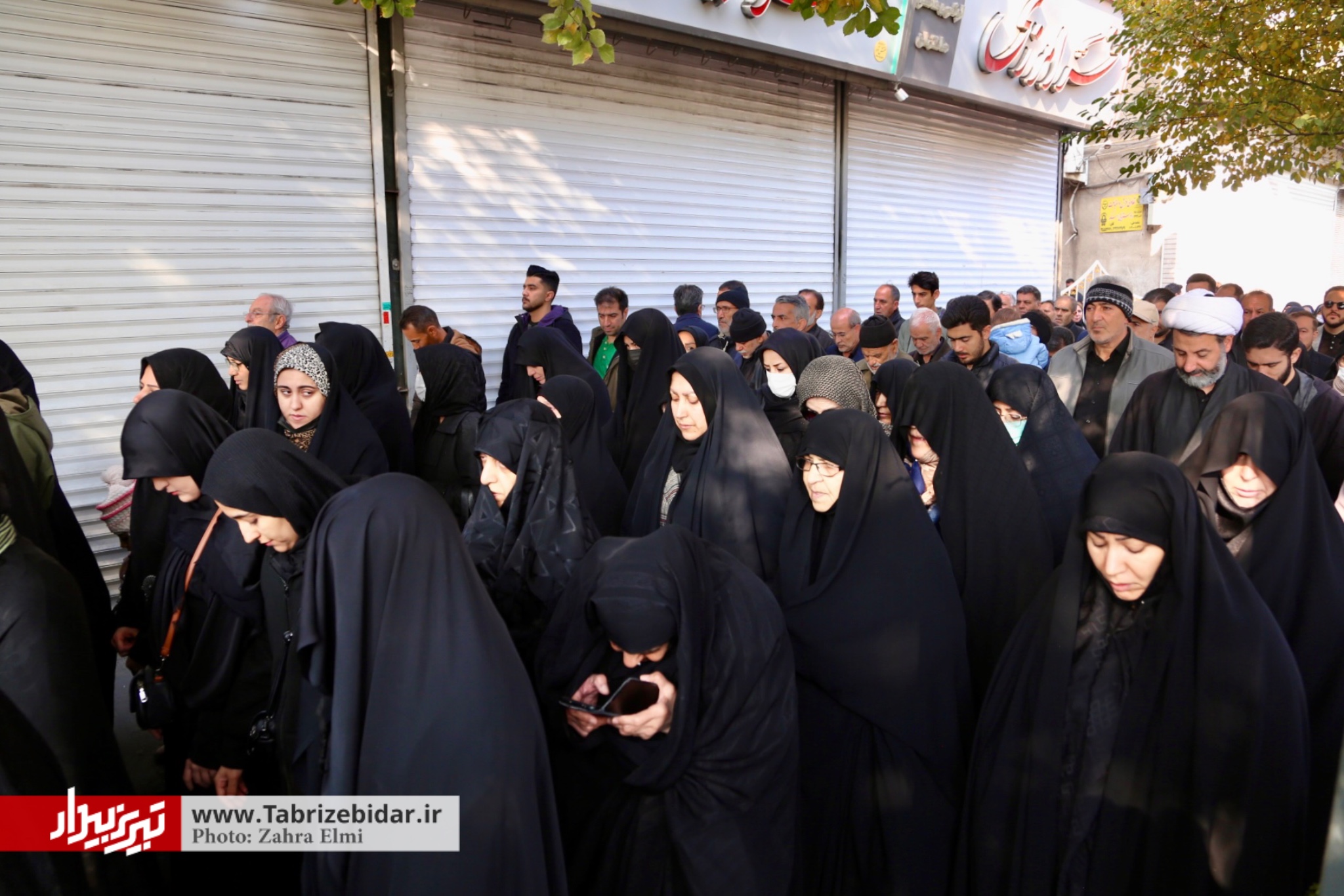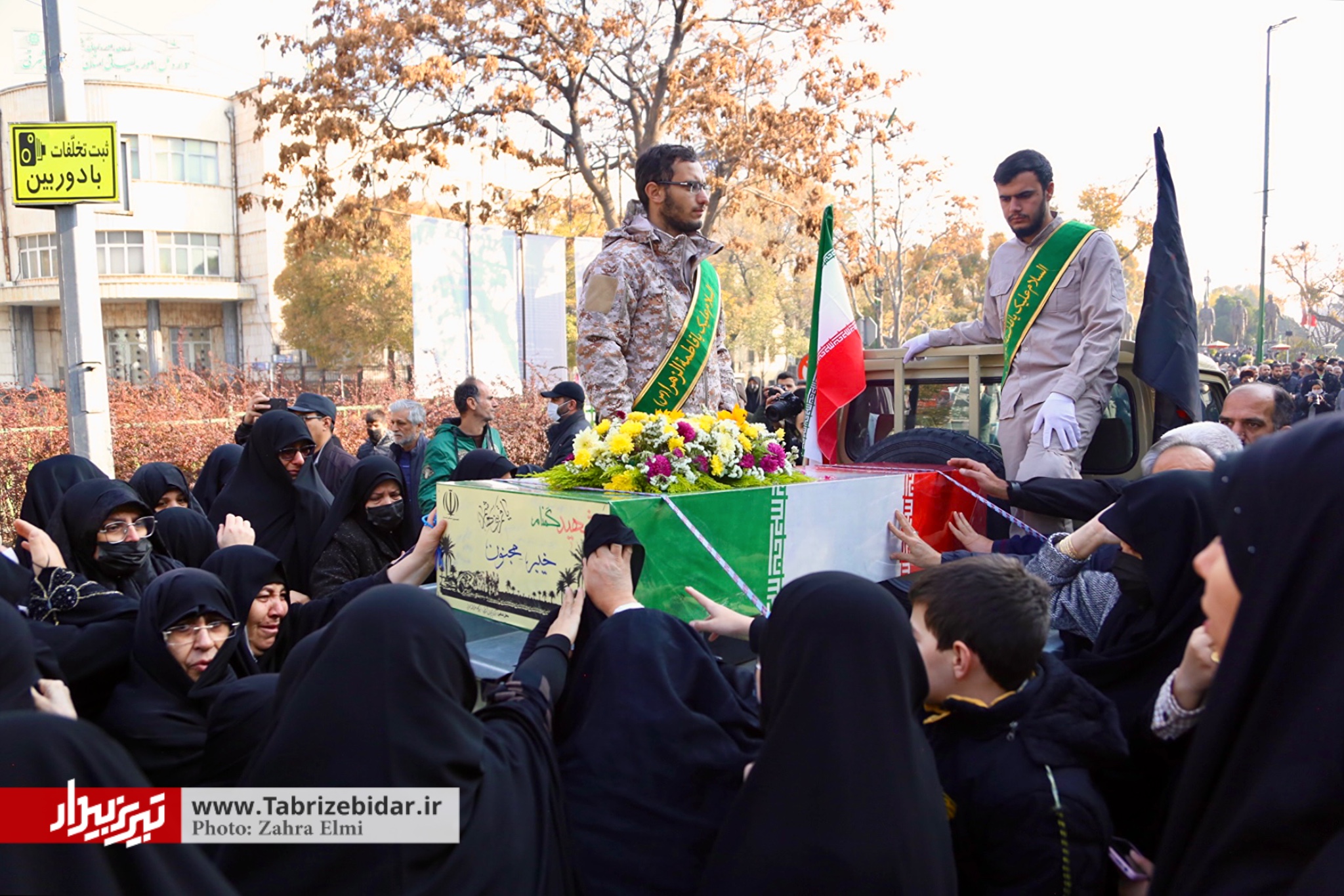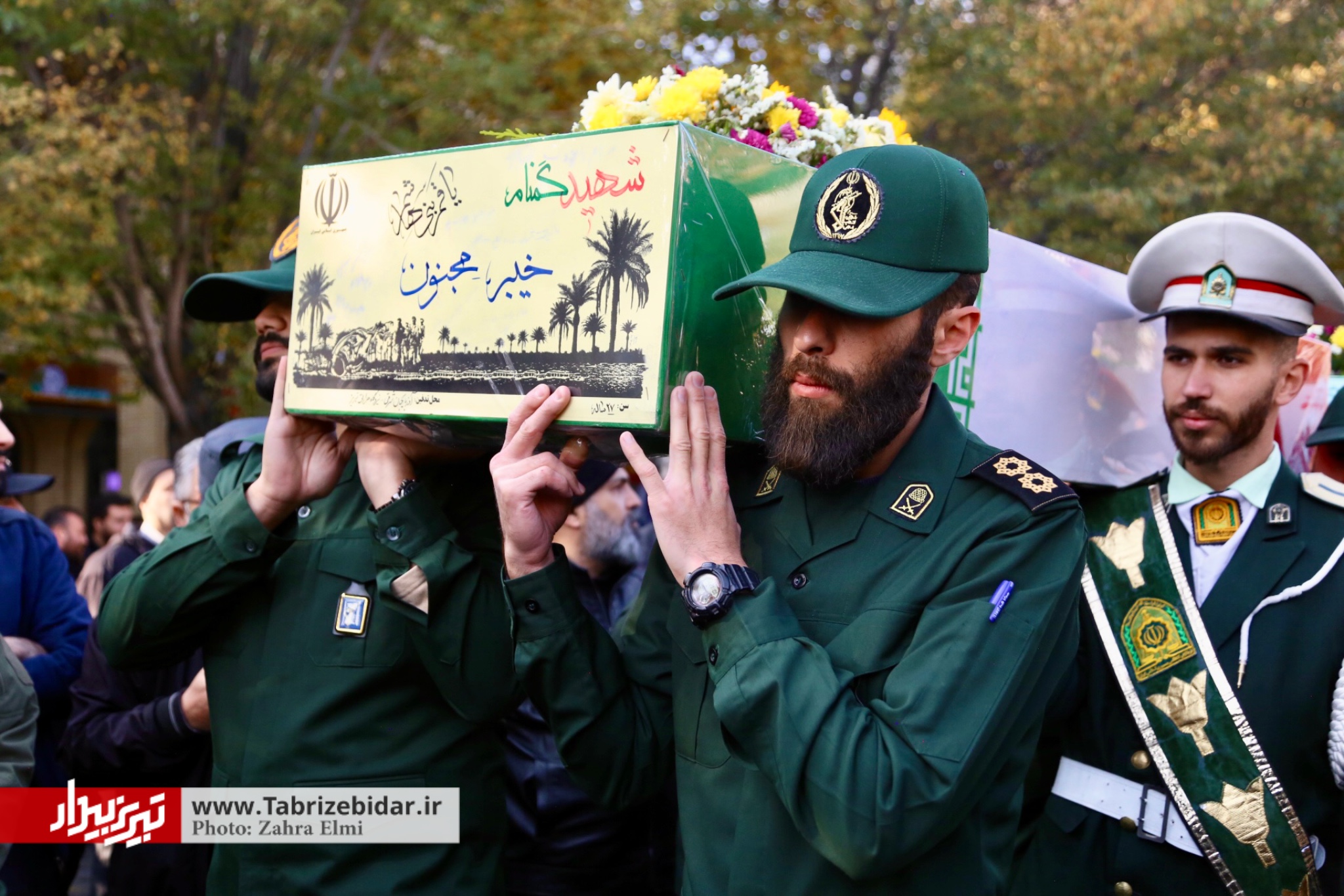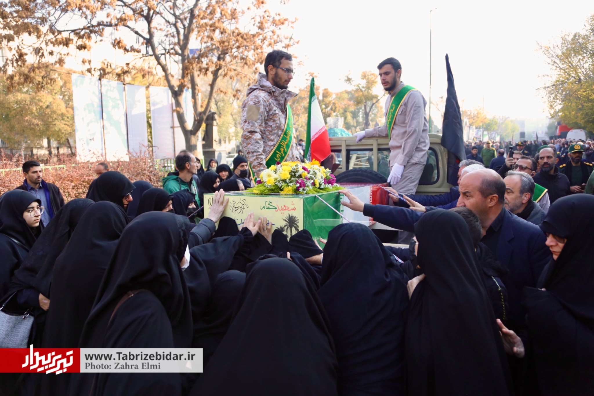 صبح امروز همزمان با سالروز شهادت حضرت فاطمه زهرا(س)، پیکرهای مطهر چهار شهید گمنام دوران دفاع مقدس بر دوش مردم تبریز از میدان شهدا تا میدان ساعت تشییع شد. (عکس: زهرا علمی – ۳ آذر ۱۴۰۴)