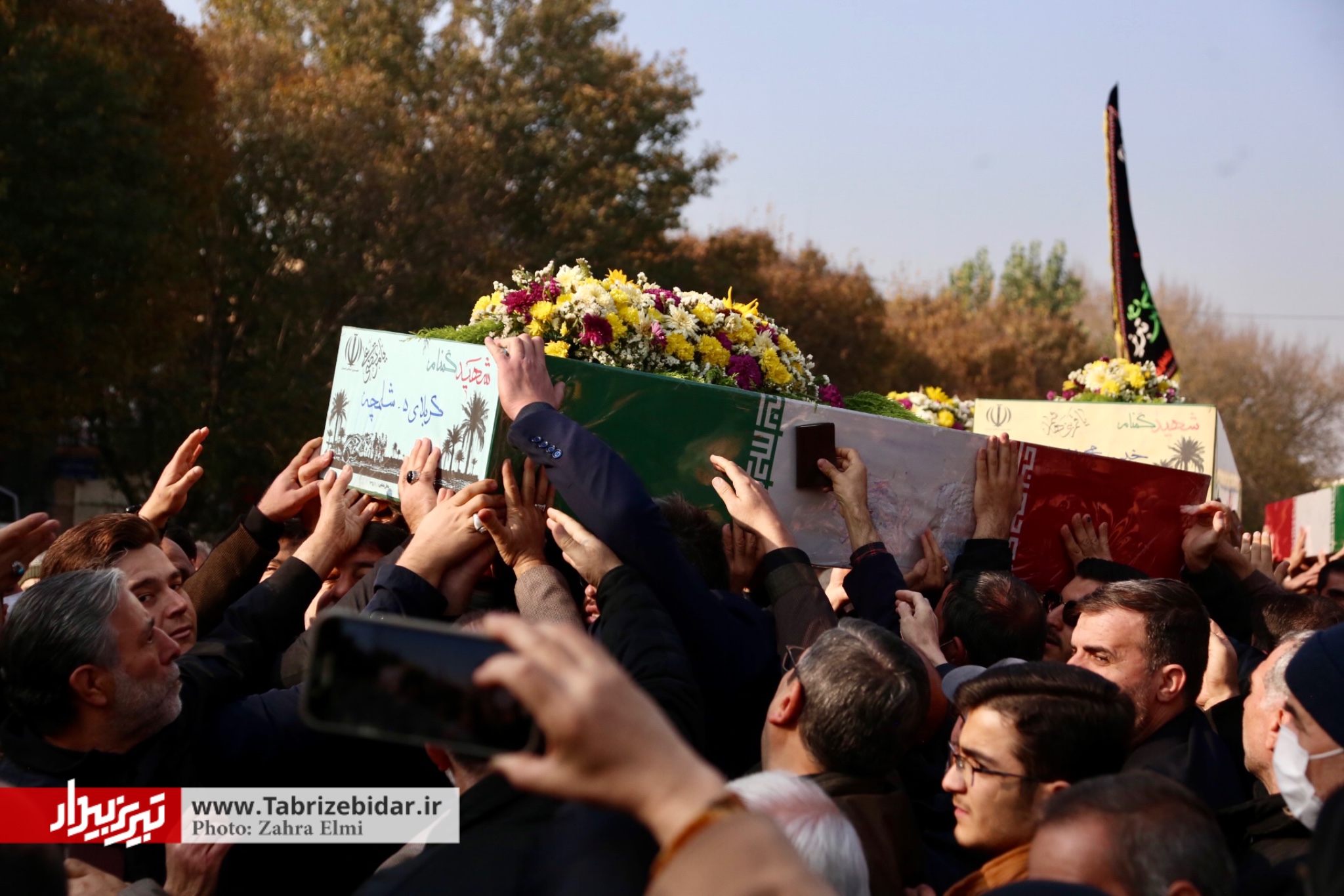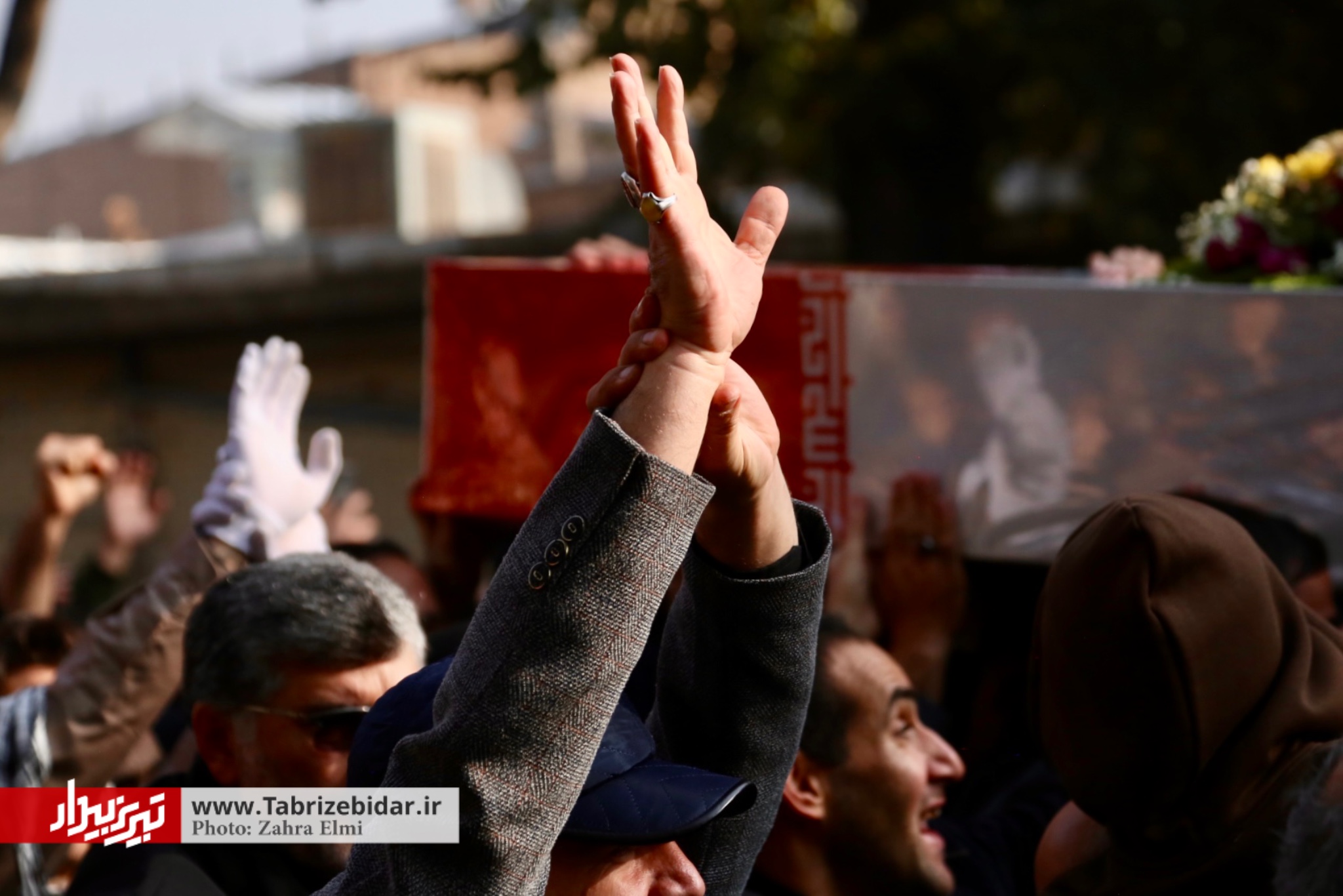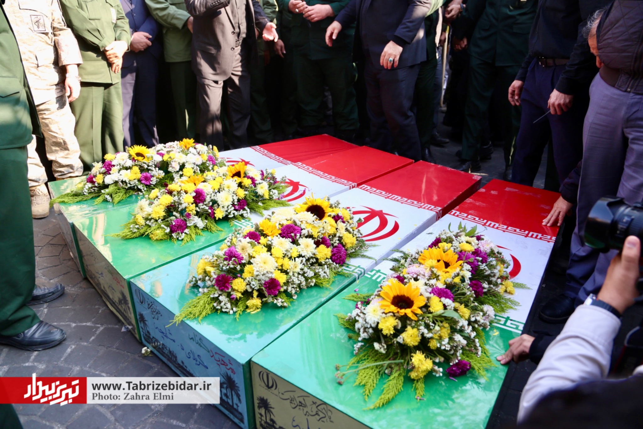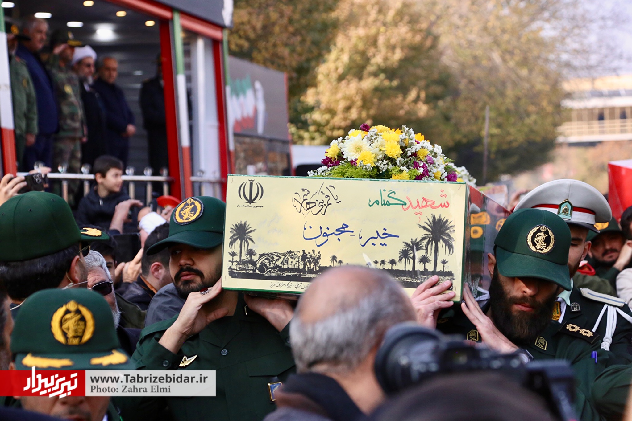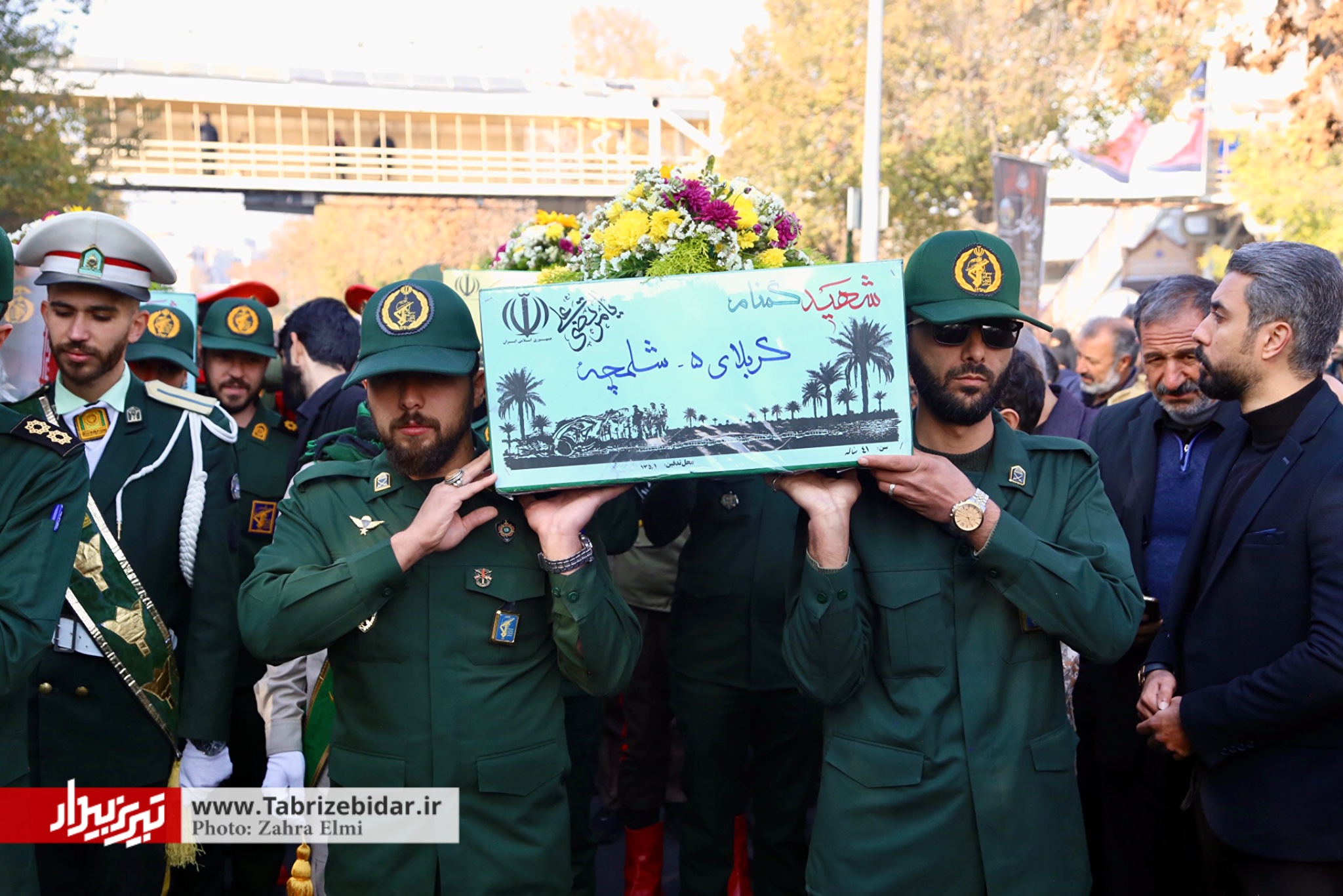 صبح امروز همزمان با سالروز شهادت حضرت فاطمه زهرا(س)، پیکرهای مطهر چهار شهید گمنام دوران دفاع مقدس بر دوش مردم تبریز از میدان شهدا تا میدان ساعت تشییع شد. (عکس: زهرا علمی – ۳ آذر ۱۴۰۴)