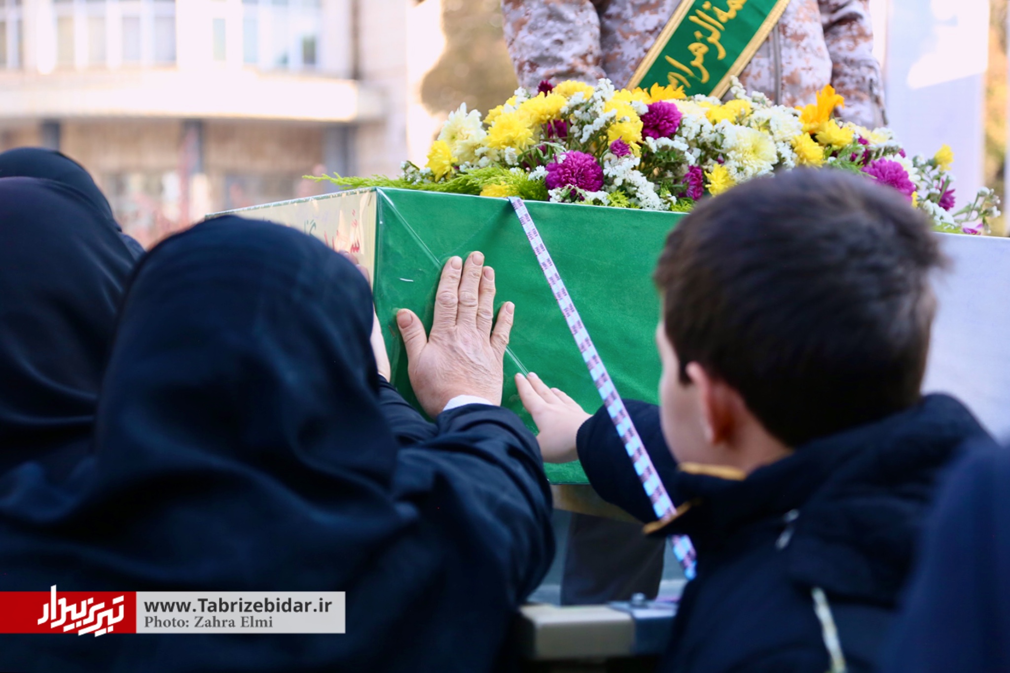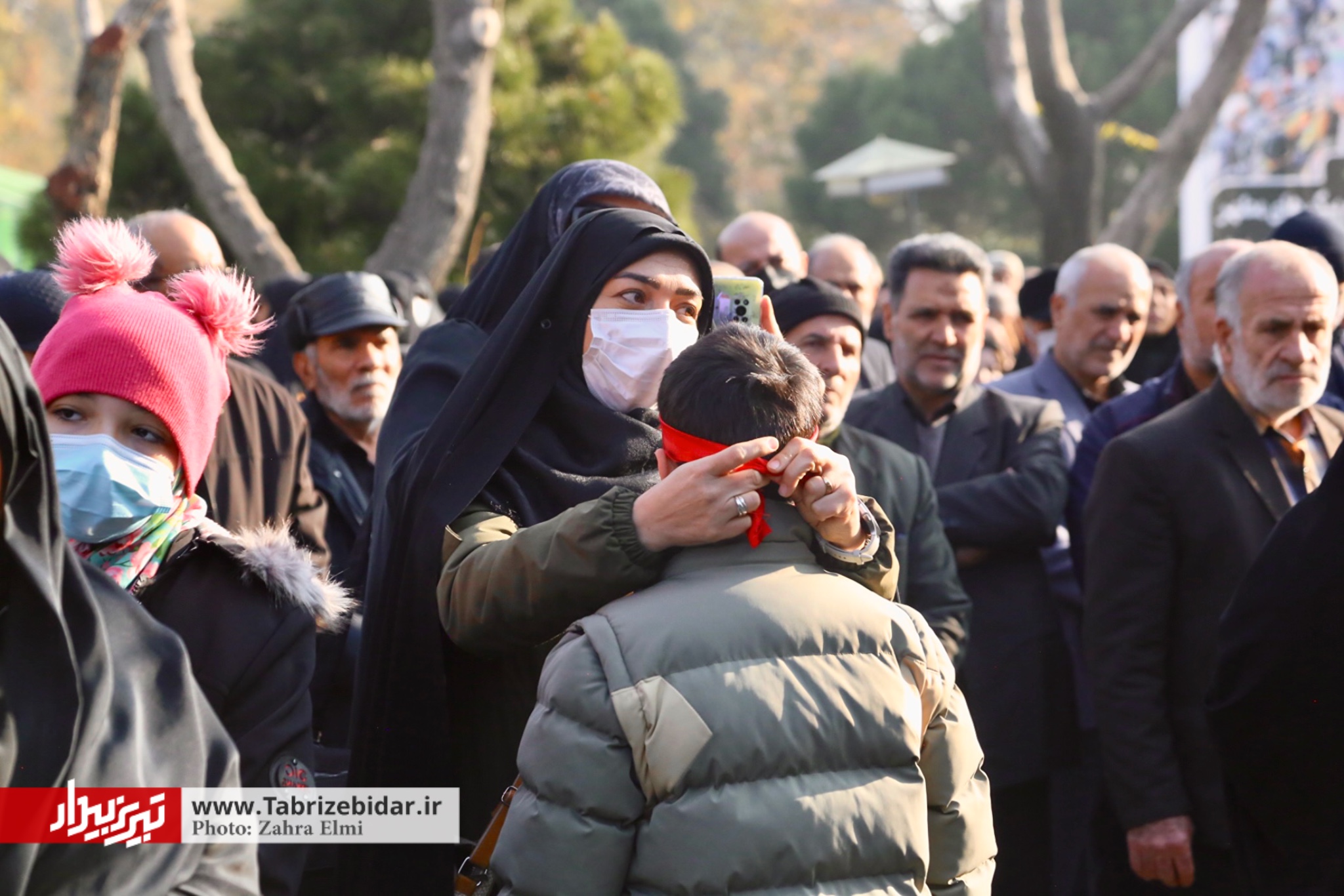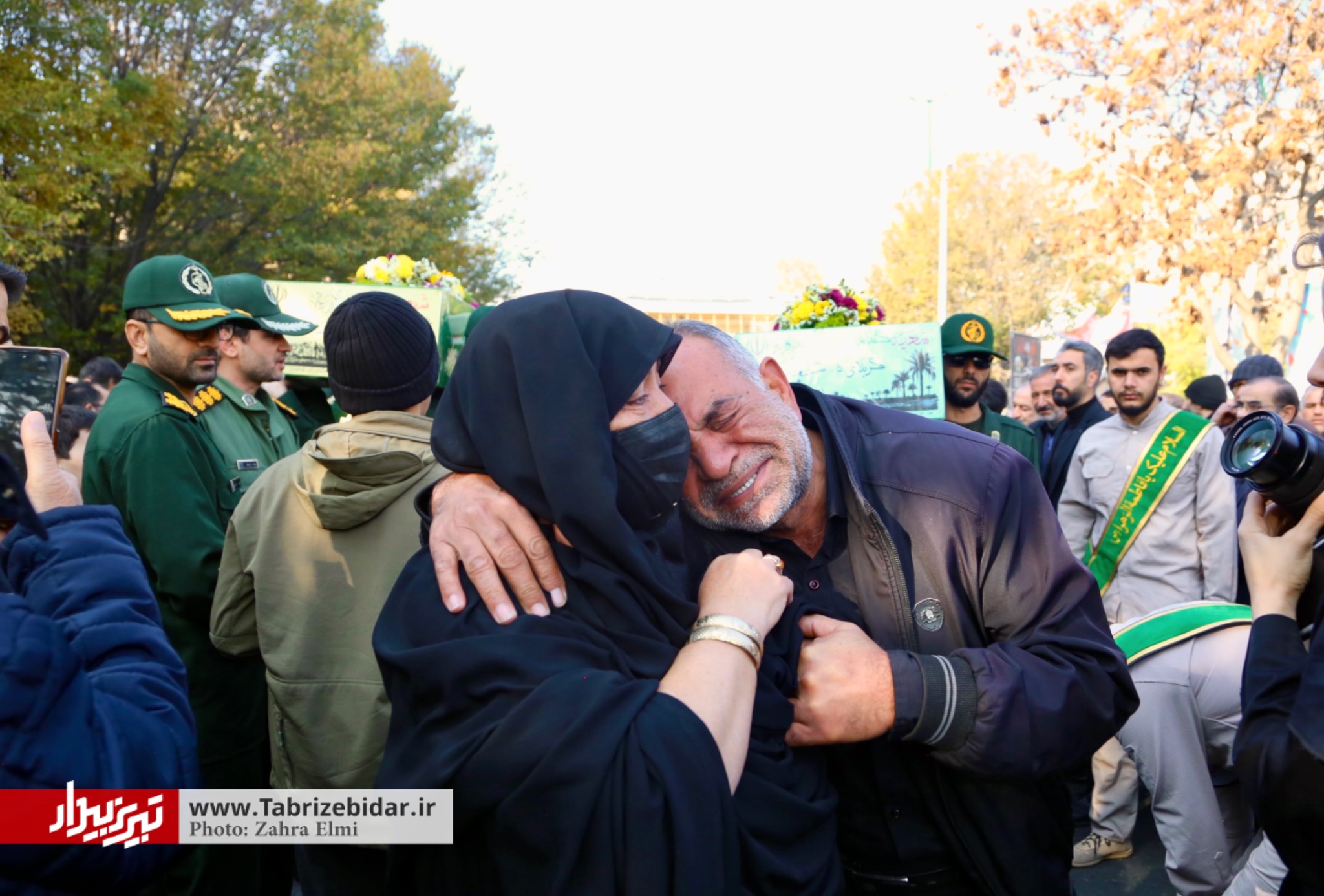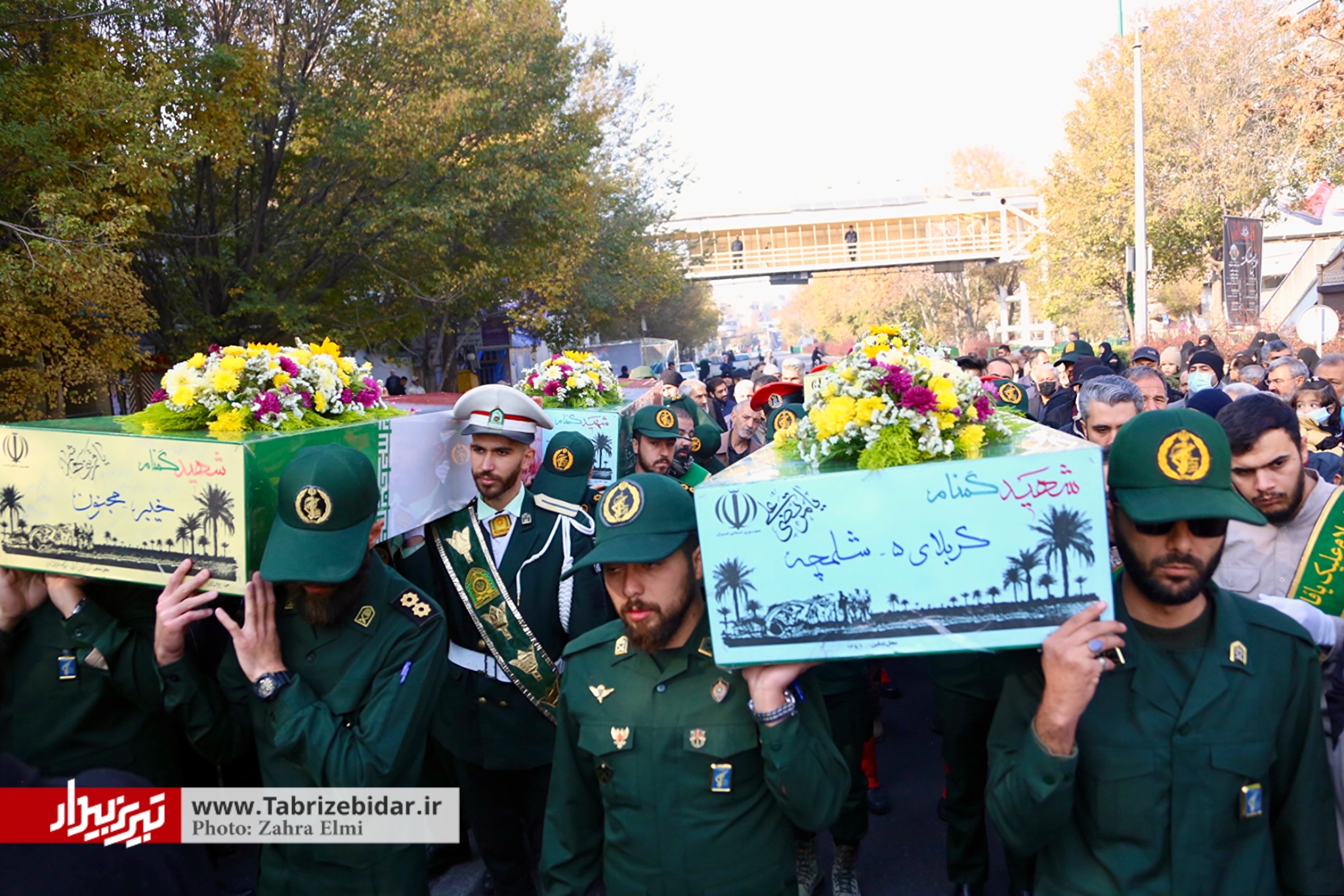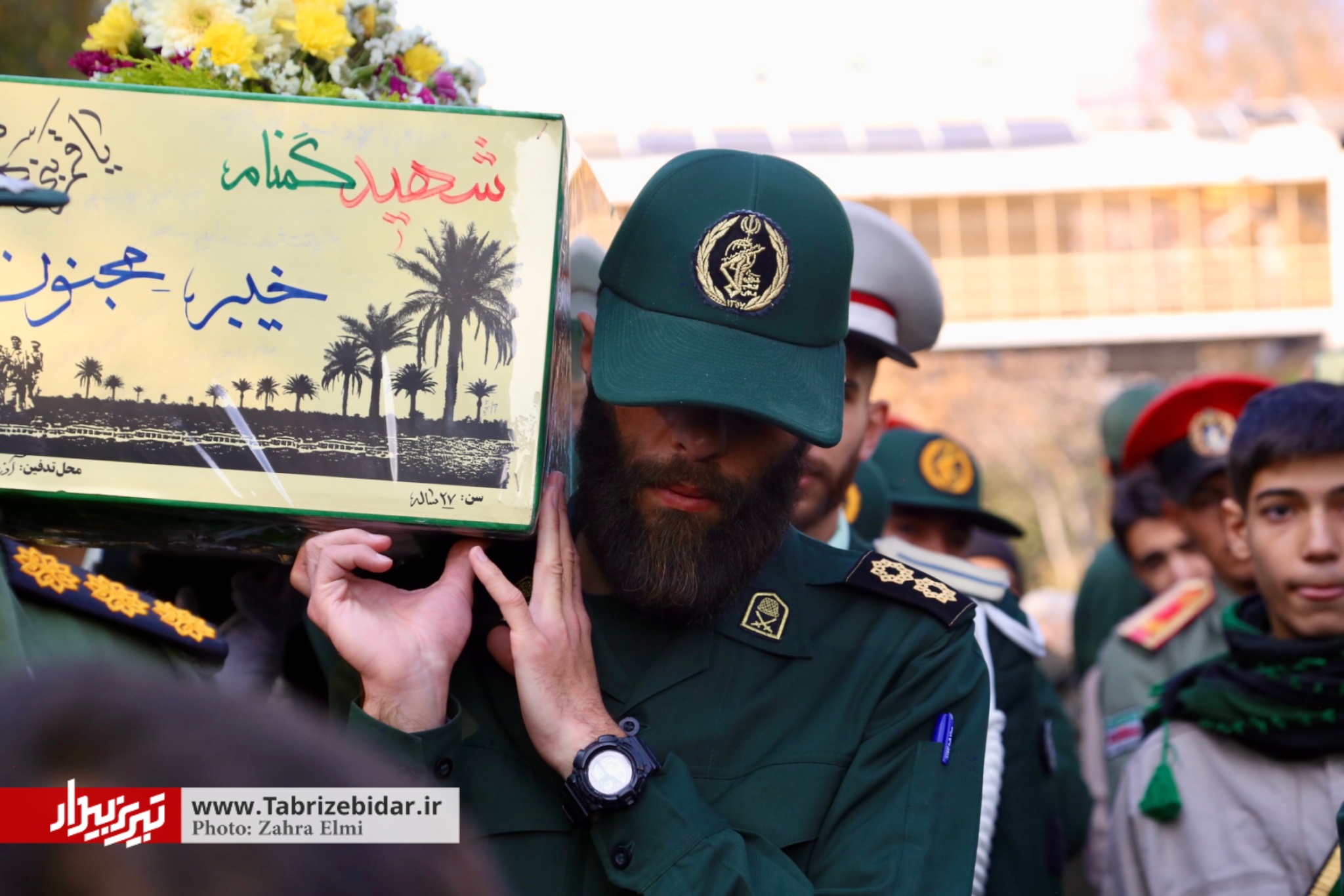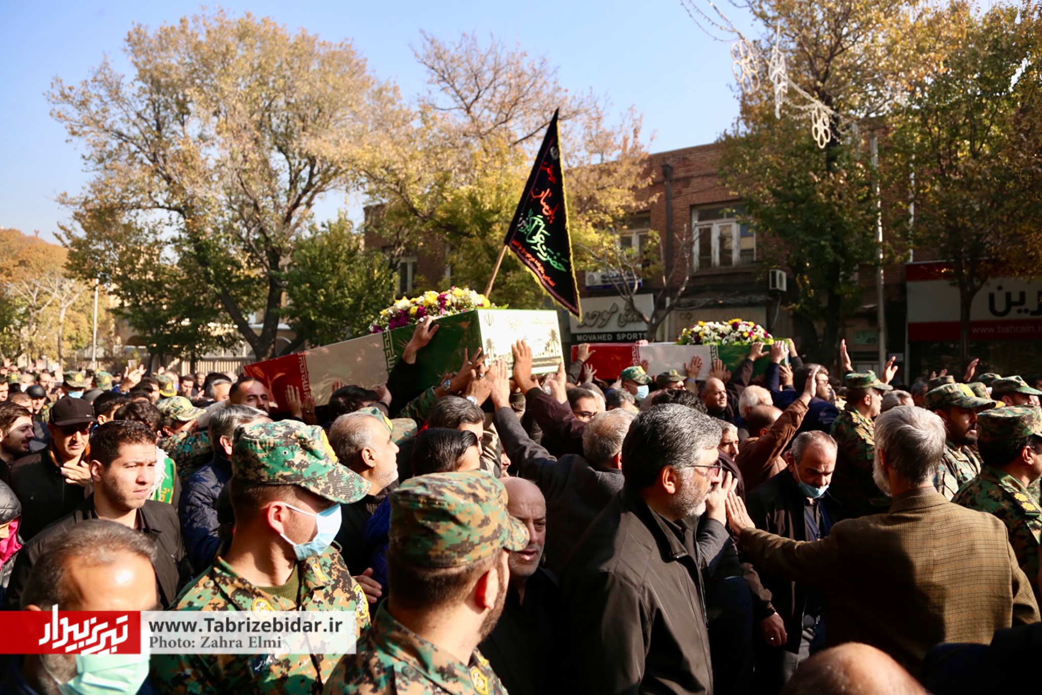 صبح امروز همزمان با سالروز شهادت حضرت فاطمه زهرا(س)، پیکرهای مطهر چهار شهید گمنام دوران دفاع مقدس بر دوش مردم تبریز از میدان شهدا تا میدان ساعت تشییع شد. (عکس: زهرا علمی – ۳ آذر ۱۴۰۴)