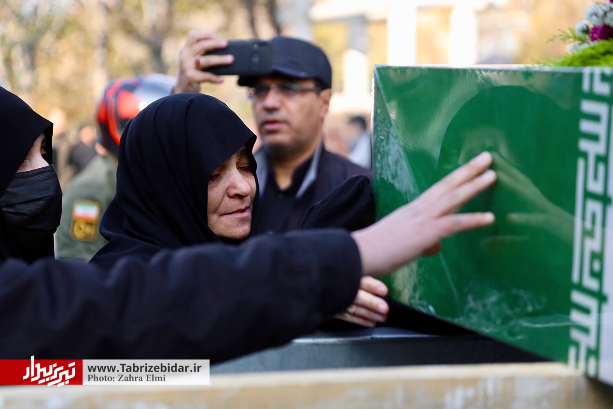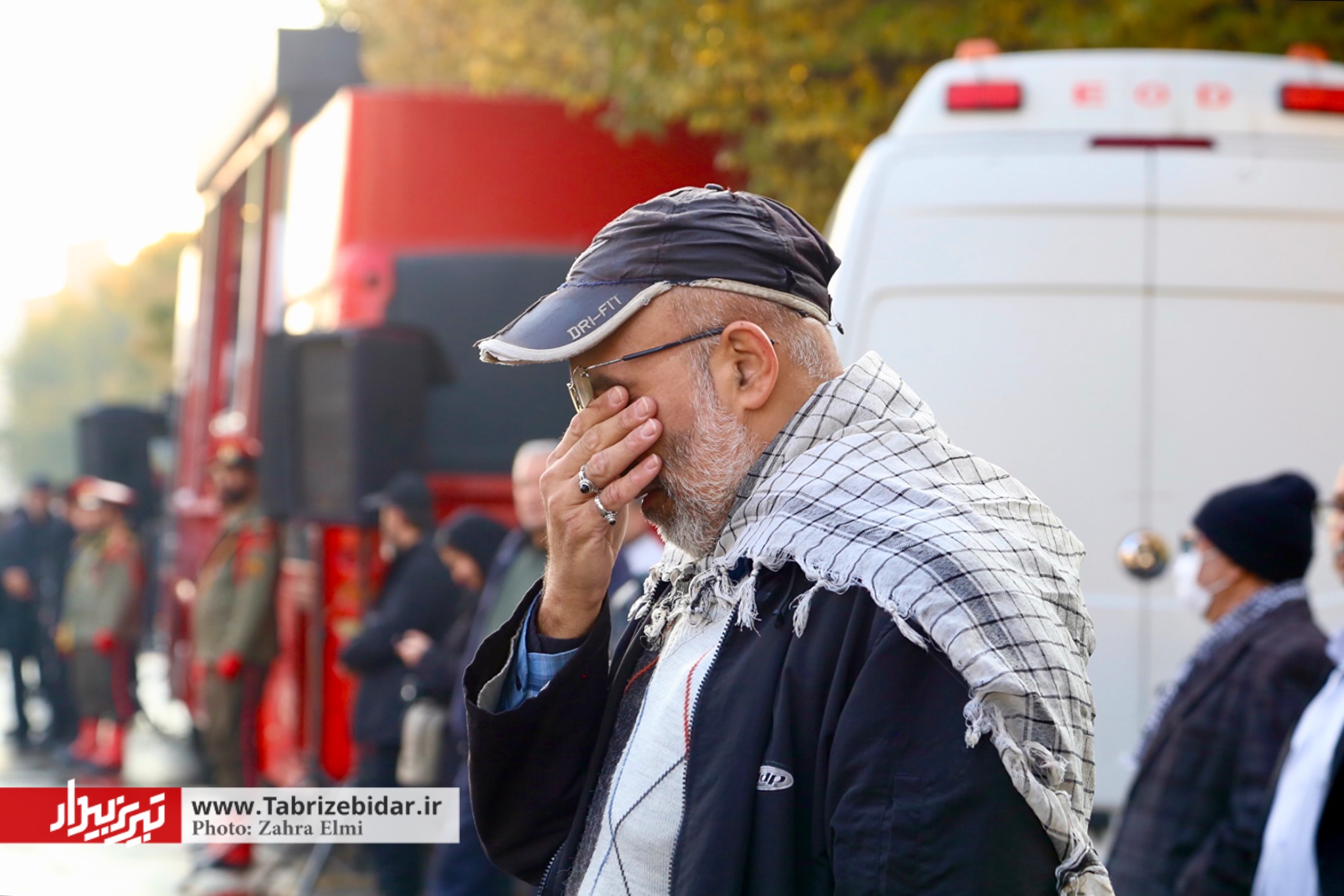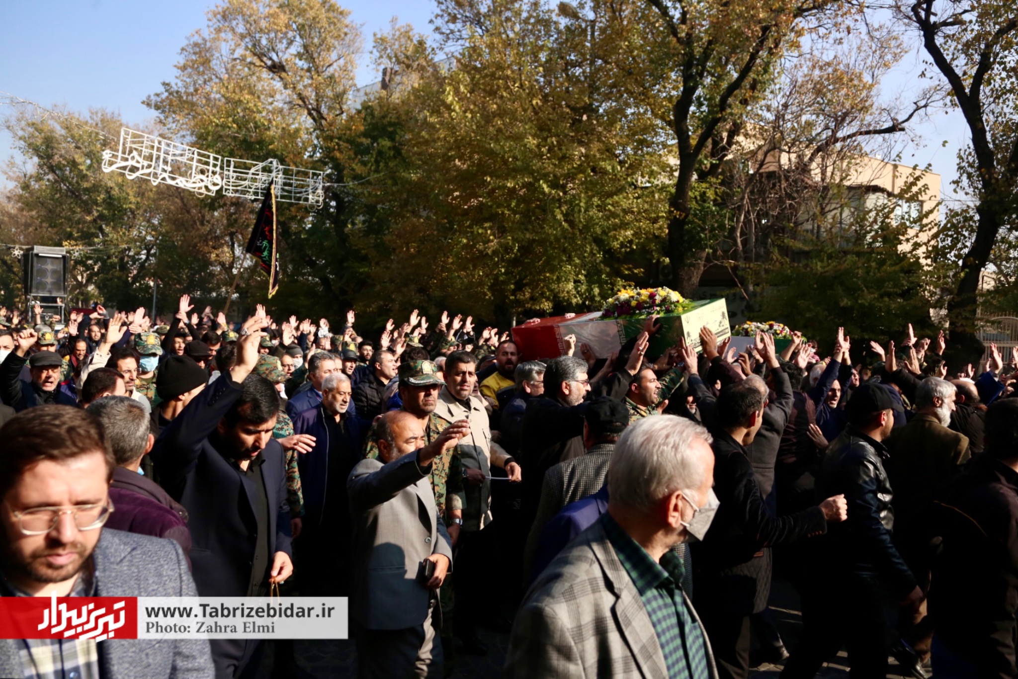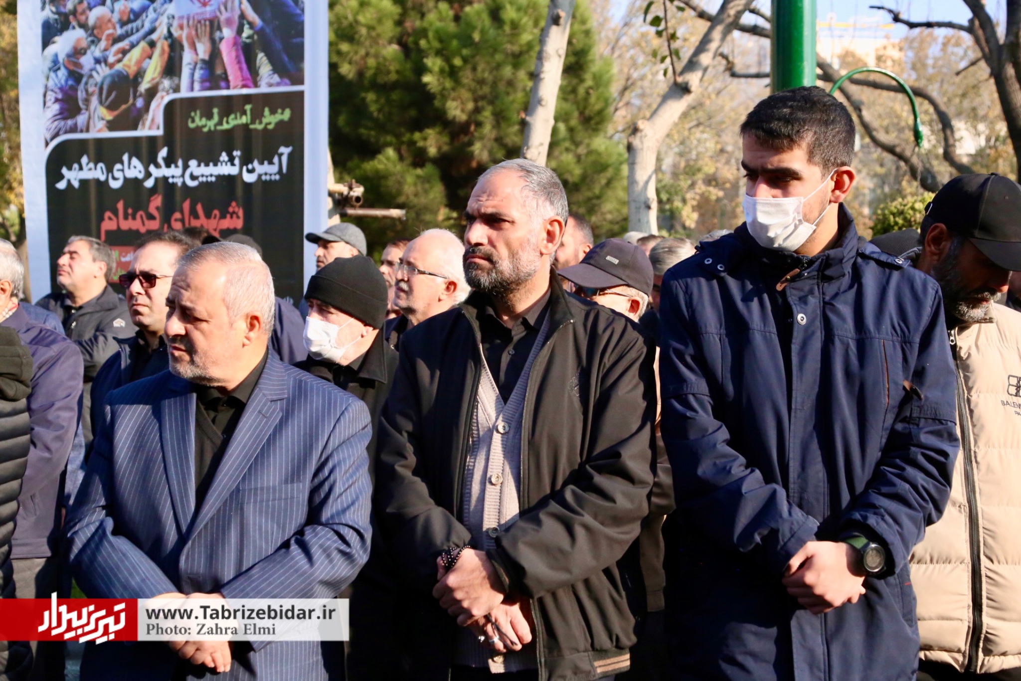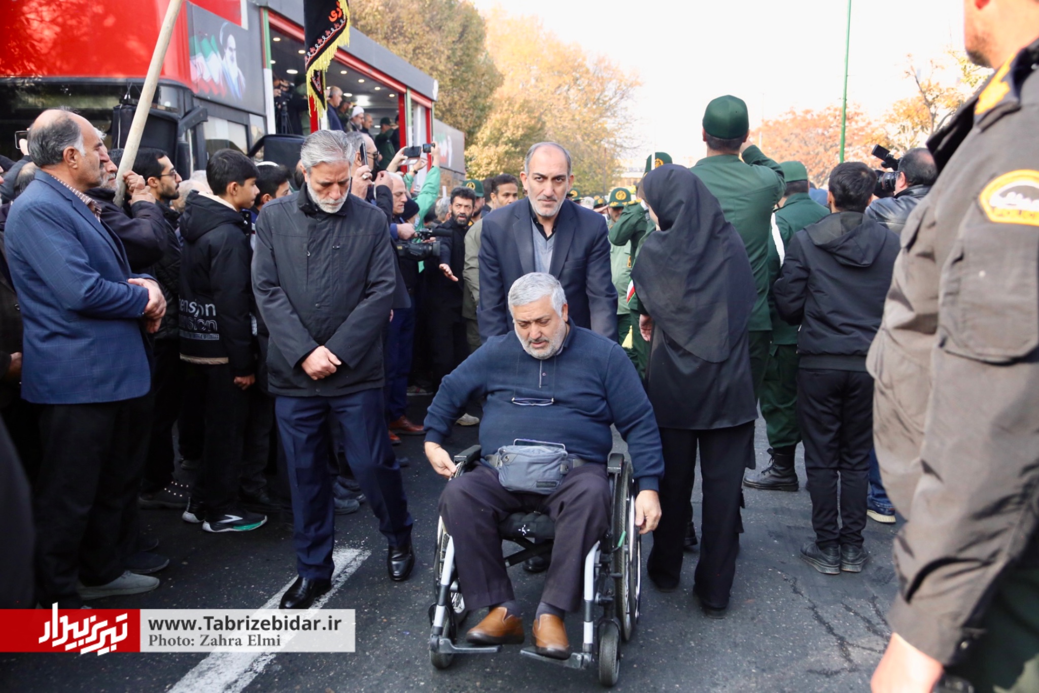 صبح امروز همزمان با سالروز شهادت حضرت فاطمه زهرا(س)، پیکرهای مطهر چهار شهید گمنام دوران دفاع مقدس بر دوش مردم تبریز از میدان شهدا تا میدان ساعت تشییع شد. (عکس: زهرا علمی – ۳ آذر ۱۴۰۴)