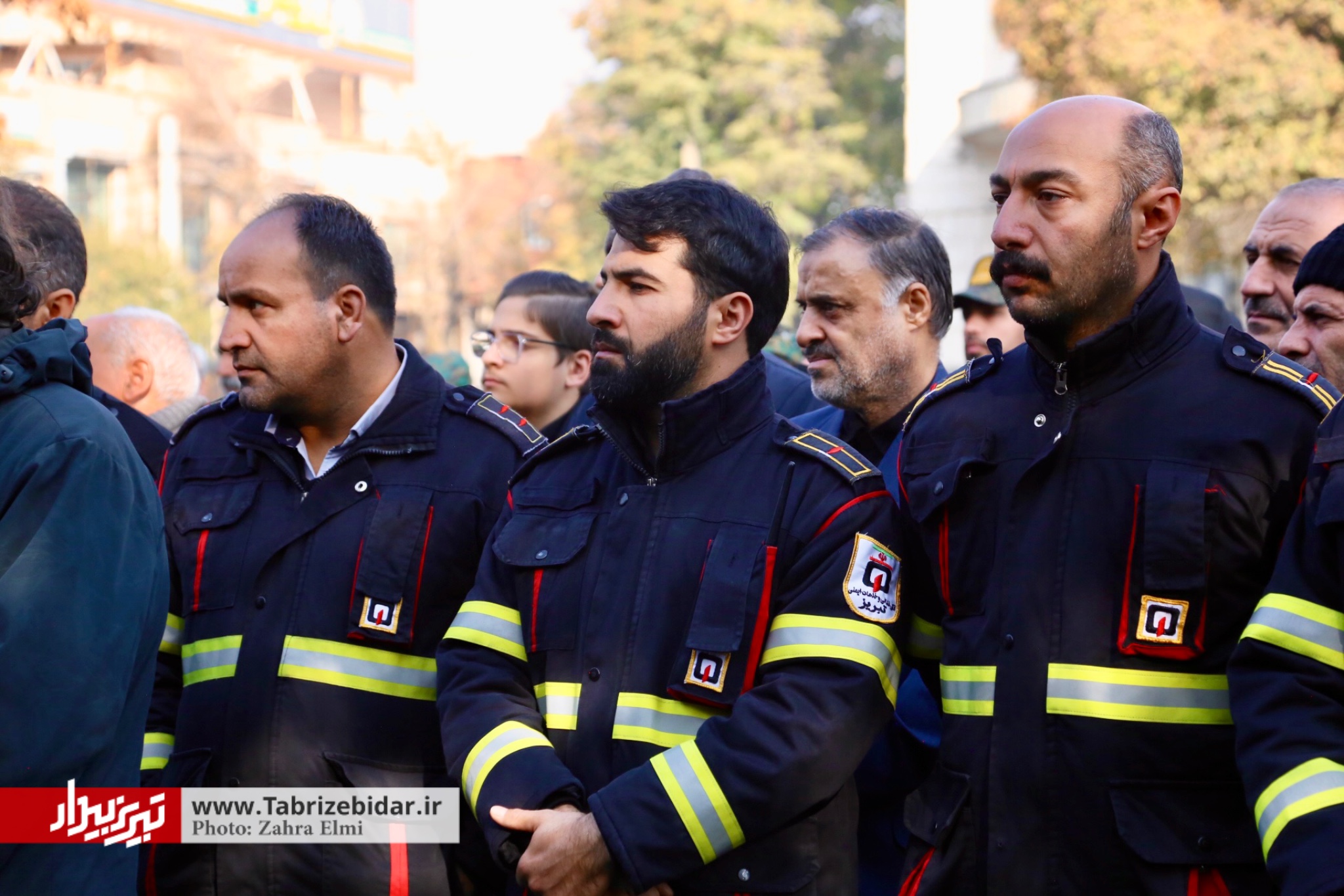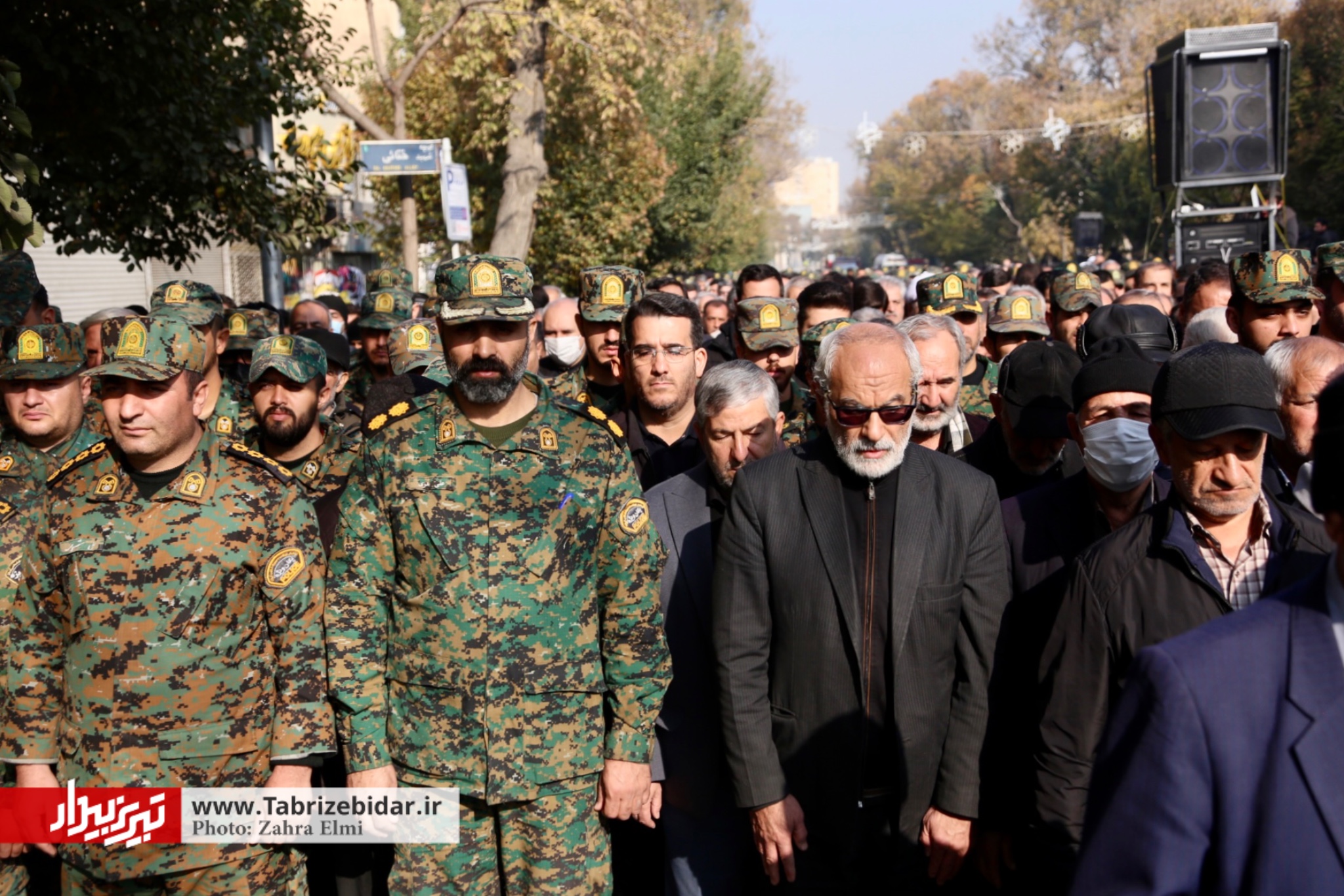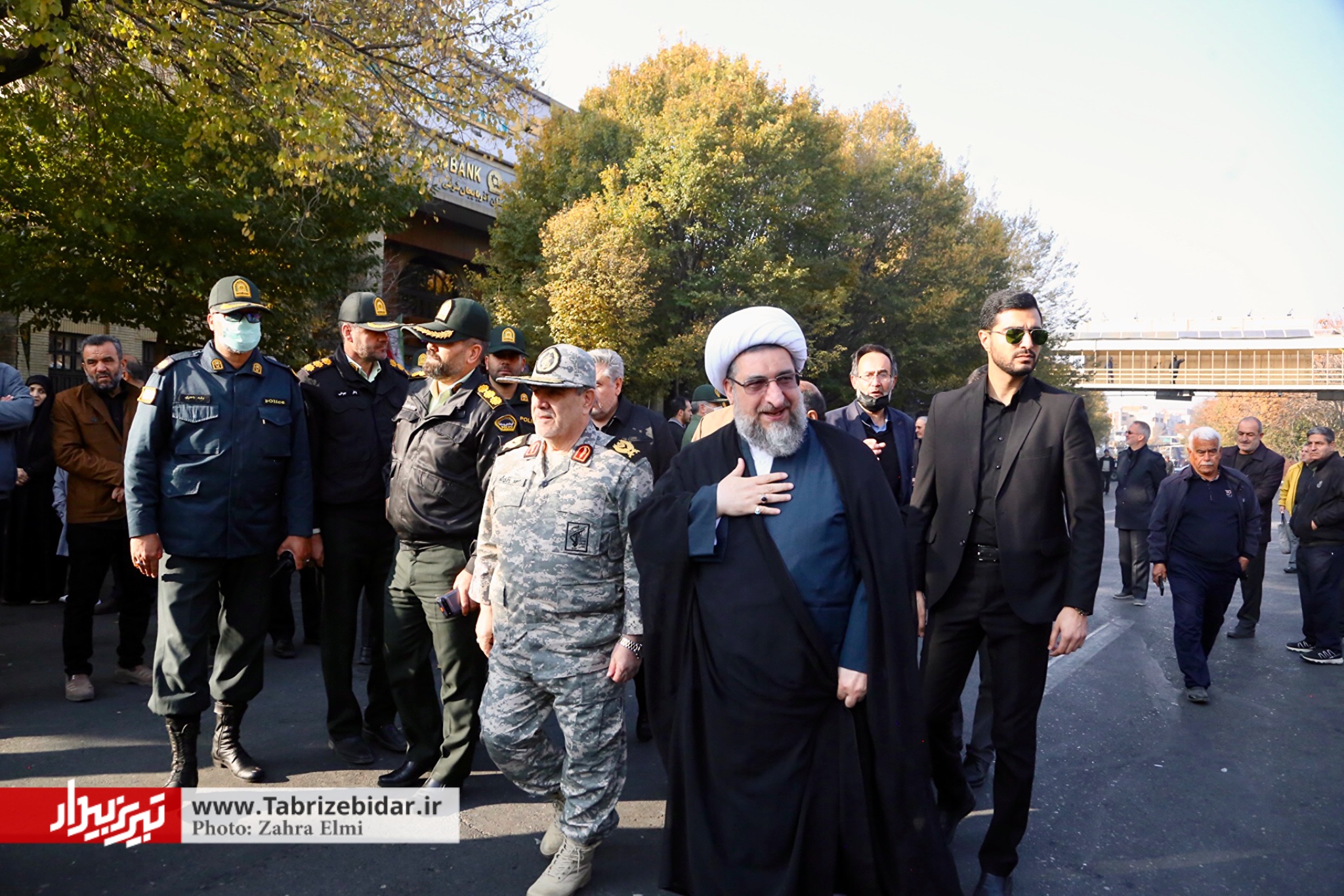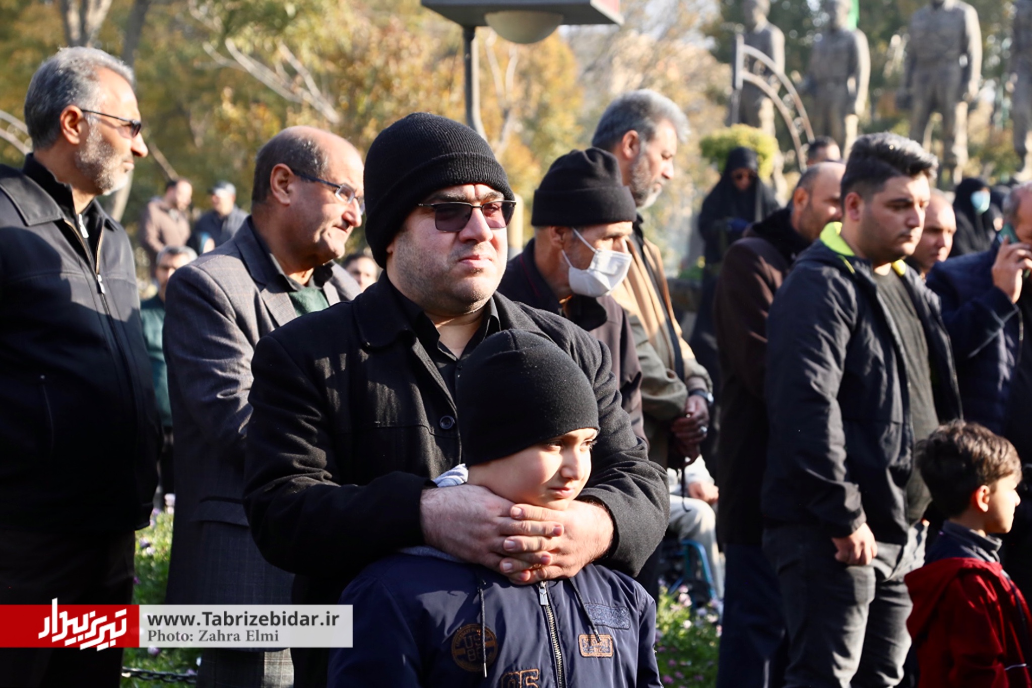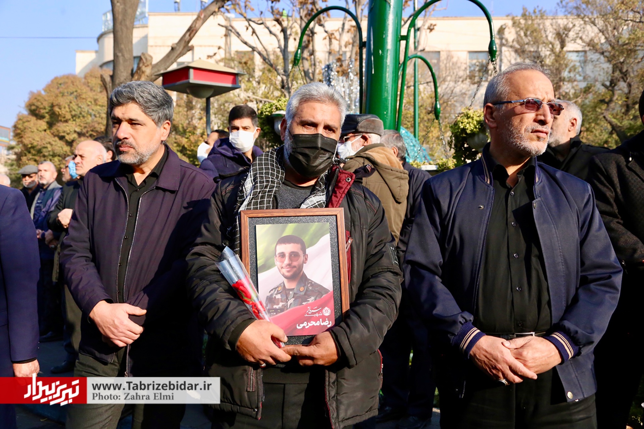 صبح امروز همزمان با سالروز شهادت حضرت فاطمه زهرا(س)، پیکرهای مطهر چهار شهید گمنام دوران دفاع مقدس بر دوش مردم تبریز از میدان شهدا تا میدان ساعت تشییع شد. (عکس: زهرا علمی – ۳ آذر ۱۴۰۴)