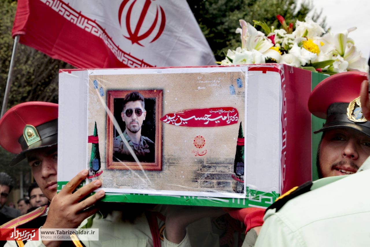 مراسم تشییع شهید مدافع امنیت، امیر حسین پور صبح امروز با حضور مسئولان و مردم در میدان شهدا برگزار شد.