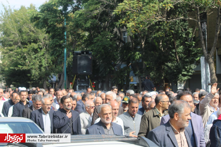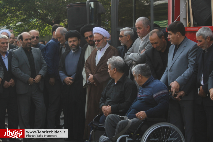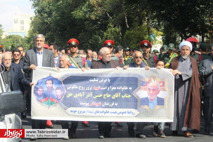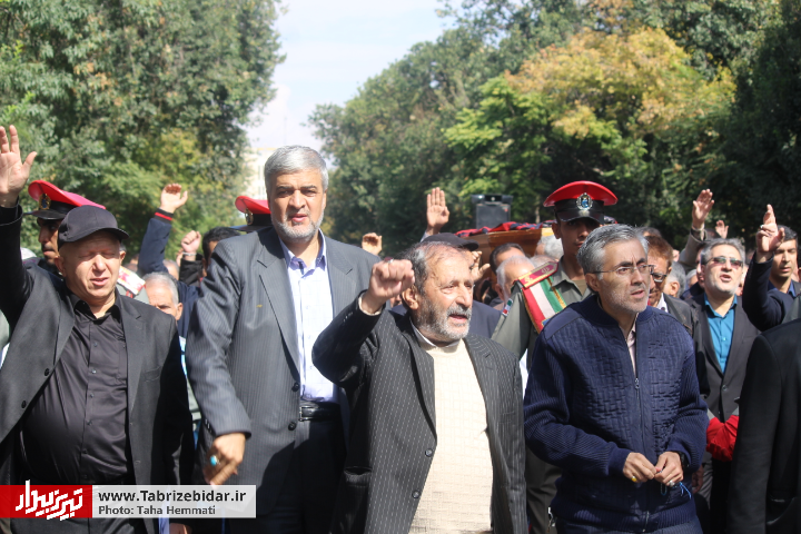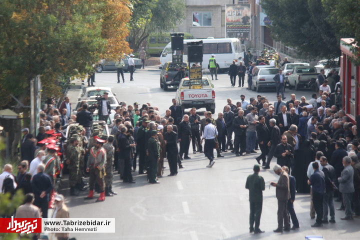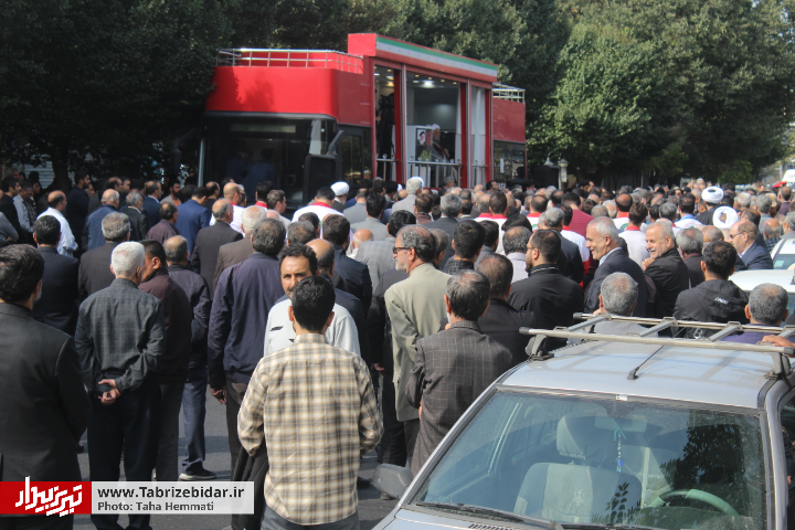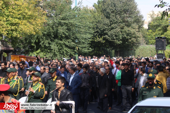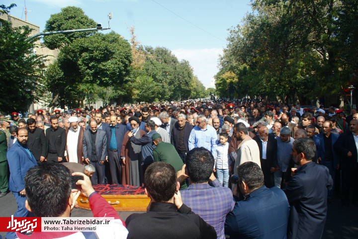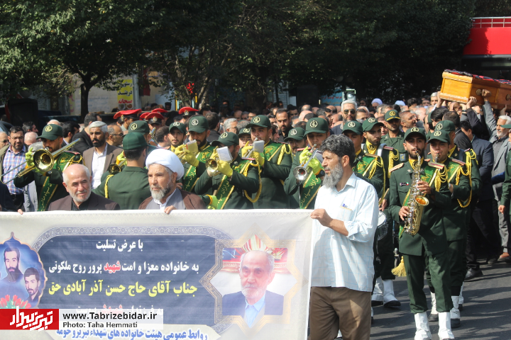 صبح امروز پیکر زنده یاد حاج حسن آذرآبادی حق پدر شهیدان یعقوب، رضا و محمد آذرآبادی بر دوش مردم تبریز از میدان شهدا تا میدان ساعت تشییع شد.
