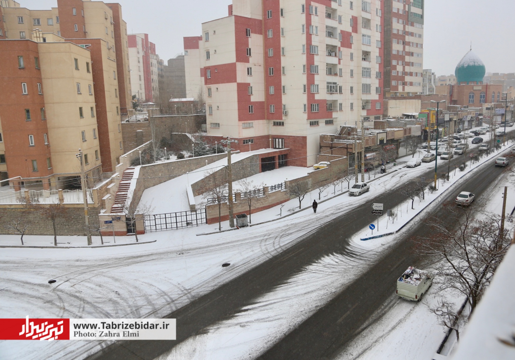 بارش برف زمستانی در تبریز و سفید پوش شدن معابر، طراوت و نشاط خاصی را به شهر بخشید. (عکس: زهرا علمی- ۳ بهمن ۱۴۰۴)