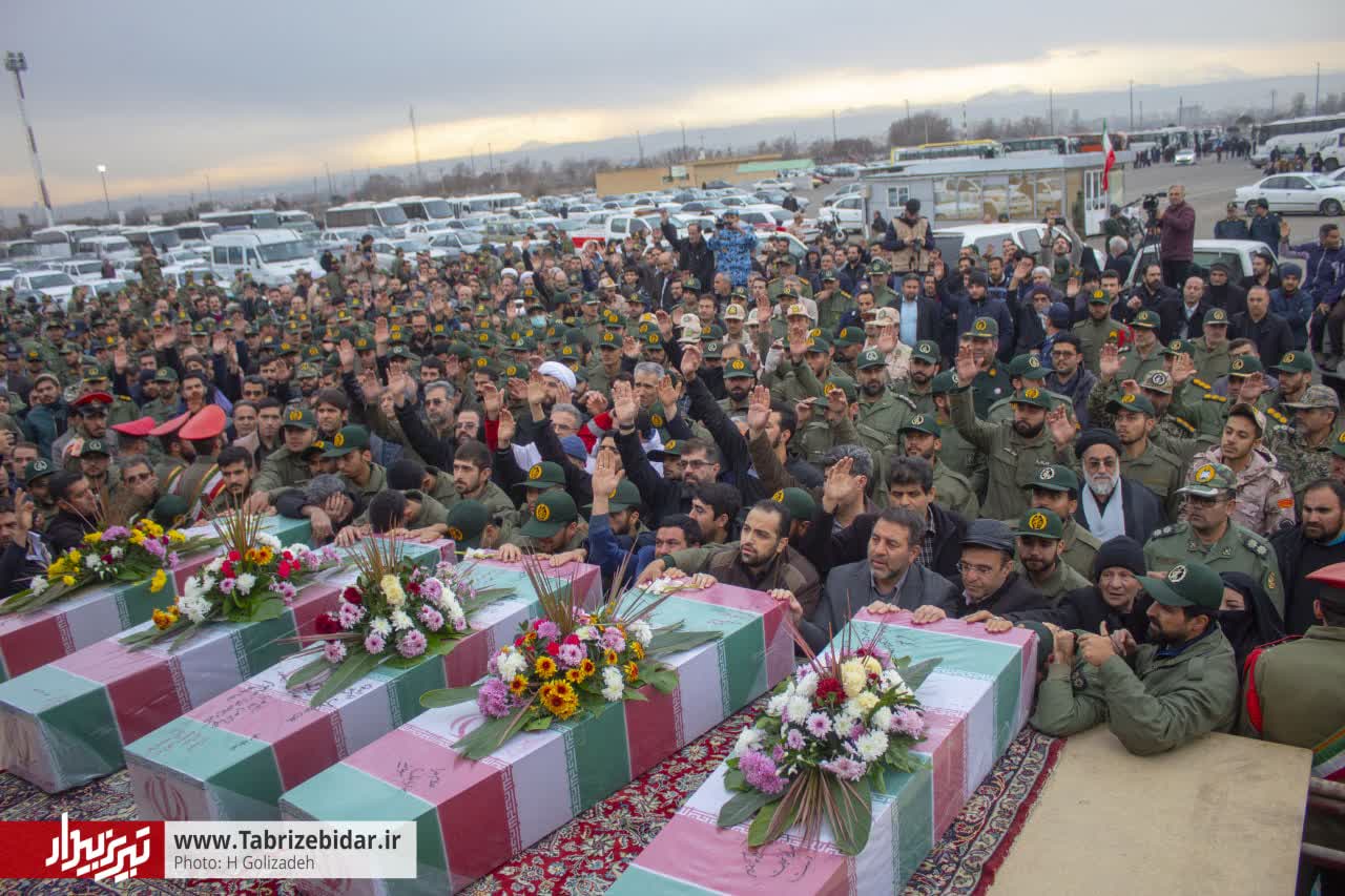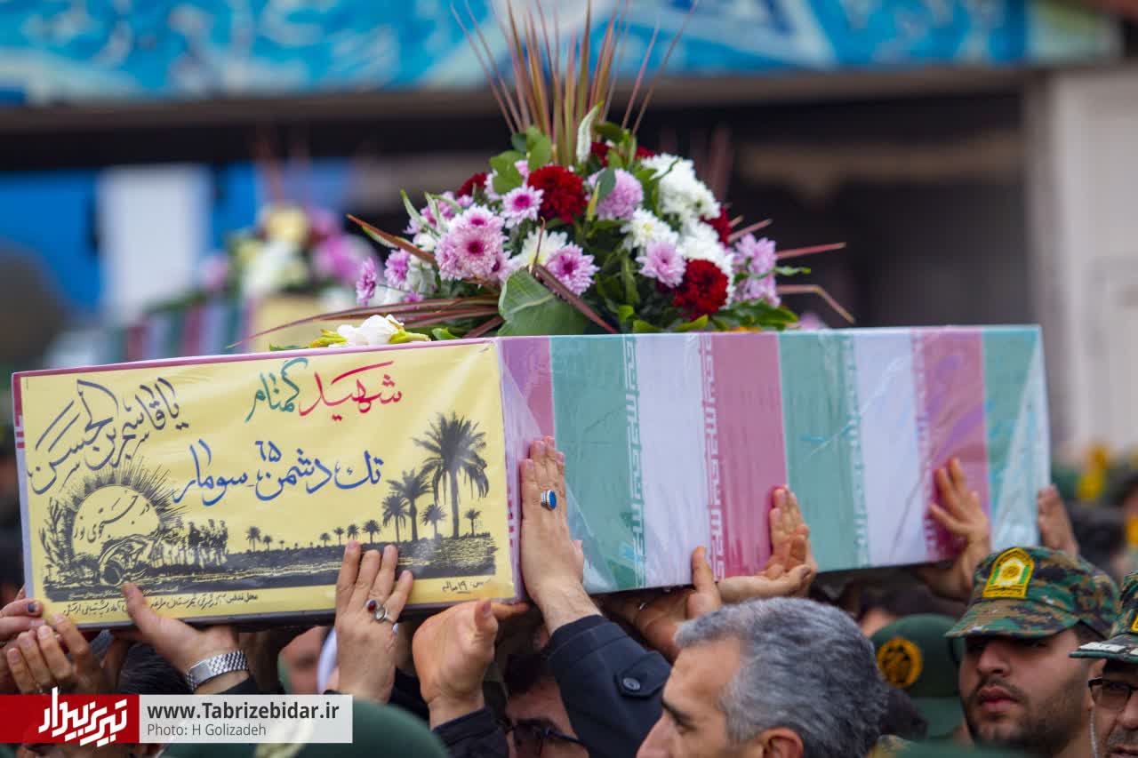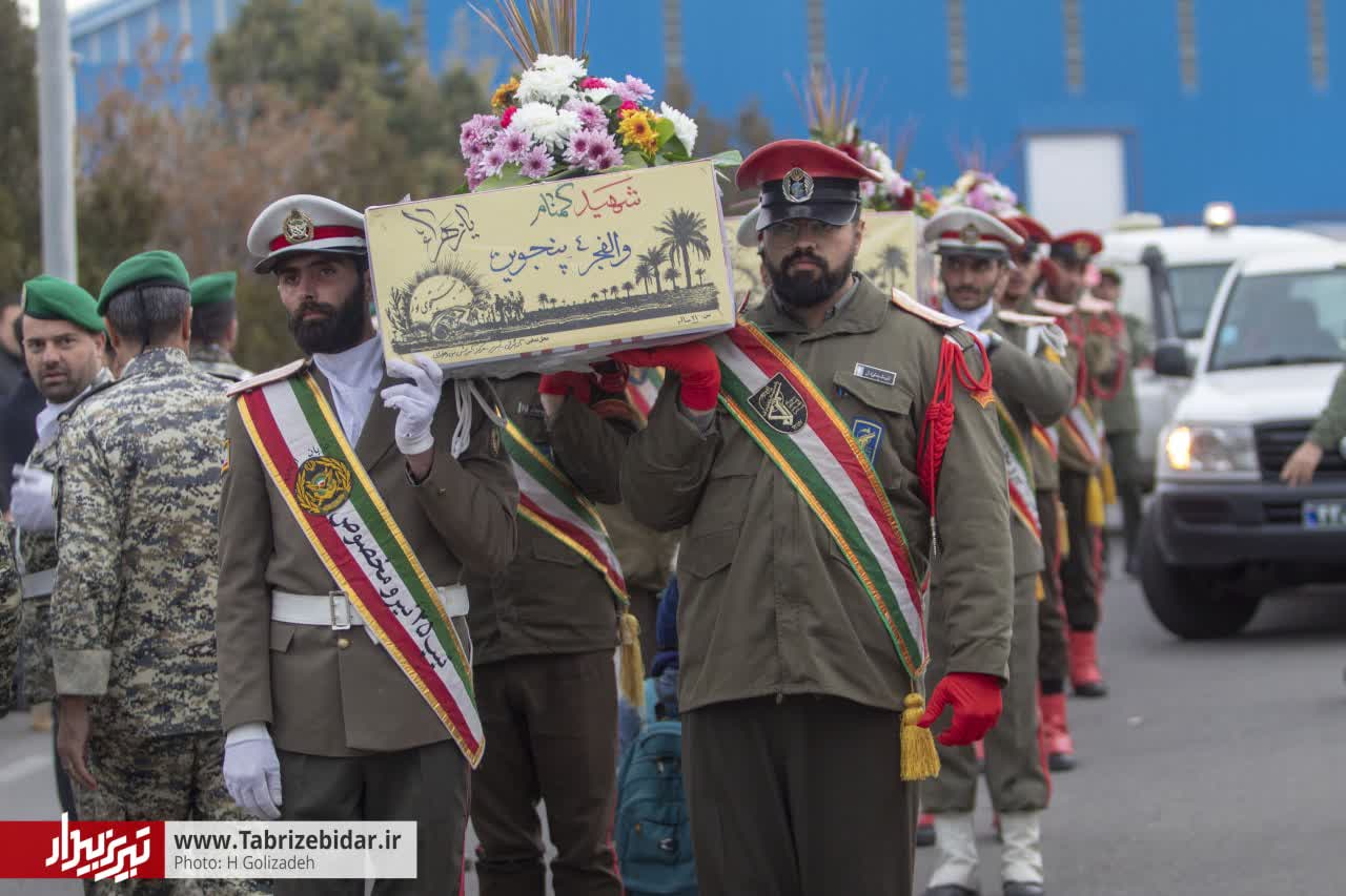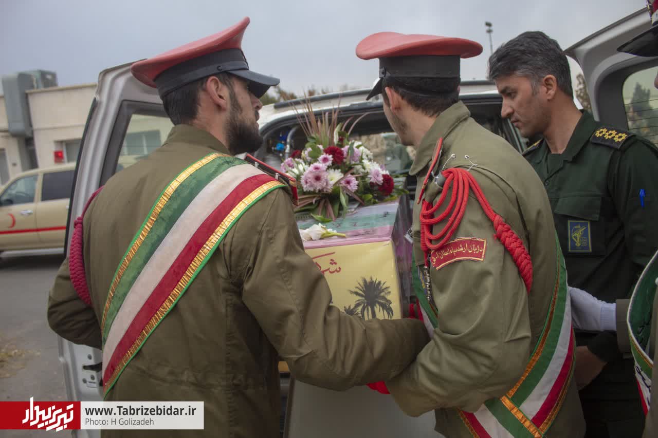 تبریز به عطر شهدا معطر شد پیکرهای مطهر ۵ شهید گمنام هشت سال دفاع مقدس صبح امروز از محل فرودگاه شهید مدنی وارد تبریز شدند.