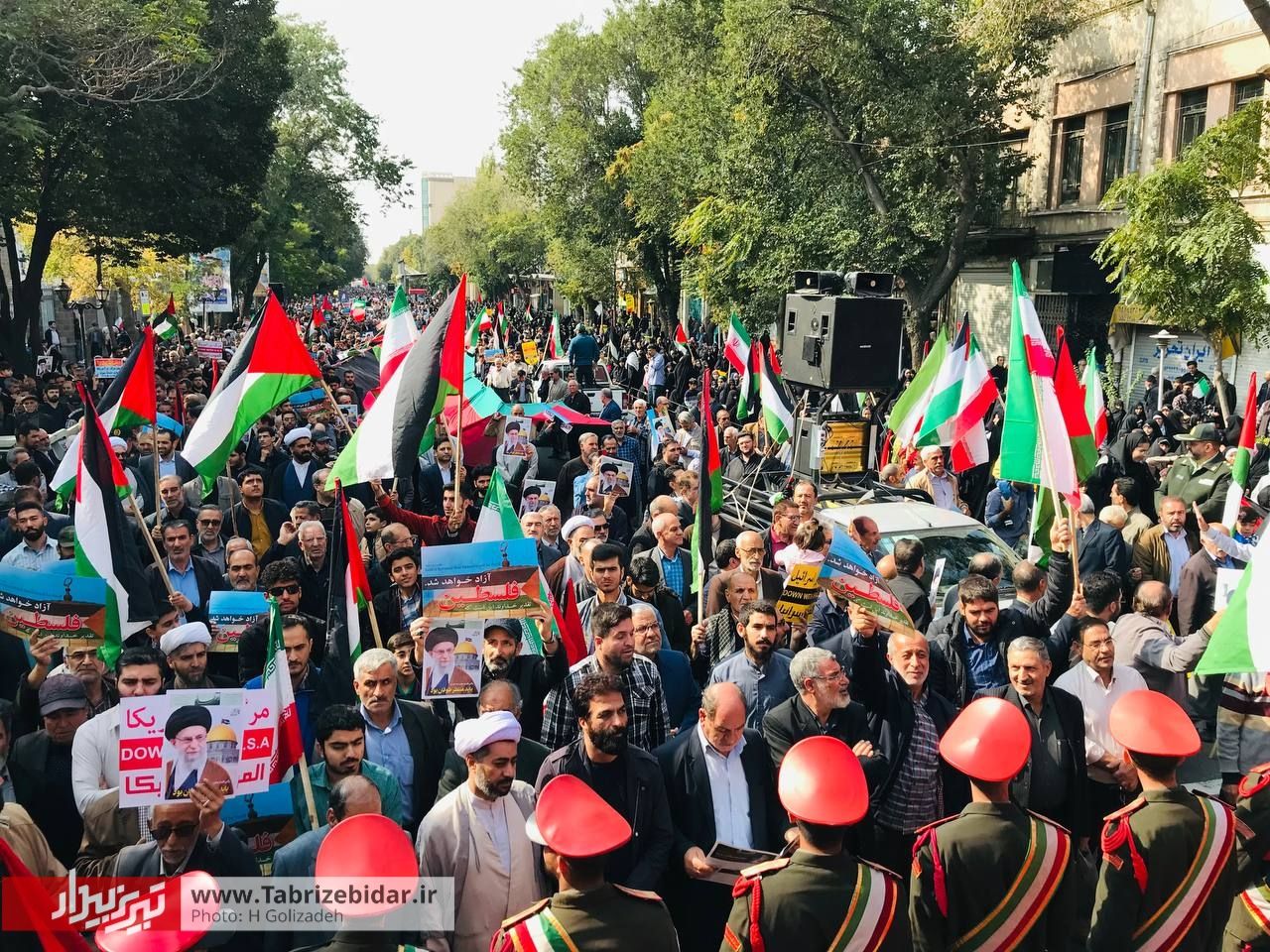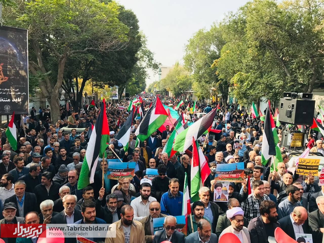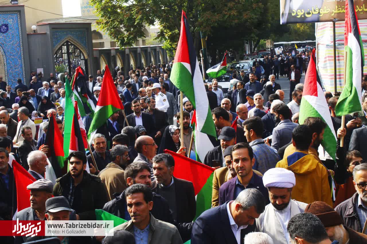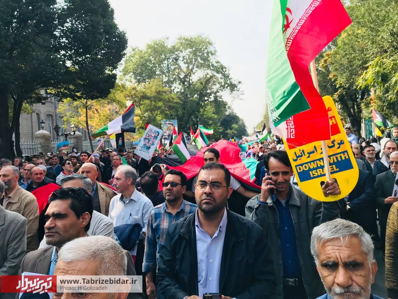 نمازگزاران جمعه تبریز با حضور در راهپیمایی، جنایات رژیم موقت صهیونیستی در سرزمین‌های اشغالی را محکوم کردند.
