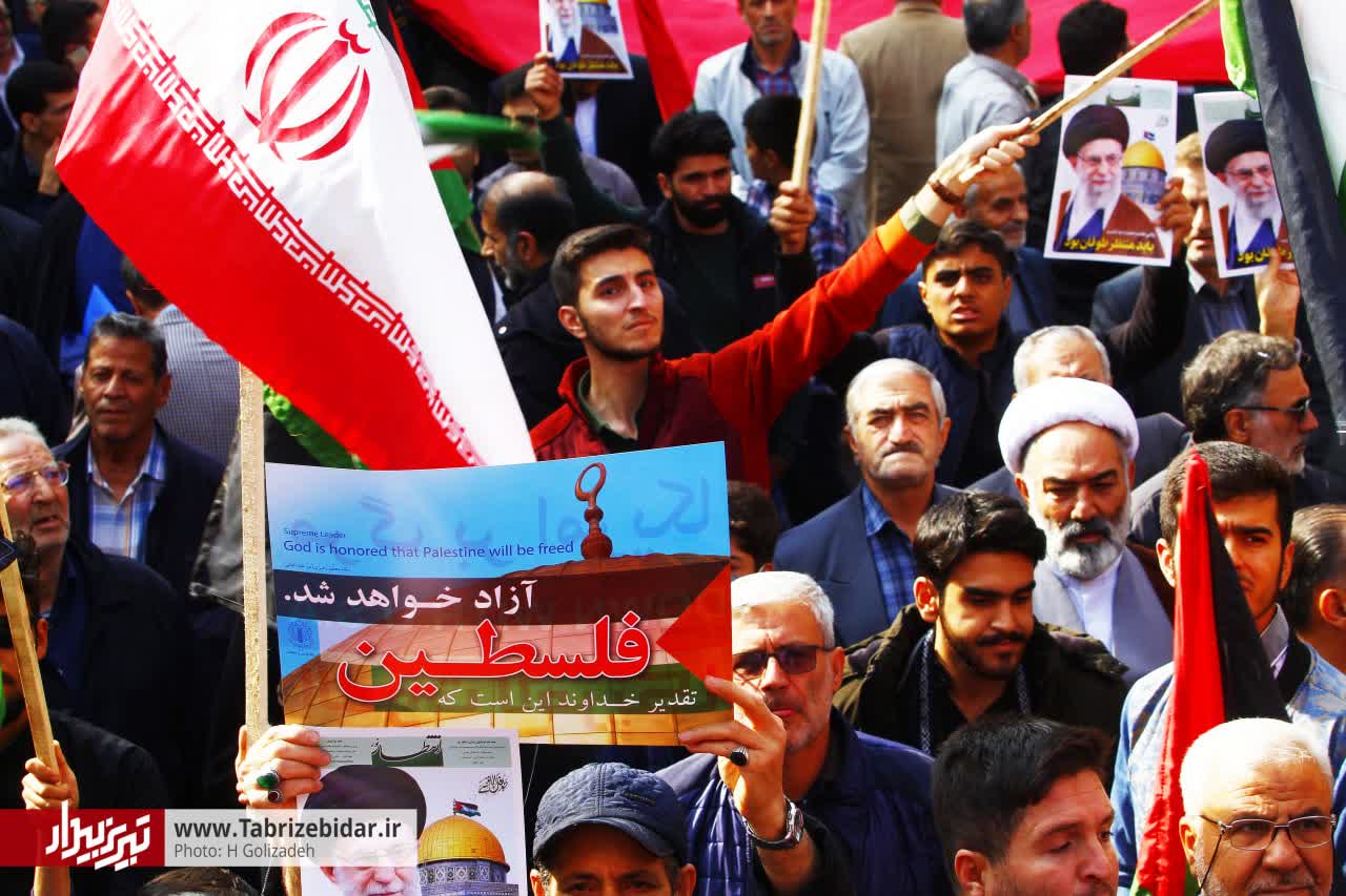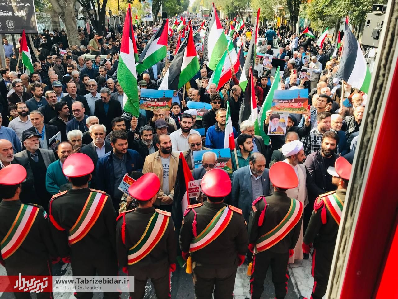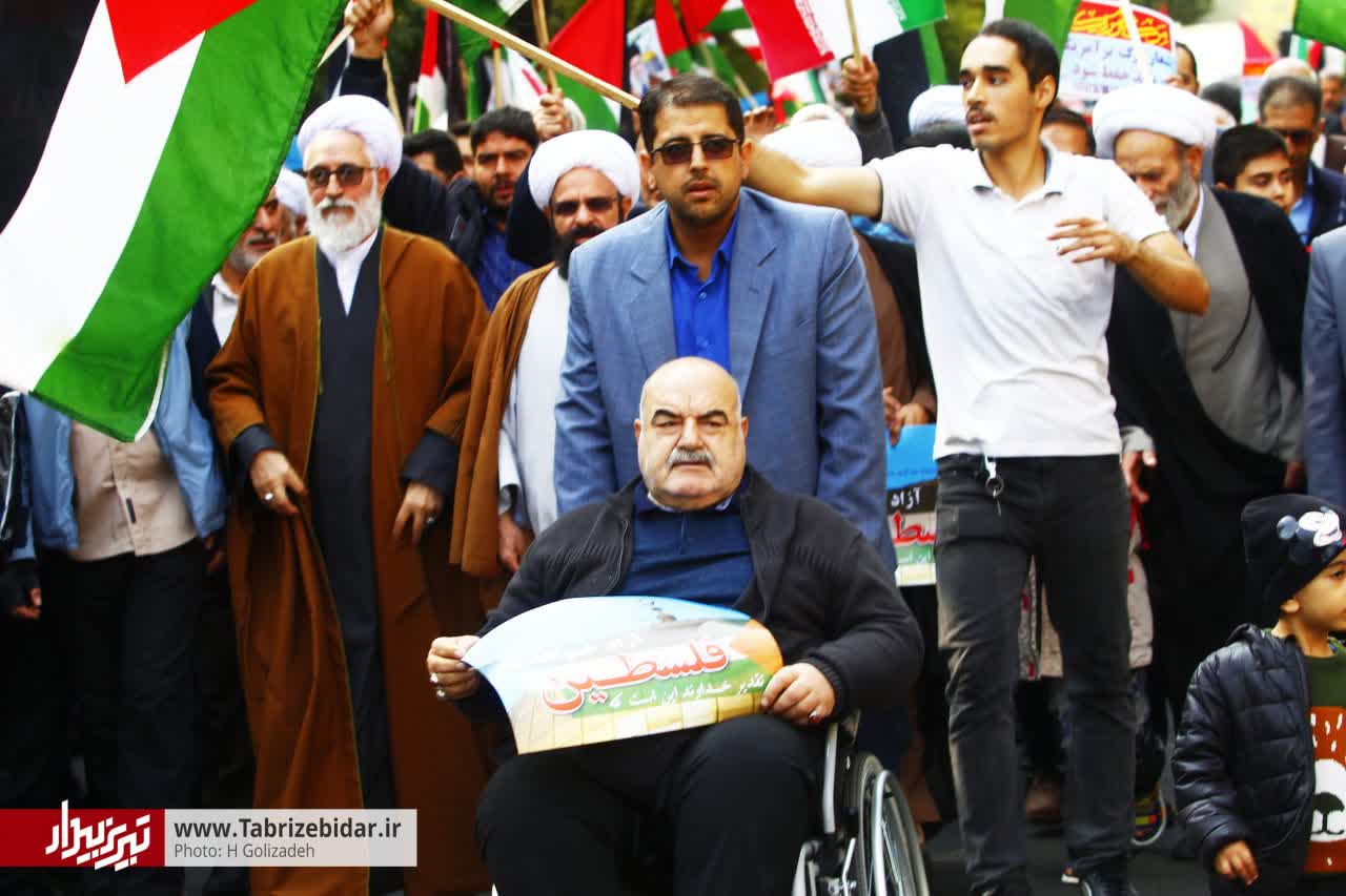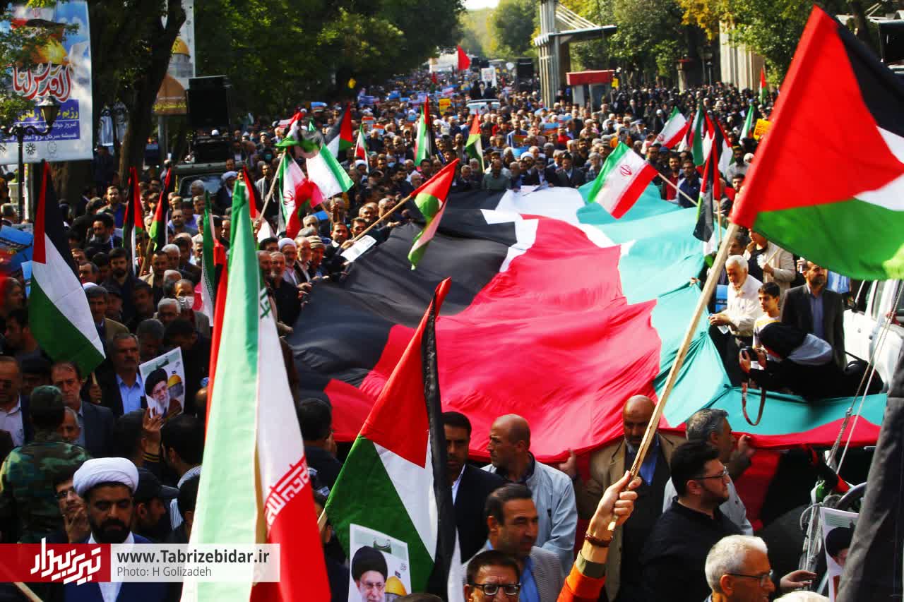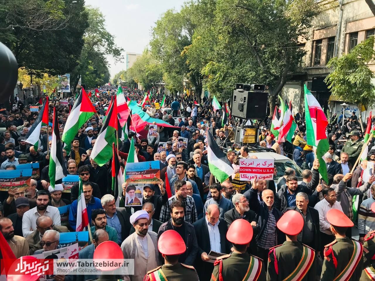 نمازگزاران جمعه تبریز با حضور در راهپیمایی، جنایات رژیم موقت صهیونیستی در سرزمین‌های اشغالی را محکوم کردند.