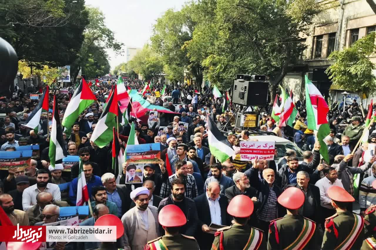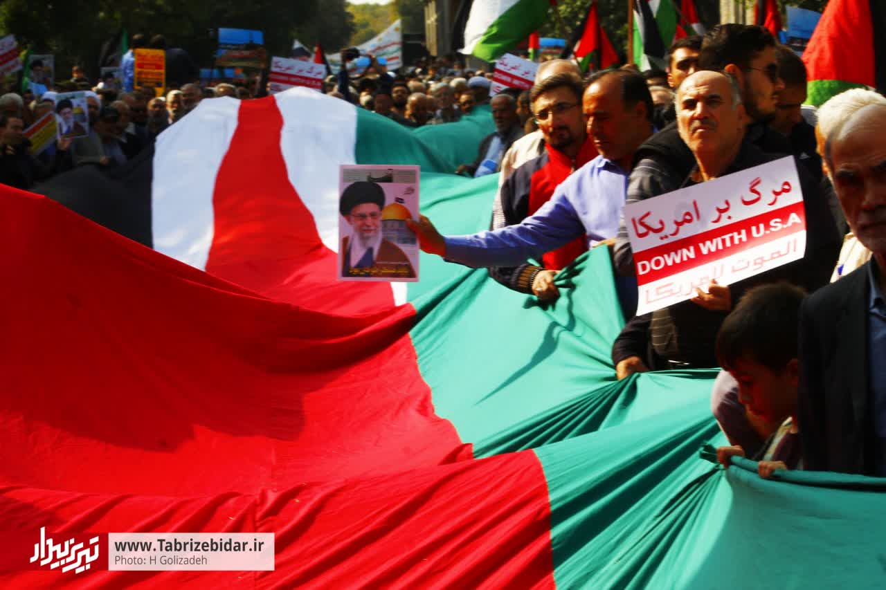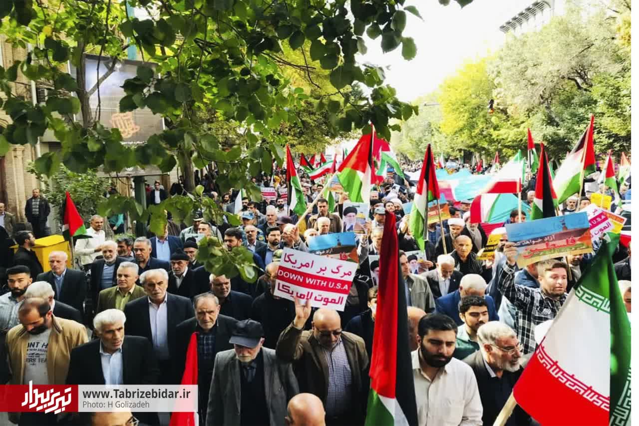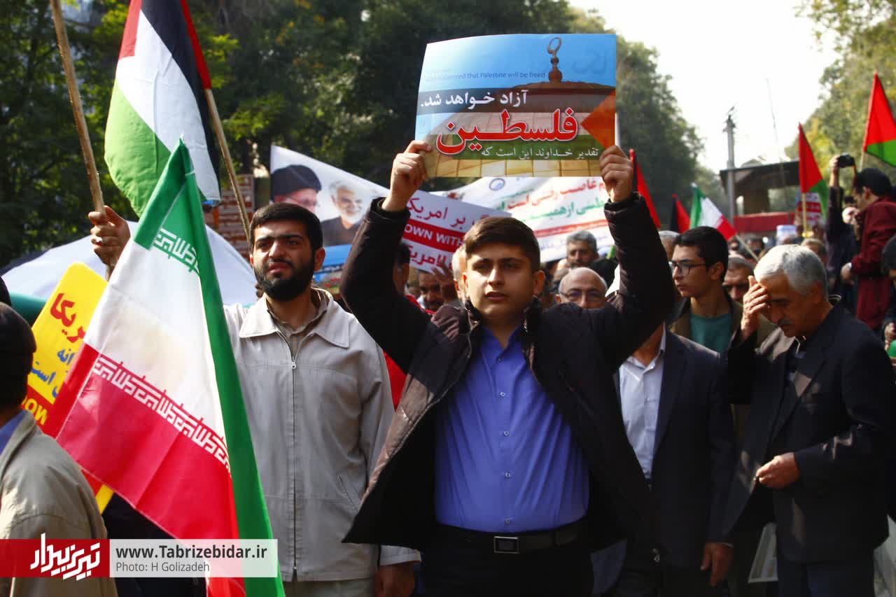 نمازگزاران جمعه تبریز با حضور در راهپیمایی، جنایات رژیم موقت صهیونیستی در سرزمین‌های اشغالی را محکوم کردند.