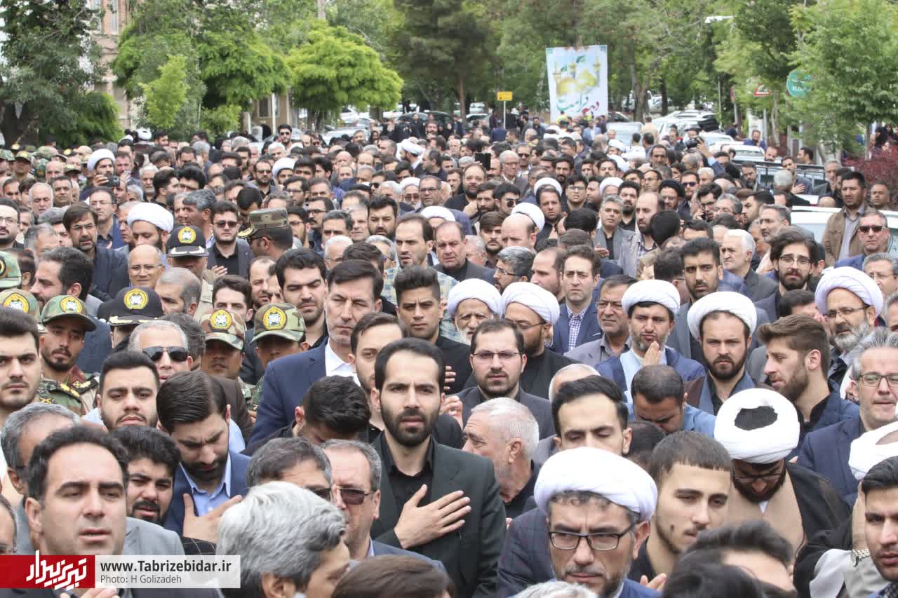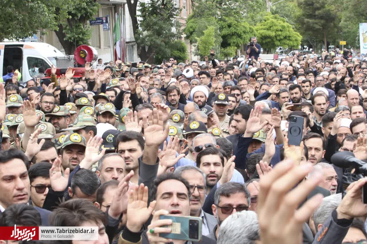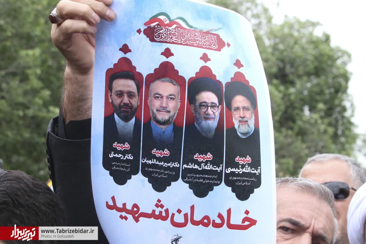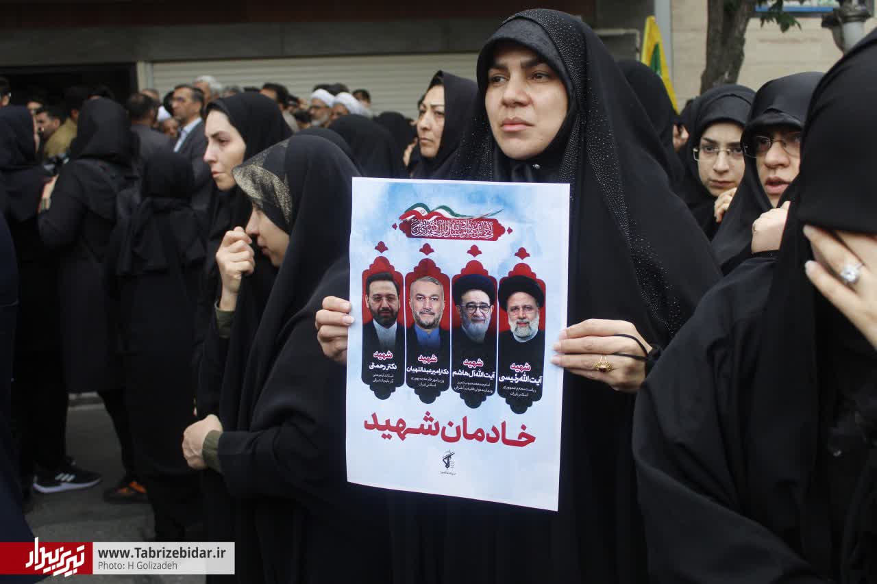 مردم تبریز در سوگ خادمان شهید آیت الله رئیسی، آیت الله آل هاشم، دکتر امیر عبدالهیان و دکتر رحمتی مقابل بیت امام جمعه تبریز تجمع کرده و عزاداری کردند.