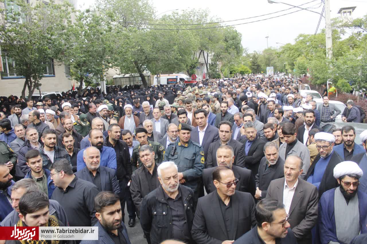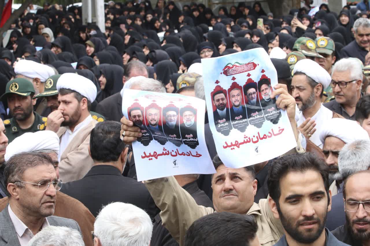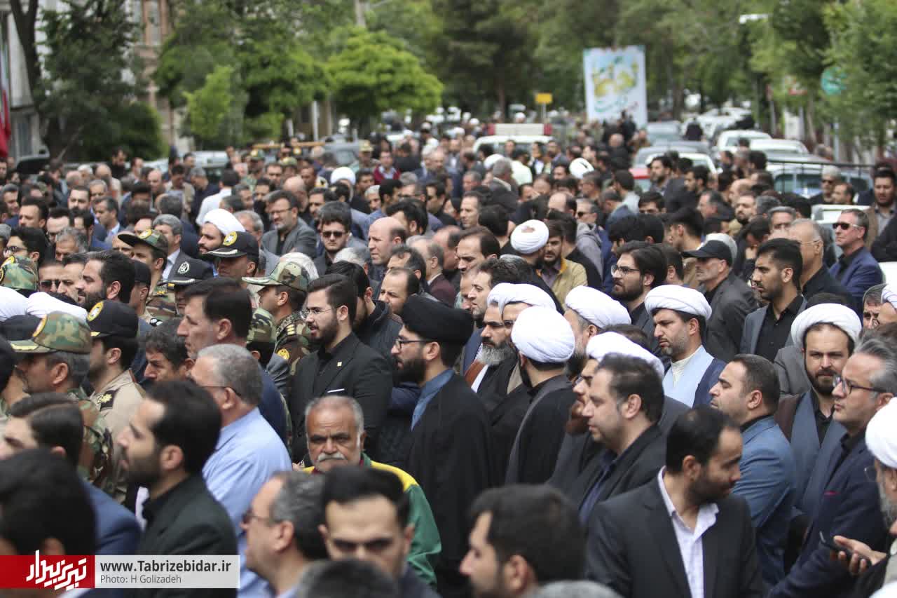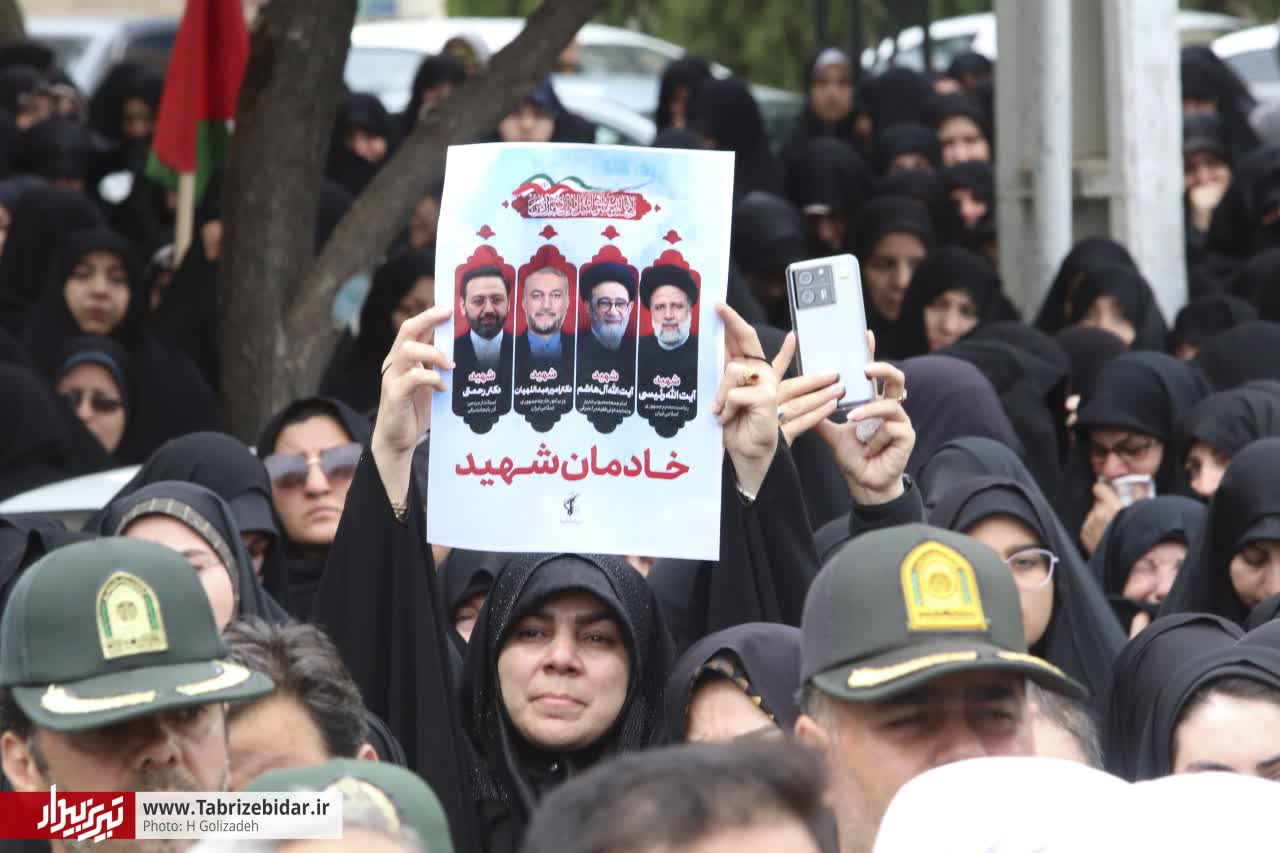 مردم تبریز در سوگ خادمان شهید آیت الله رئیسی، آیت الله آل هاشم، دکتر امیر عبدالهیان و دکتر رحمتی مقابل بیت امام جمعه تبریز تجمع کرده و عزاداری کردند.