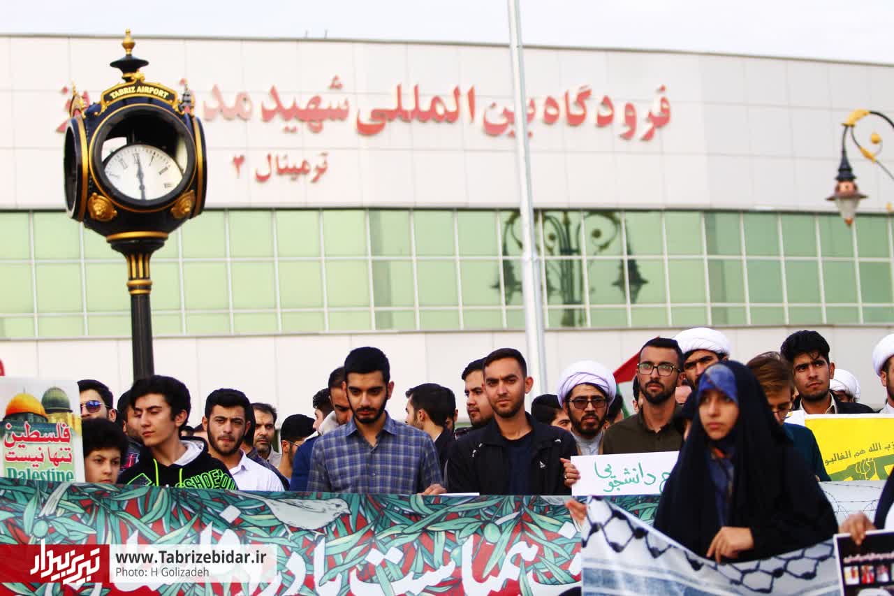 دانشجویان، طلاب و دانشآموزان عصر امروز در لبیکگویی به مردم فلسطین برای حمایت از غزه در برابر جنایات رژیم موقت صهیونیستی در فرودگاه شهید مدنی تبریز تجمع کردند.