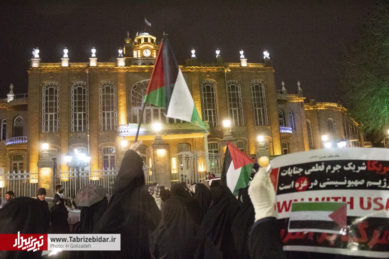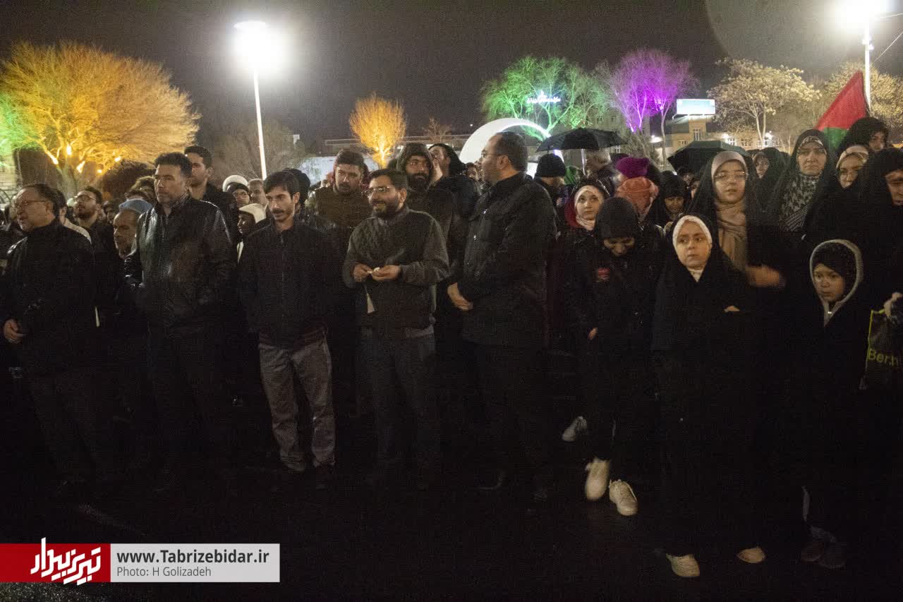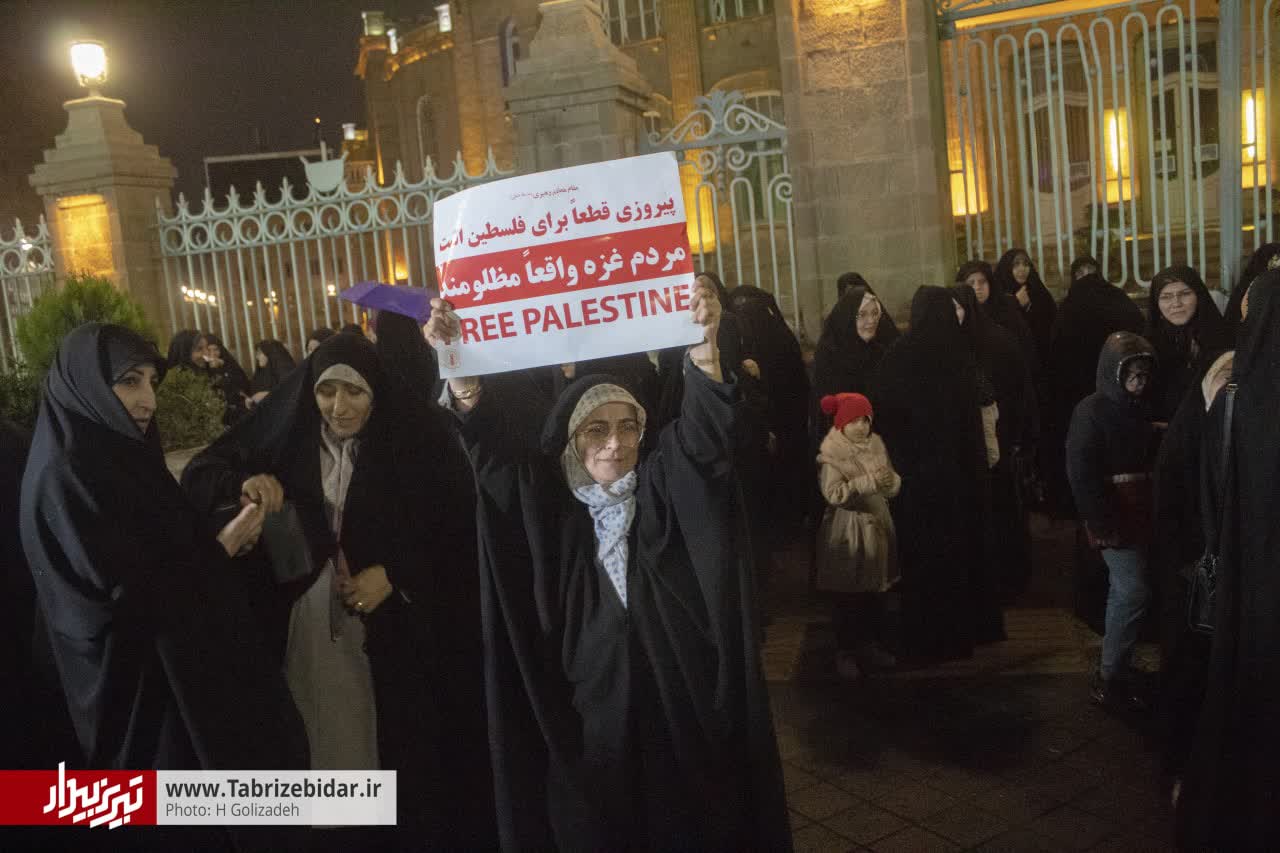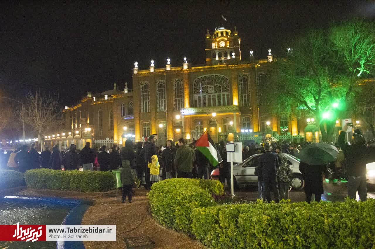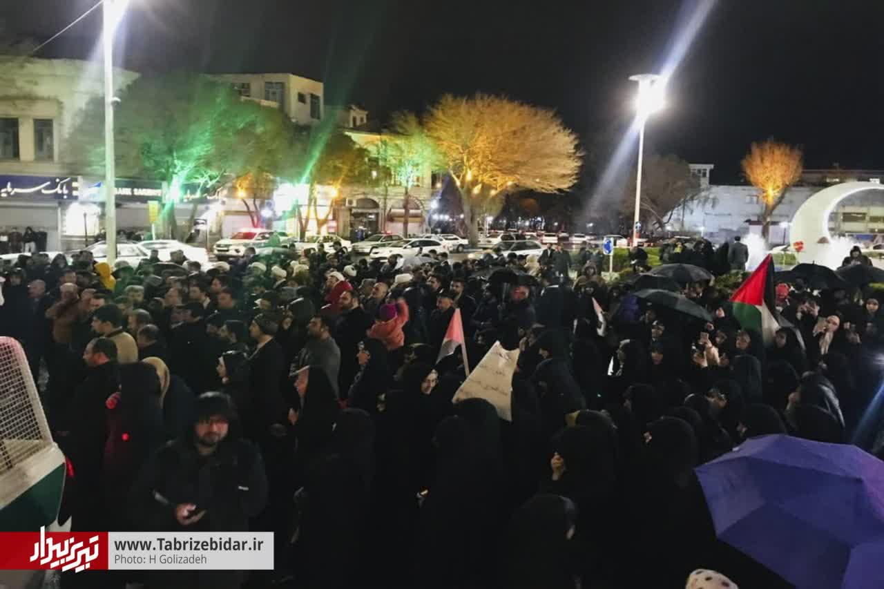 تجمع مردمی در محکومیت فاجعه بیمارستان شفا غزه و ادامه نسل‌کشی رژیم صهیونیستی در میدان ساعت برگزار شد.