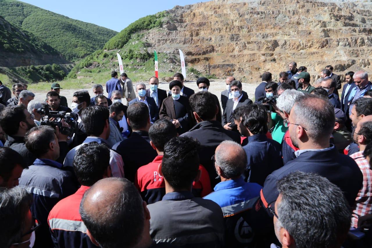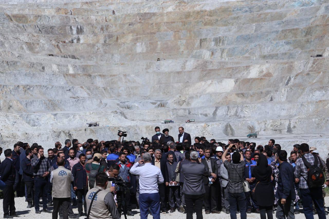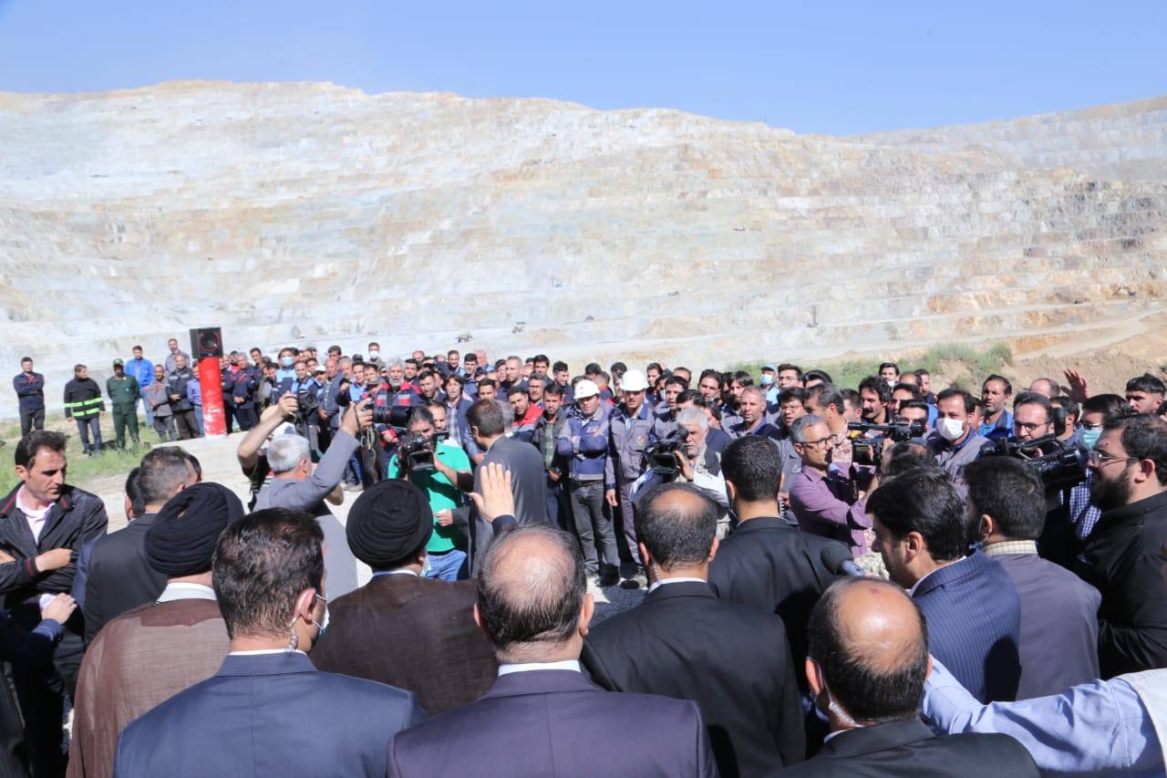 حضور رئیسی در جمع کارگران معدن مس سونگون