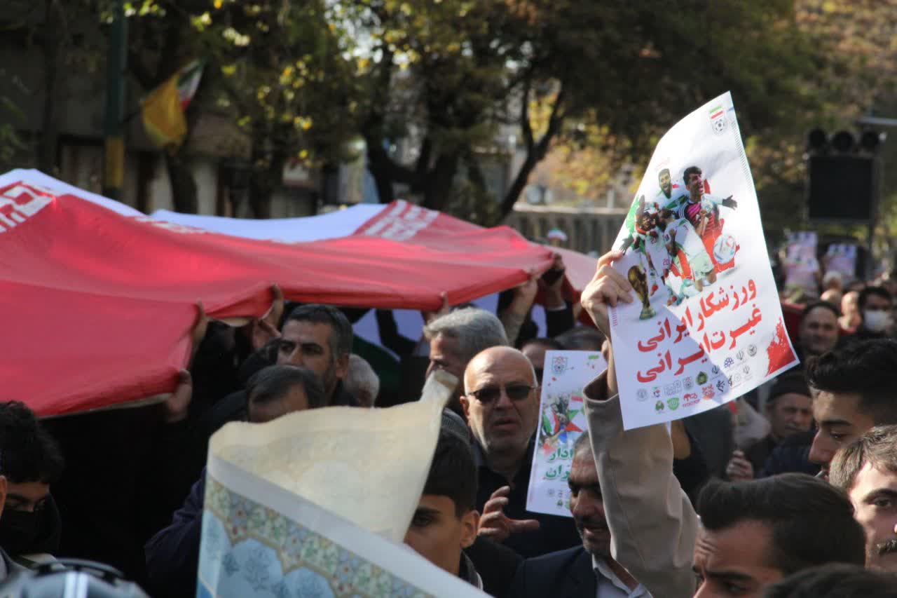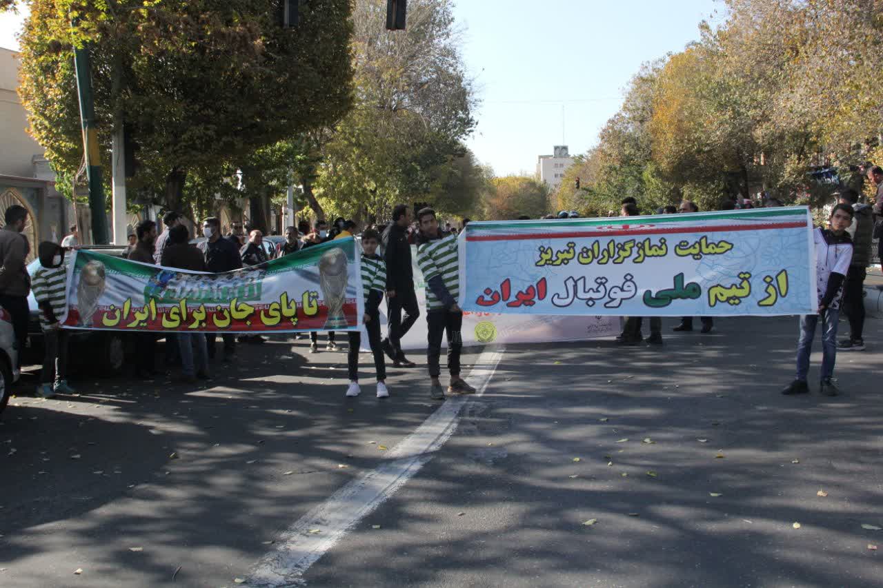 جامعه ورزشی تبریز و نمازگزاران جمعه تبریز در حمایت از تیم ملی فوتبال در جام جهانی راهپیمایی کردند.