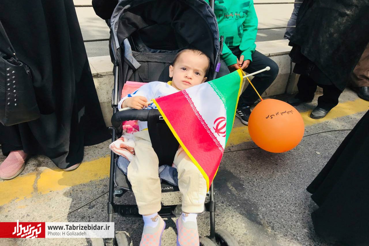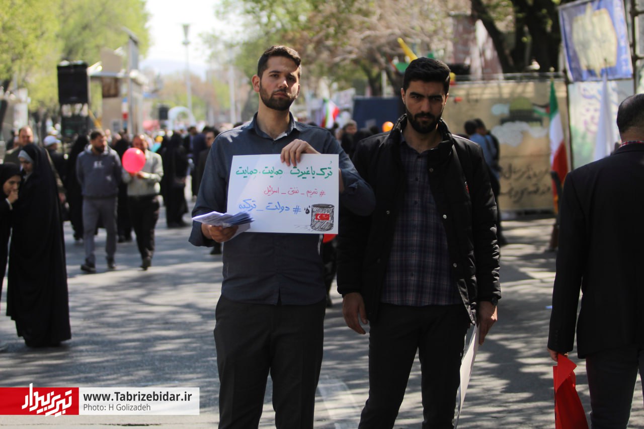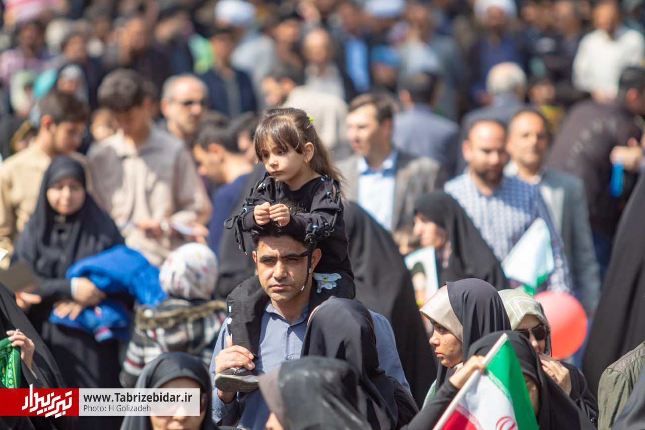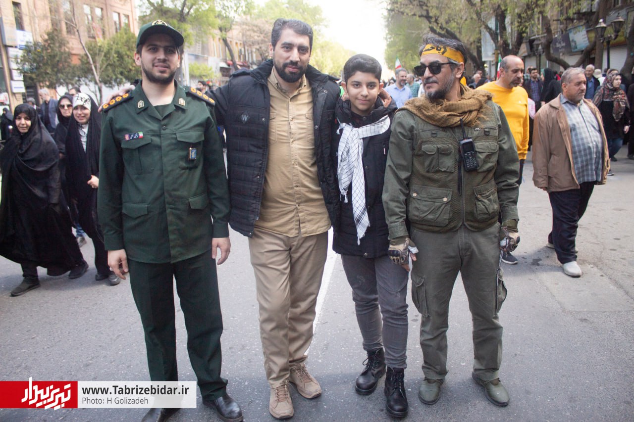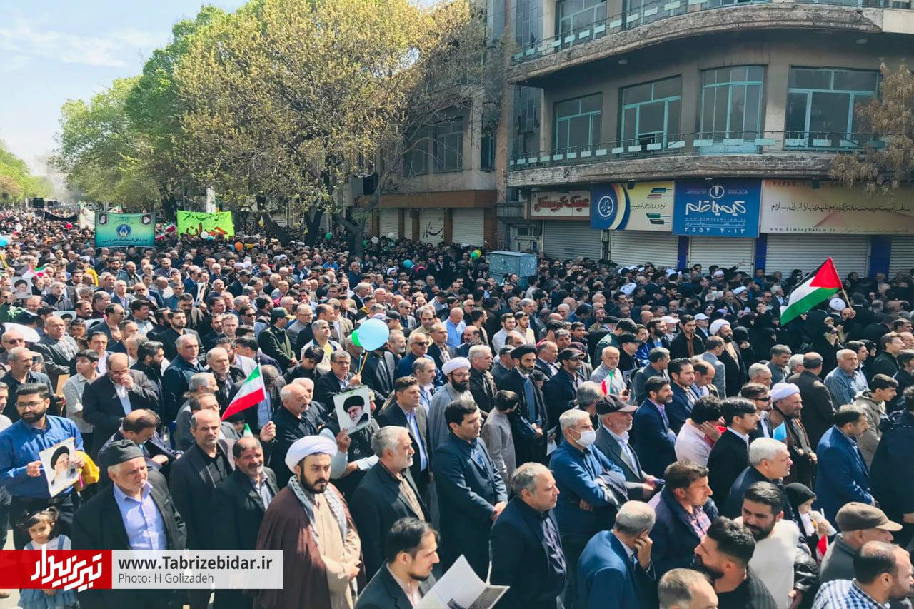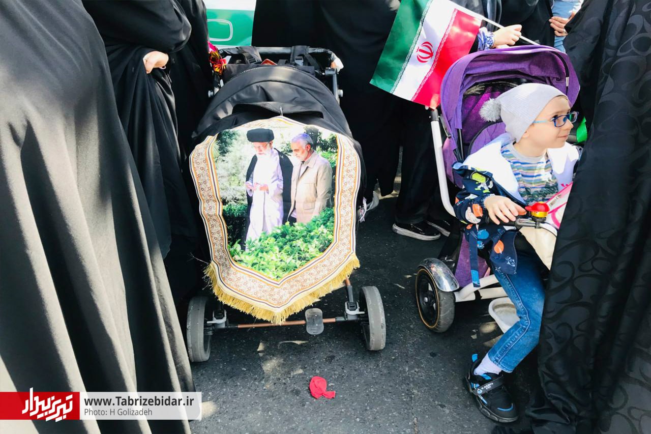 راهپیمایی روز قدس همزمان با سراسر کشور با حضور حماسی مردم تبریز برگزار شد که حضور خانواده ها و کودکان در این تجمع حمایت از غزه و فلسطین، مشهود بود.