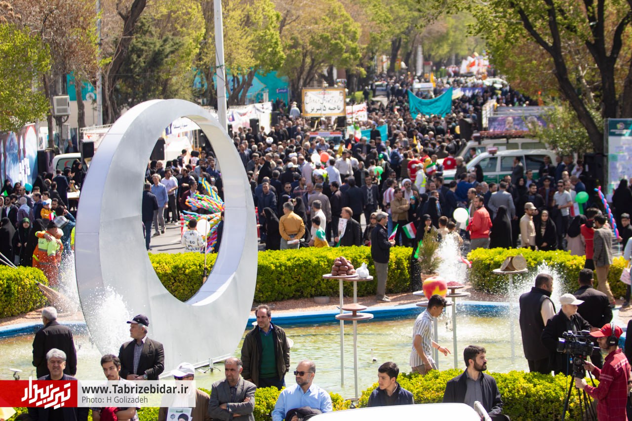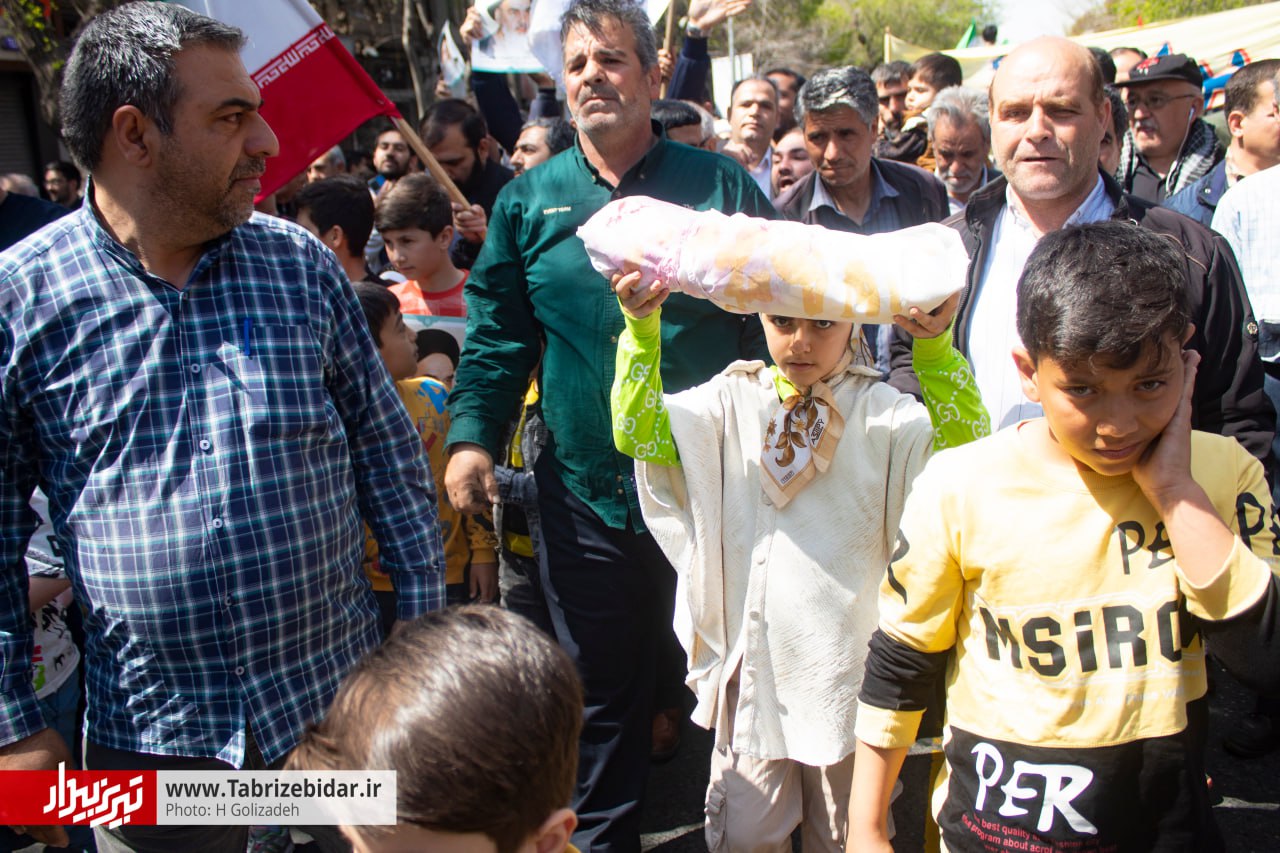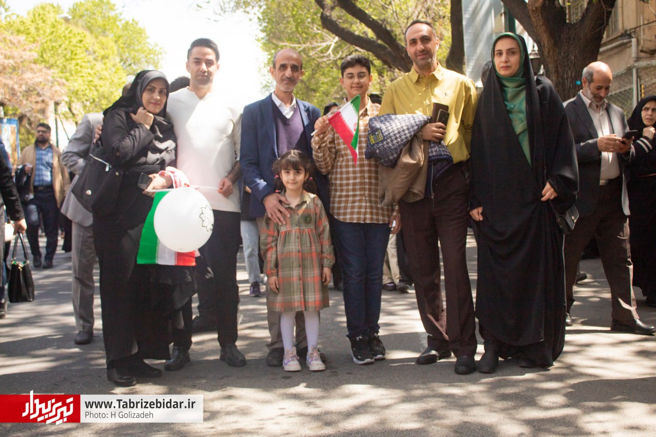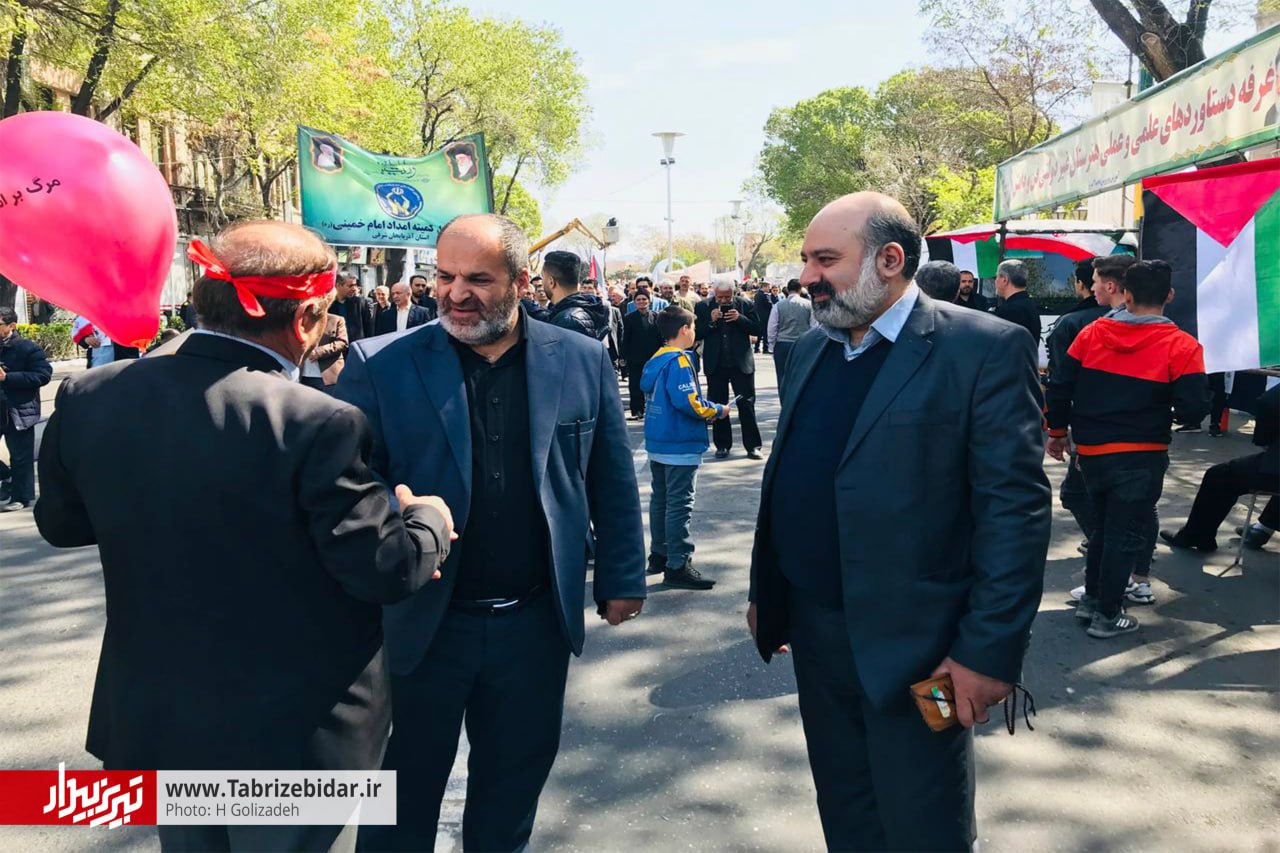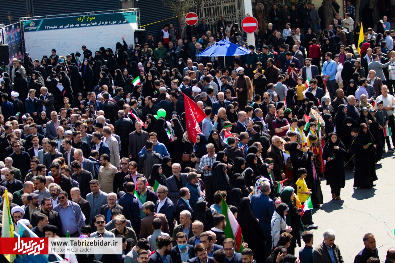 راهپیمایی روز قدس همزمان با سراسر کشور با حضور حماسی مردم تبریز برگزار شد که حضور خانواده ها و کودکان در این تجمع حمایت از غزه و فلسطین، مشهود بود.