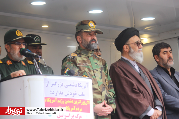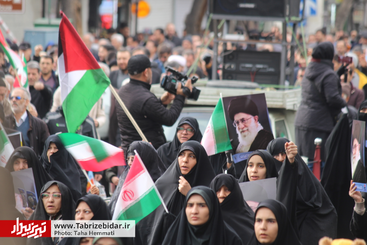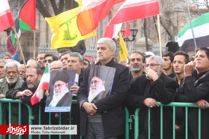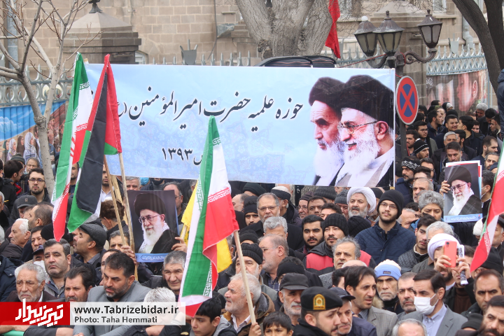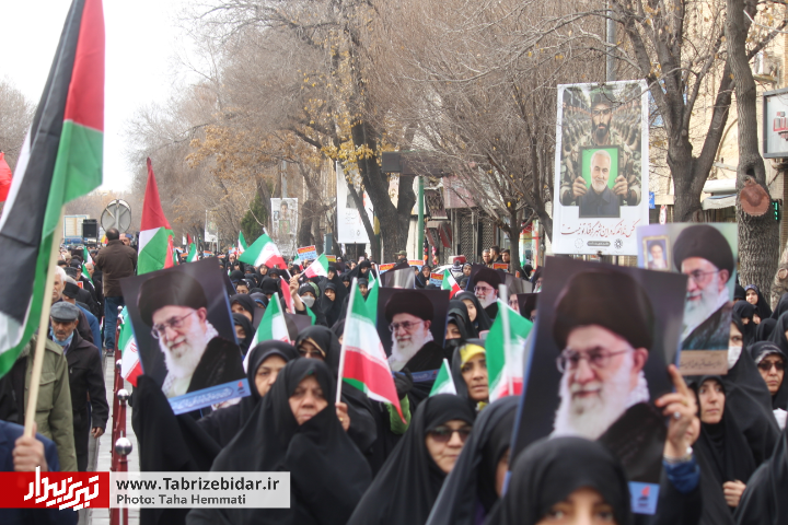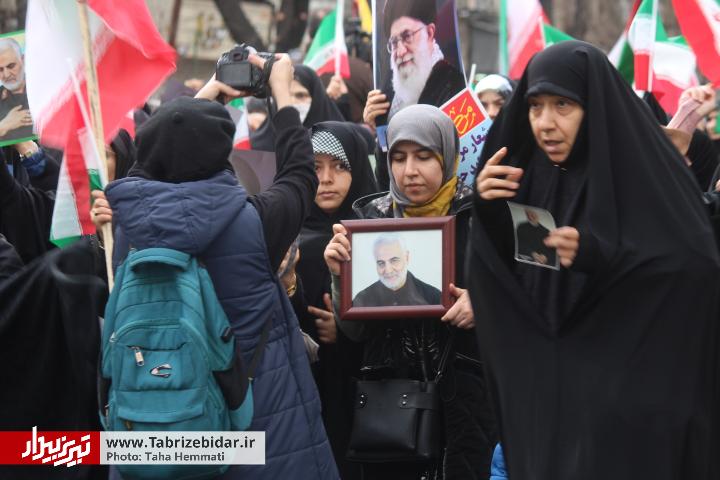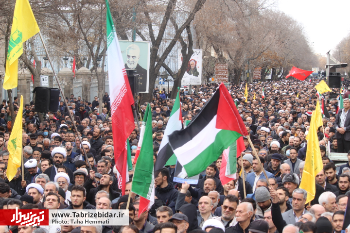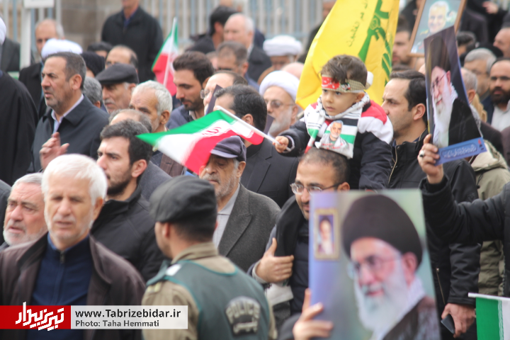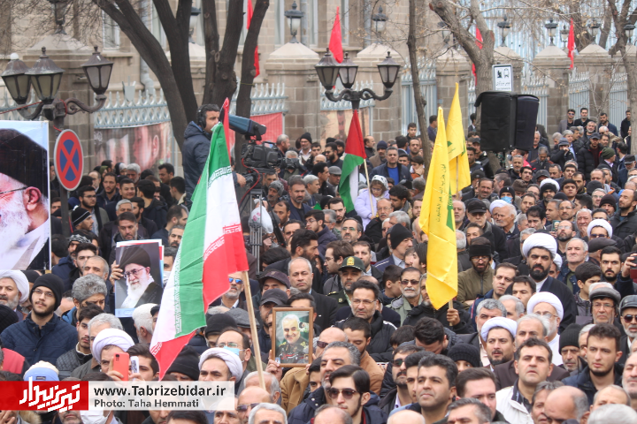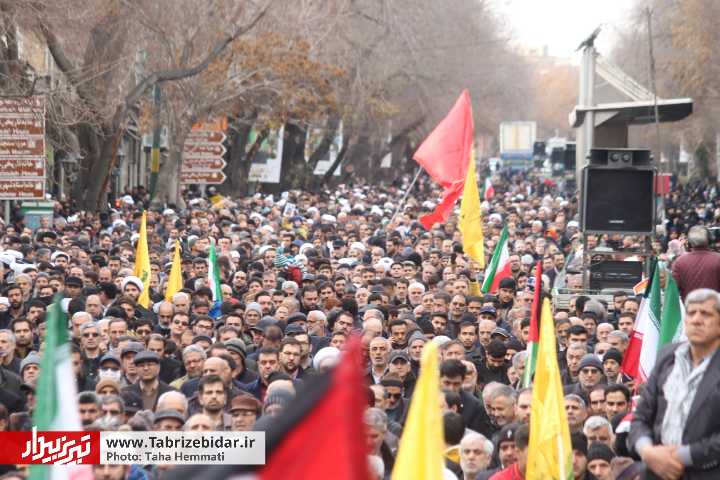 مردم تبریز امروز با شرکت گسترده در راهپیمایی پس از نماز جمعه، خشم و انزجار خود را از حادثه تروریستی کرمان اعلام کردند، اقشار مختلف مردم در این تجمع با شعار مرگ بر آمریکا و مرگ بر اسرائیل این جنایت وحشیانه را به شدت محکوم کردند.