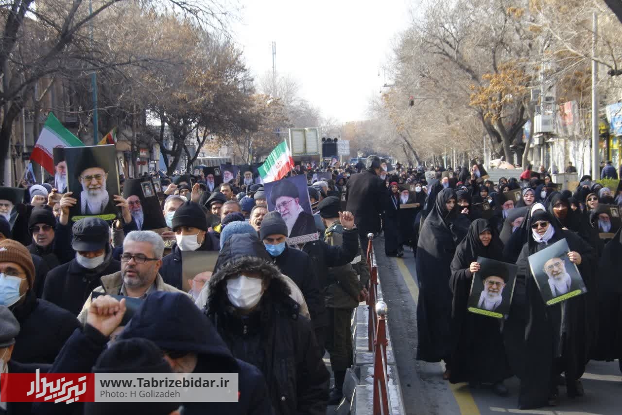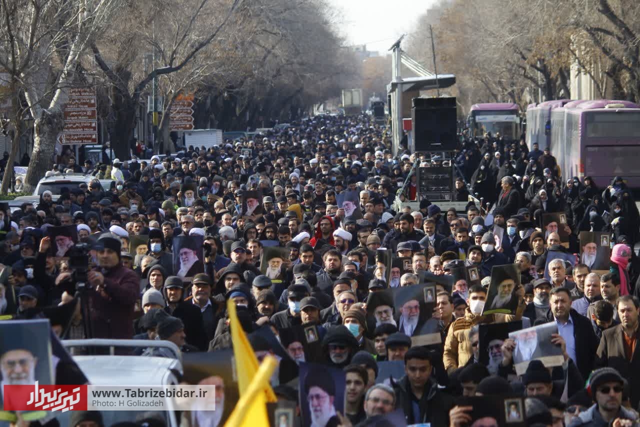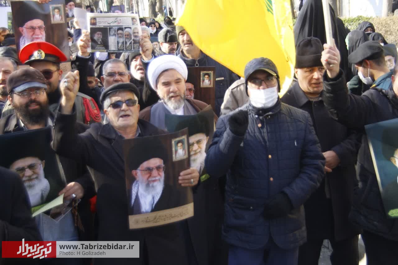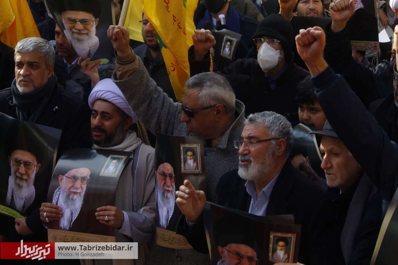 نمازگزاران تبریزی پس از اقامه نماز جمعه همزمان با سراسر کشور در محکومیت اقدام موهن نشریه فرانسوی شارلی ابدو راهپیمایی کردند.