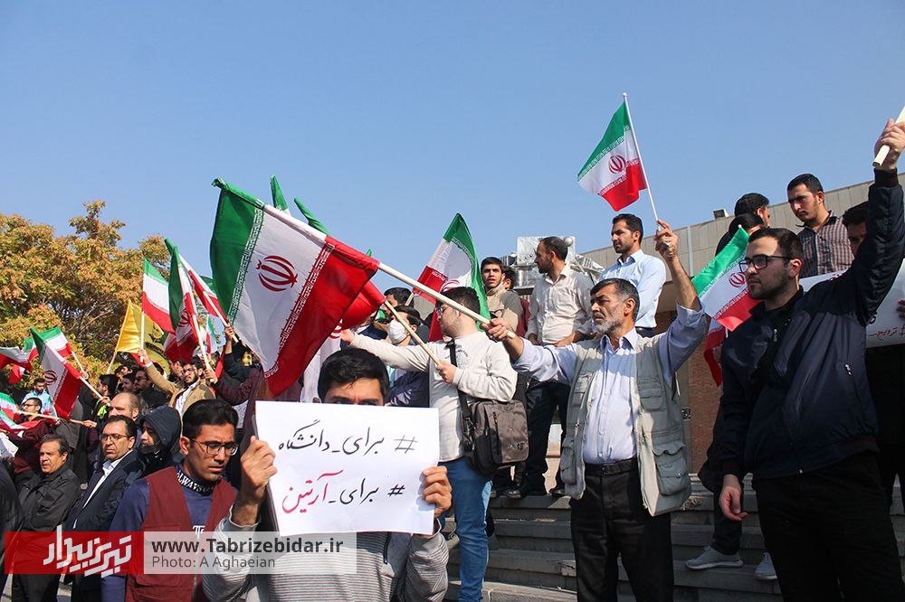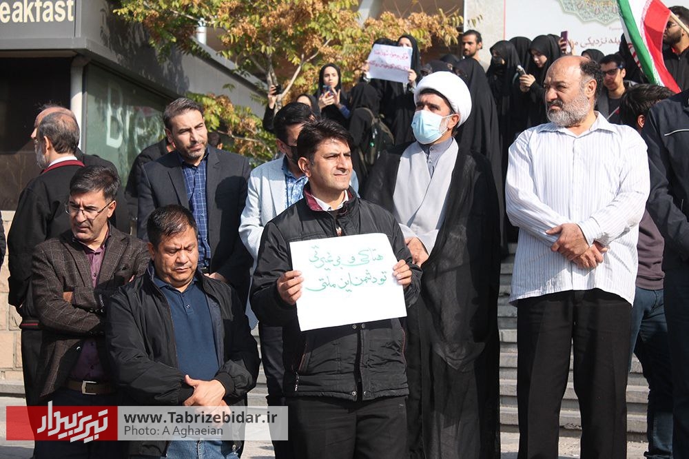 ظهر امروز جمع کثیری از اساتید و دانشجویان دانشگاه تبریز در اعتراض به هتاکی و فحاشی عده ای معدود در روزهای گذشته تجمع بزرگ برگزار کردند.