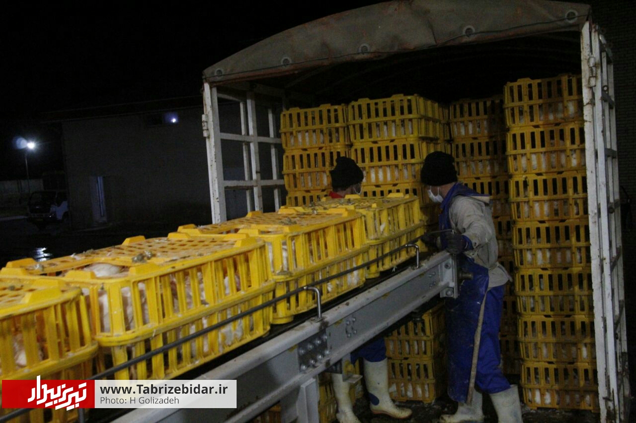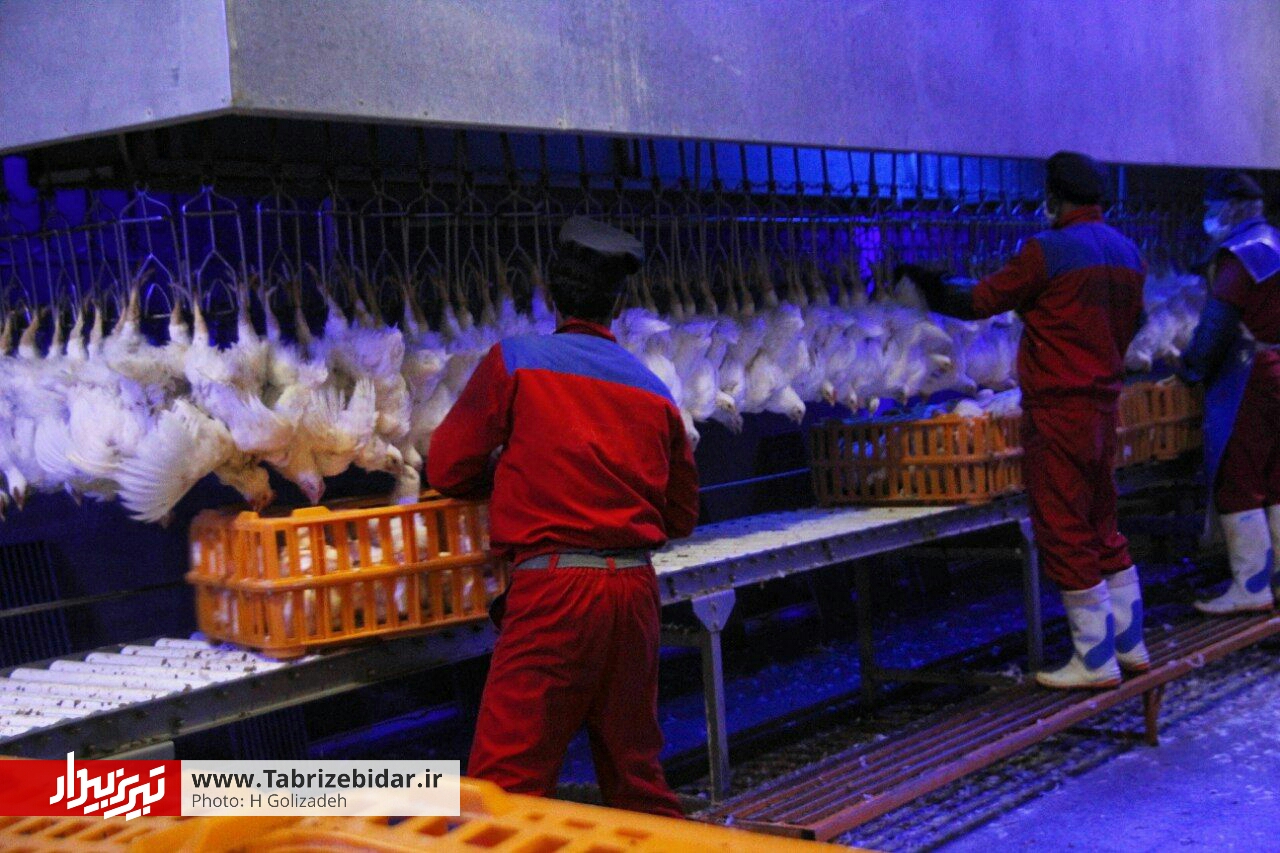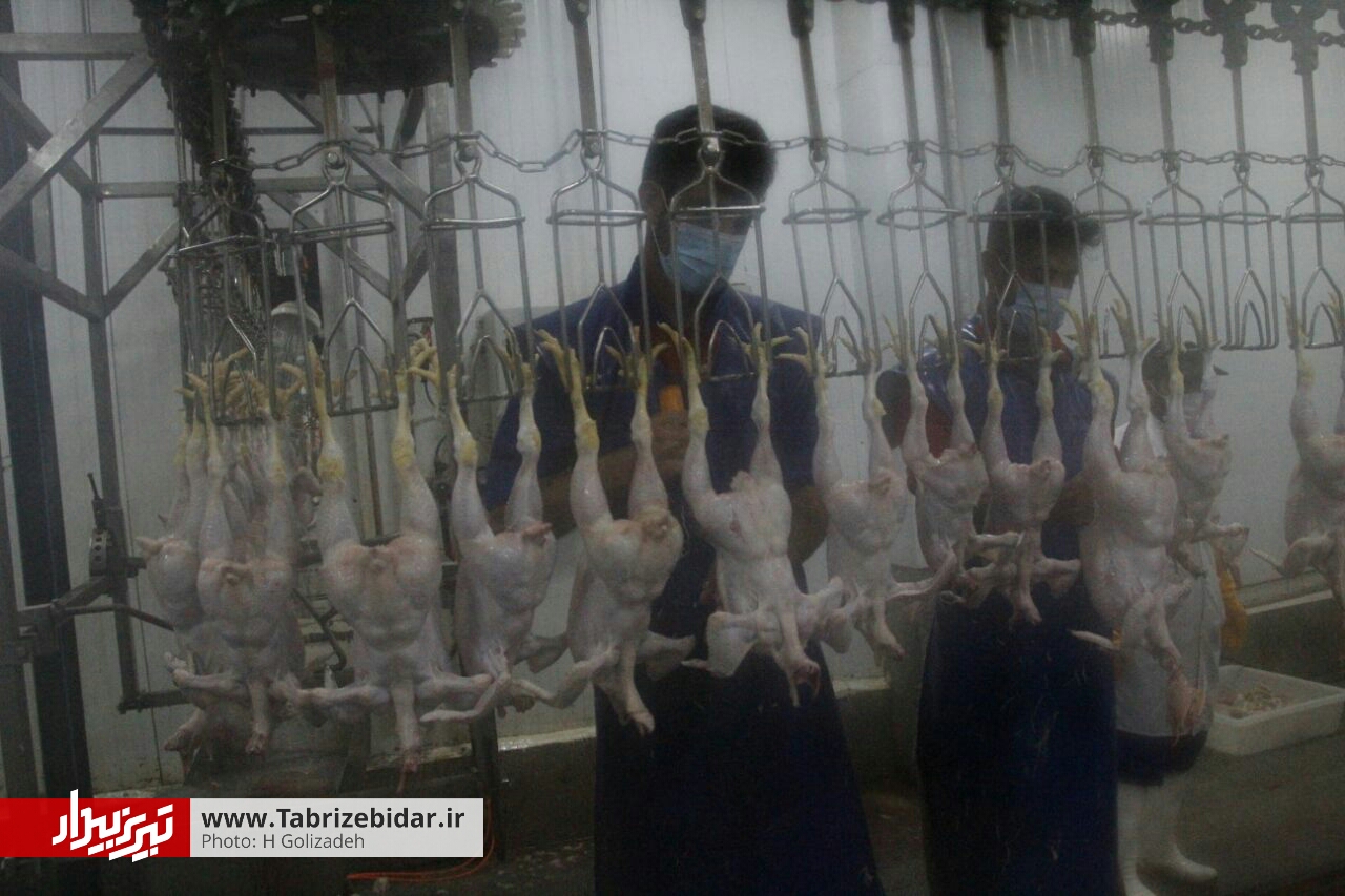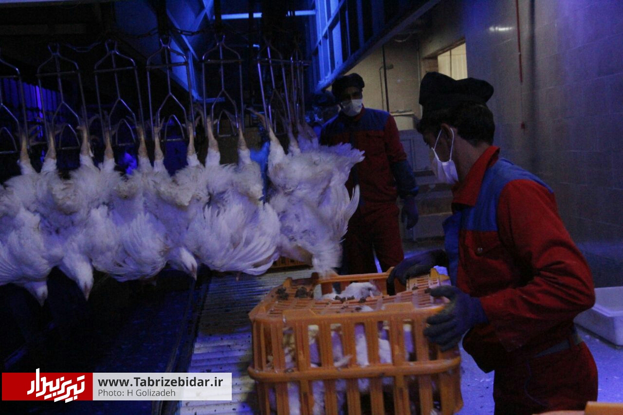 عکاس تبریزبیدار با حضور در کشتارگاه جهان مرغ در مرند تصویری از ذبح تا بسته بندی مرغ داشته است.