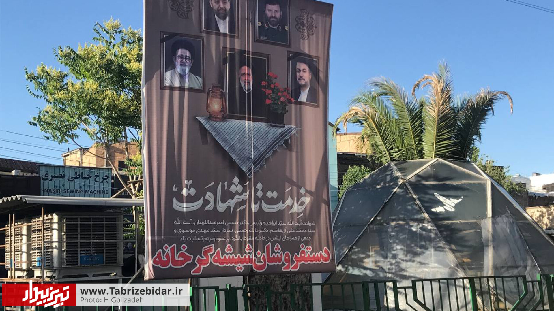این روزها در جای جای معابر تبریز که قدم بزنید بنرهای تسلیت متفاوتی برای شهدای خدمت می بینید، بنرهایی که اصناف، کسبه، دستفروشان، هیئت ها و گروه های مختلف مردمی با هزینه شخصی چاپ و نصب کرده اند و در غم فراقش عزادارند.