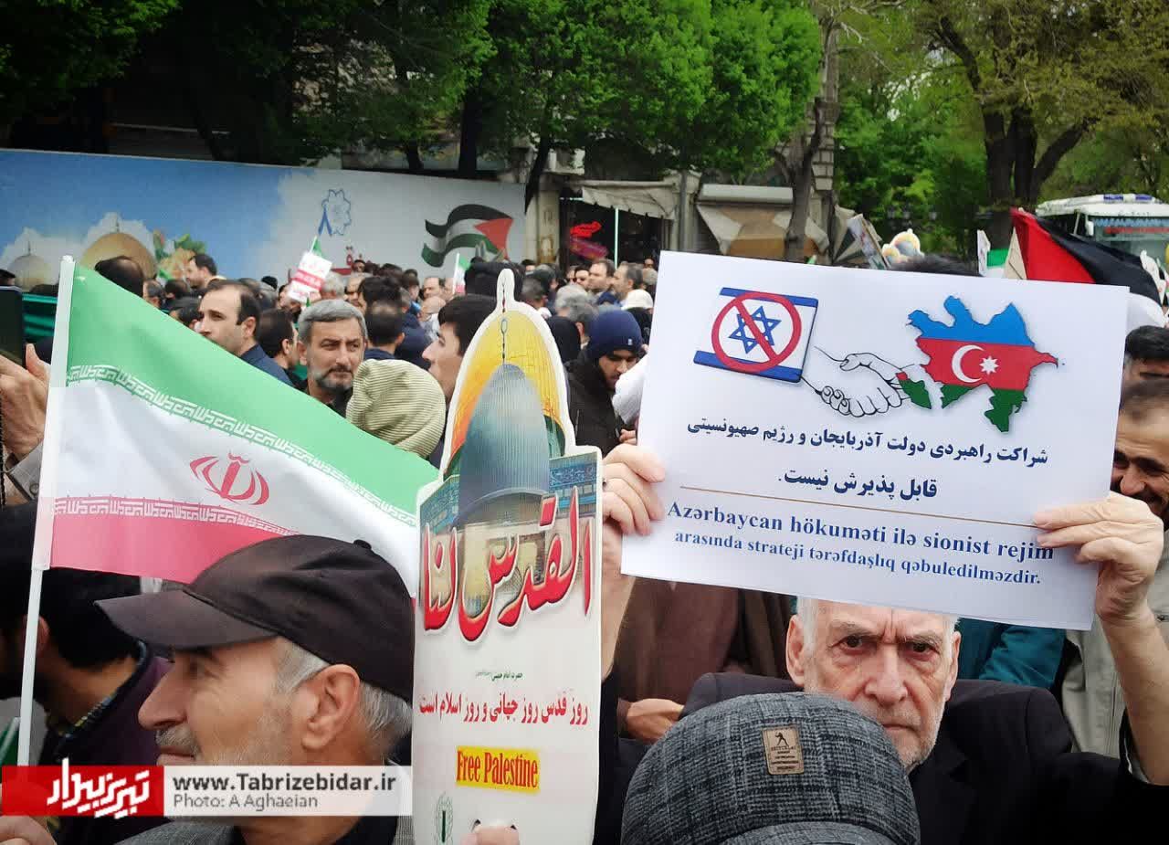 در حاشیه راهپیمایی امروز روز قدس، مردم روزهدار تبریز حضور رژیم صهیونسیتی در جمهوری آذربایجان را محکوم کردند.