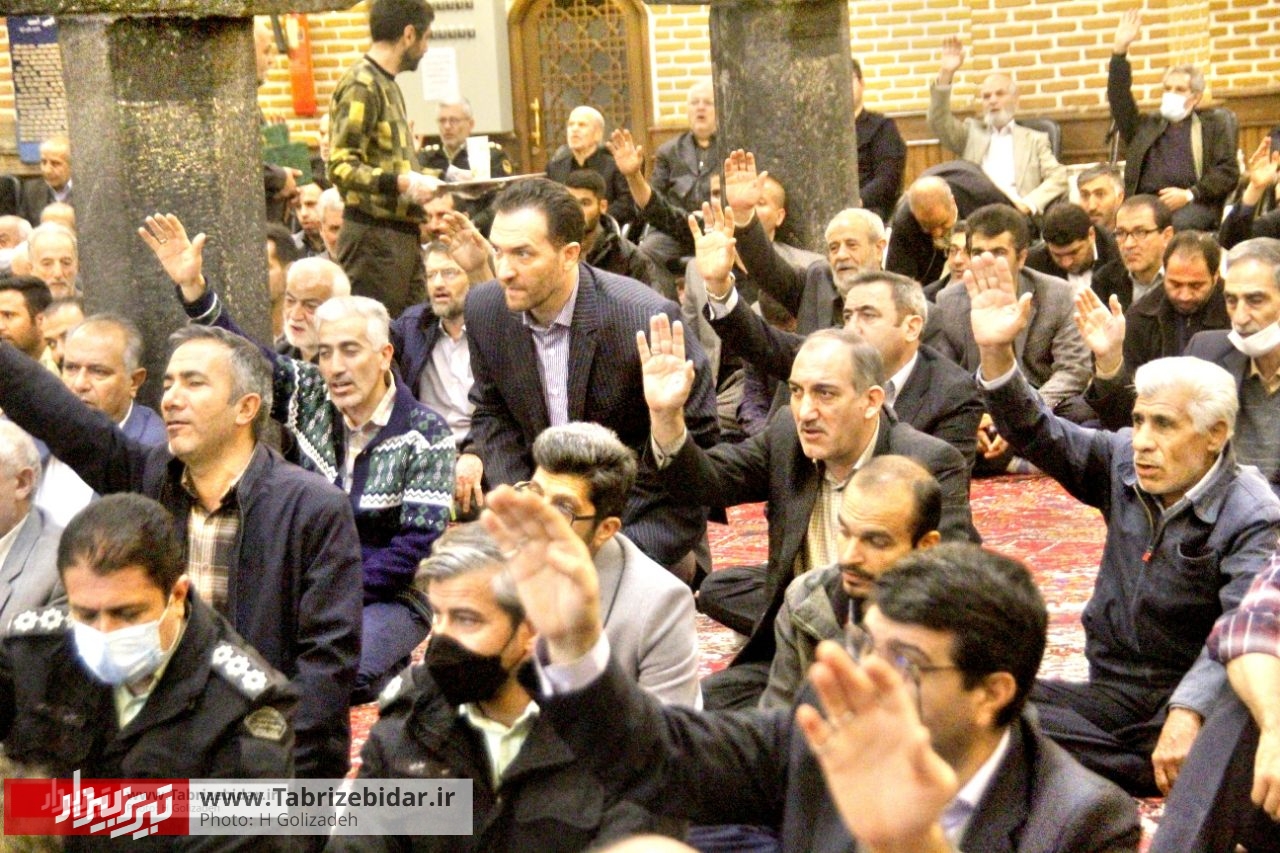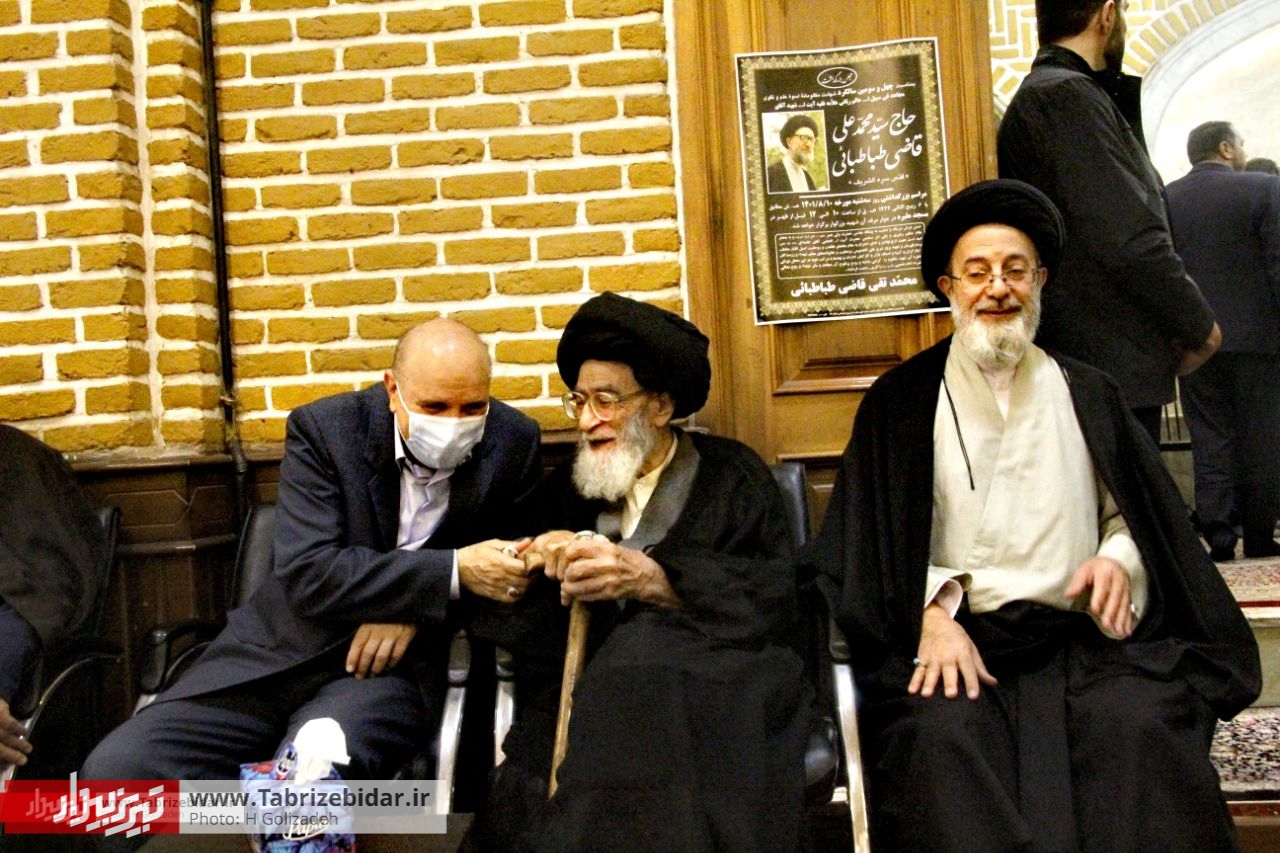 مراسم بزرگداشت شهید محراب آیت الله قاضی طباطبایی ظهر سه شنبه با حضور مردم و مسئولین در مسجد مقبره تبریز برگزار شد.